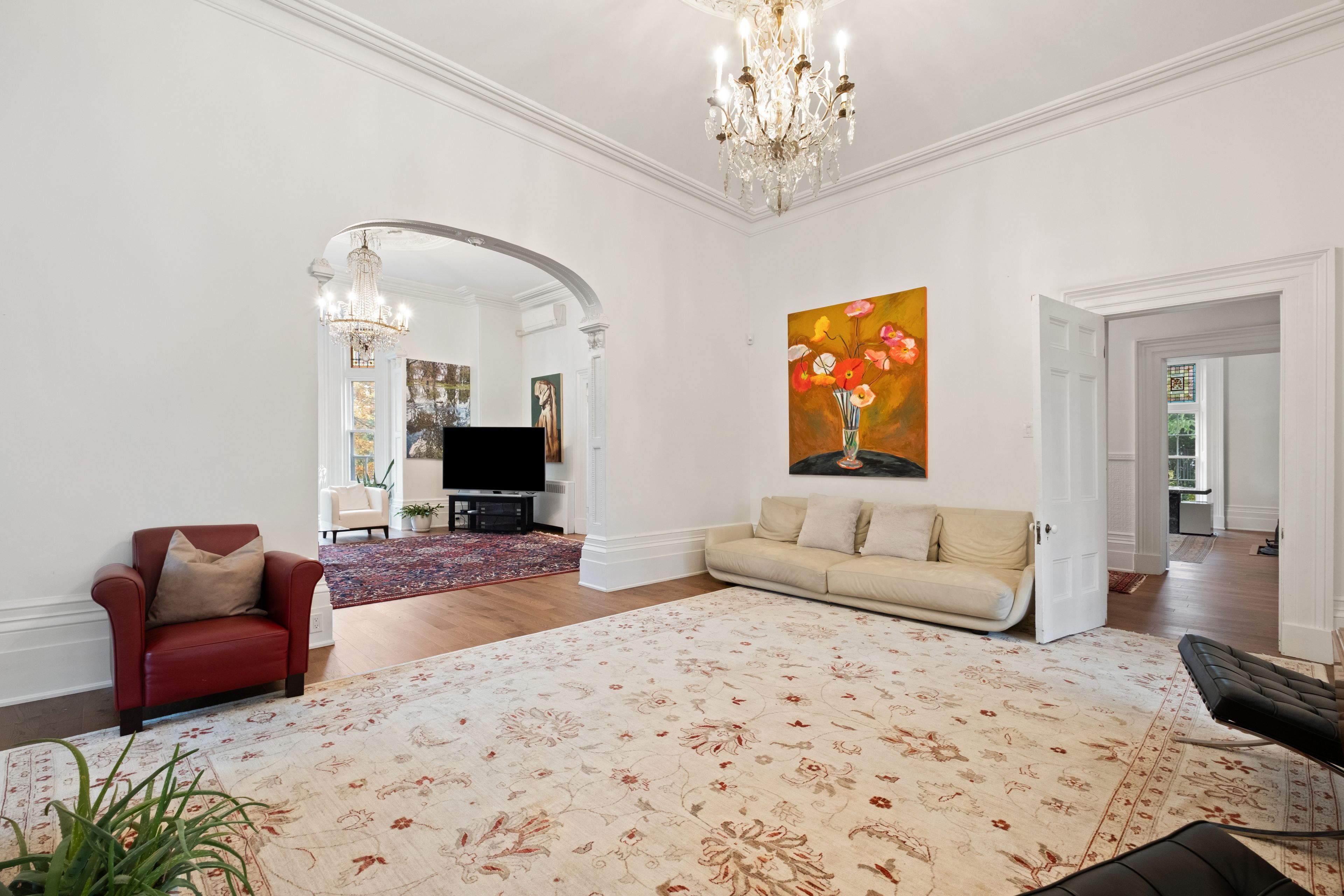• Historic Italianate manor with 12-foot ceilings and intricate details.