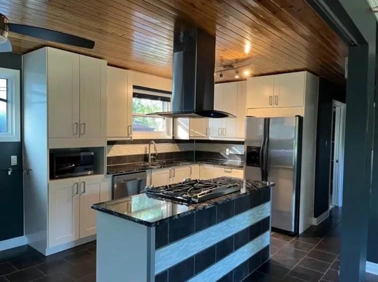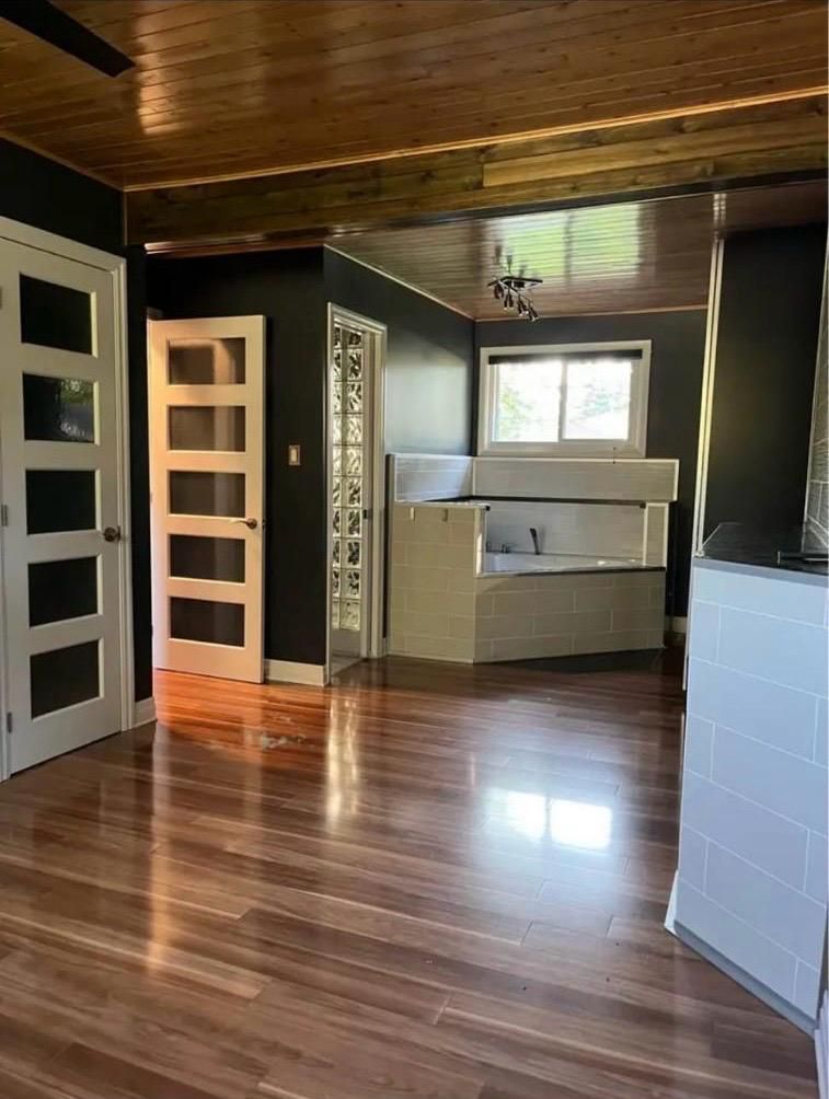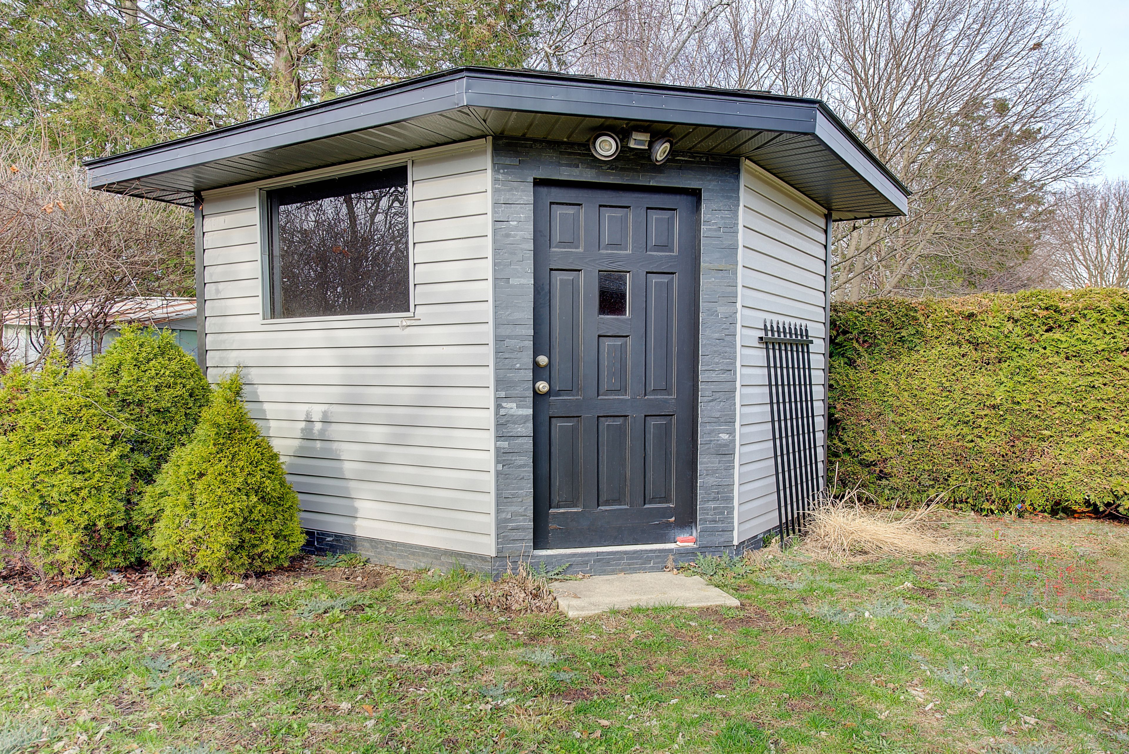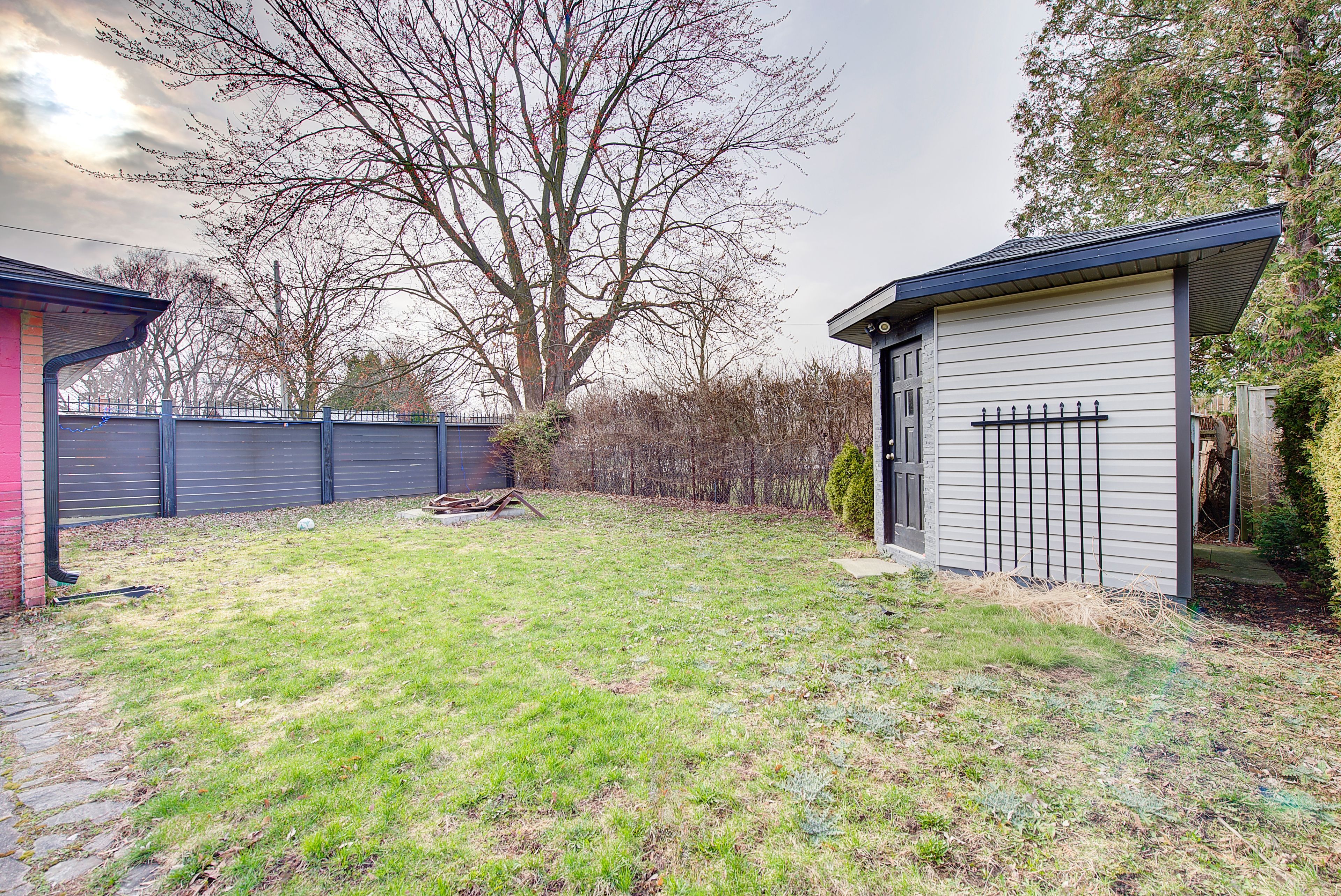 Welcome to this beautifully upgraded all-brick bungalow, perfectly situated on a spacious corner lot, offering an exceptional blend of comfort, functionality, and modern style. Designed for both everyday living and entertaining, this home features impressive exterior upgrades including insulated metal doors, gutter guards, and durable fiberglass shingles, ensuring long-lasting protection and peace of mind. The concrete driveway accommodates up to 4 vehicles, while the insulated, powered 2-car detached garage offers additional parking or an ideal workshop/mancave. Inside, the home showcases meticulous attention to detail with elegant porcelain and premium laminate flooring, complemented by cedar ceiling accents and energy-efficient led lighting throughout. The bright and inviting living room is enhanced by an oversized picture window, filling the space with natural light. The kitchen is thoughtfully designed with ample cabinetry, upgraded thick granite countertops, and a central island with gas range, along with a cozy dinette perfect for casual dining. The expansive primary suite has been reimagined by combining two bedrooms into one luxurious retreat, featuring dual closets, an electric fireplace, a jetted tub, and convenient ensuite access to the main bathroom. The fully finished lower level offers exceptional versatility with a separate entrance, making it ideal for an in-law suite or income potential. It includes plumbing and hydro for a future kitchen, a bedroom with egress window, a full bathroom, and a dedicated laundry area. Additional highlights include an owned on-demand water heater (no rental fees), abundant storage space, and a large cold room. Step outside to a private backyard oasis featuring a hardscape patio, powered shed, and low-maintenance composite fencing-perfect for relaxing or entertaining. A rare opportunity to own a thoughtfully upgraded home offering space, flexibility, and long-term value