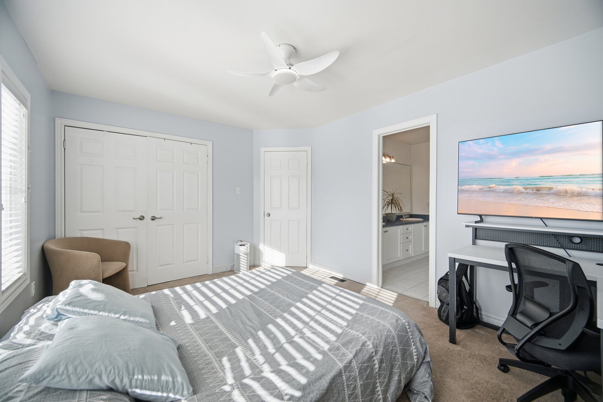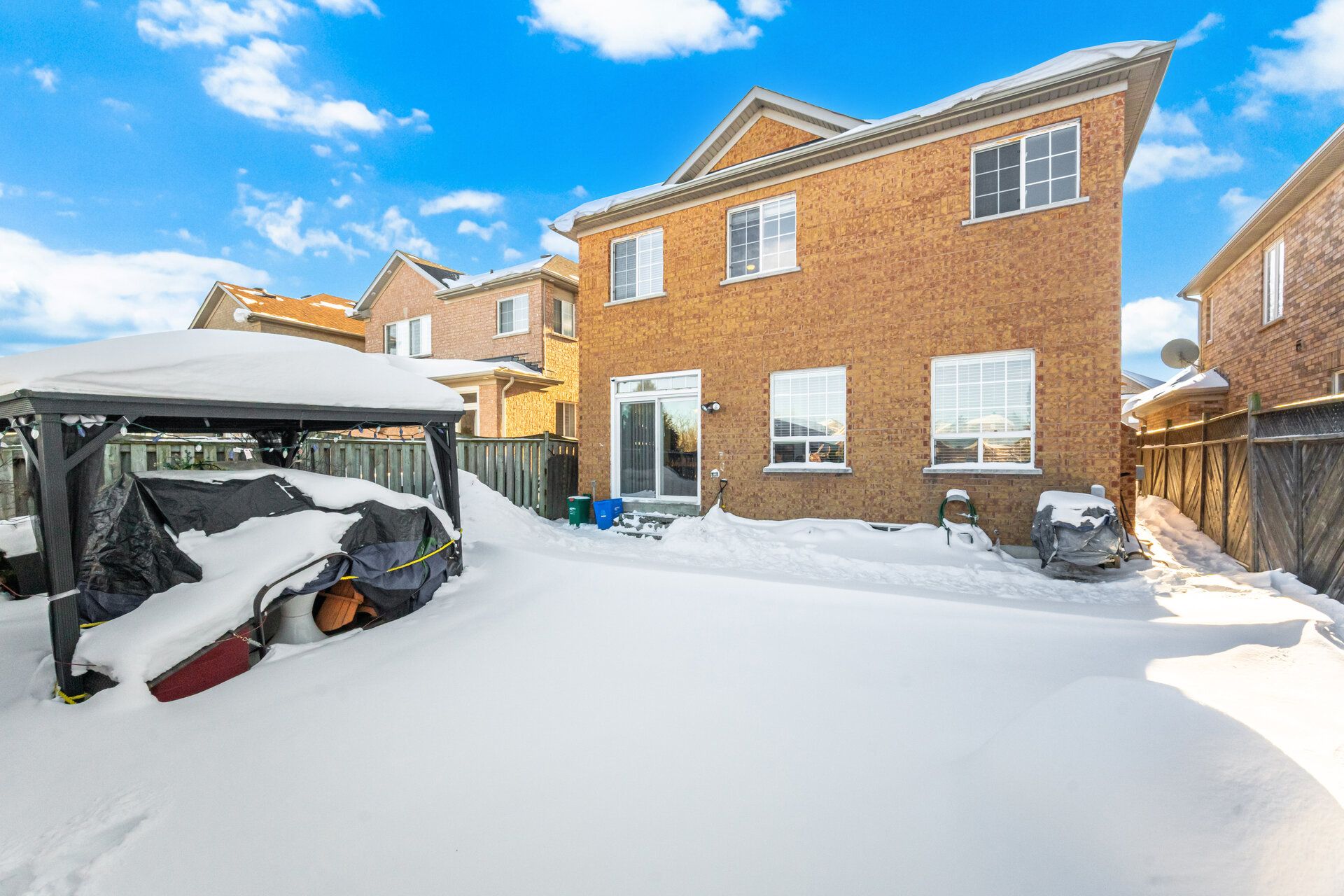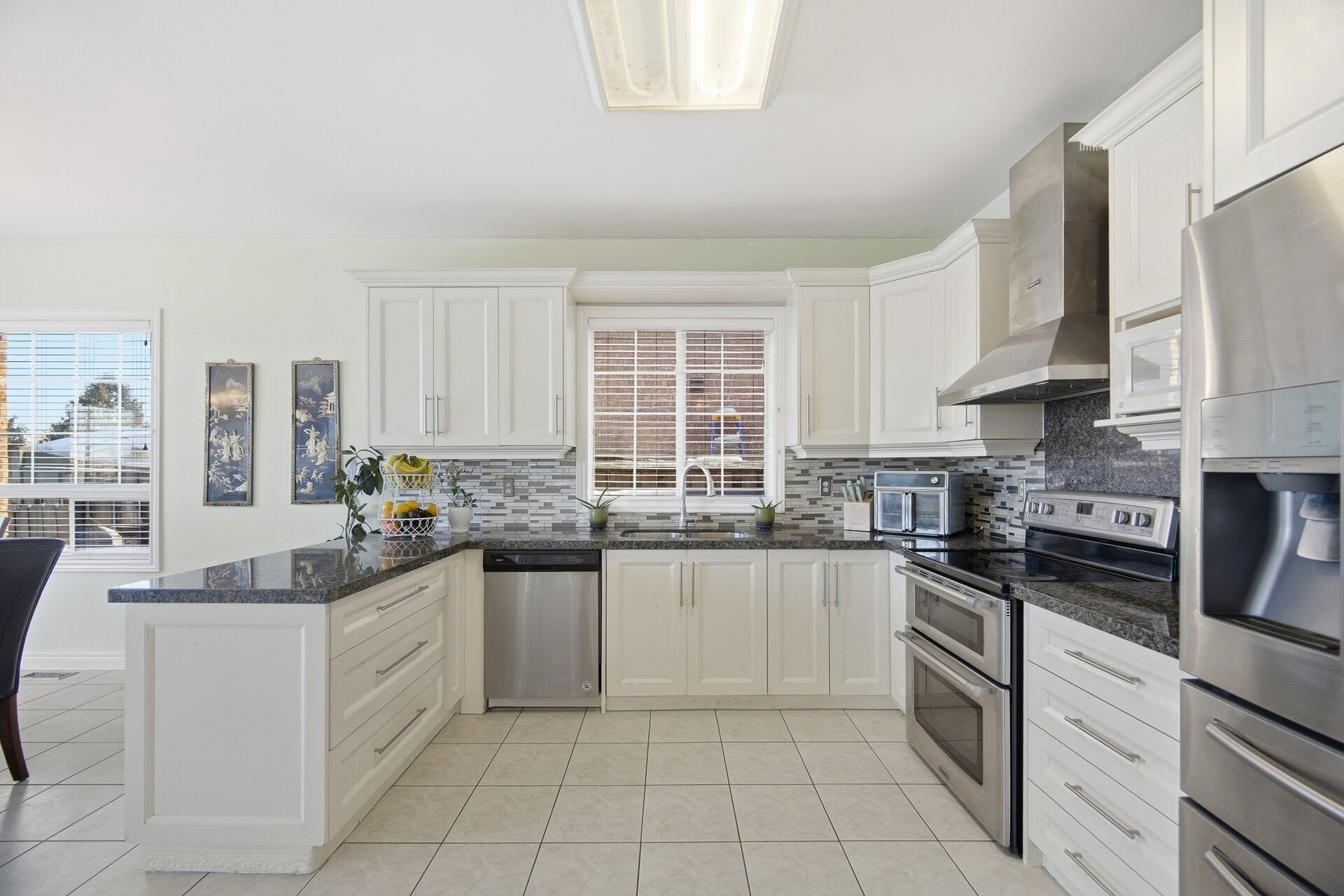 Welcome to this beautifully appointed 4-bedroom, 5-bathroom detached residence with a double-car garage, ideally located in milton's highly desirable dempsey neighbourhood and backing onto full privacy in the form of a tranquil ravine. A bright, double-height foyer leads you to the main level, which features an open-concept living and dining area enhanced by elegant hardwood flooring and an abundance of natural light. At the heart of the home is the updated eat-in kitchen, showcasing crisp white cabinetry, dark granite countertops, a stylish backsplash, and quality appliances. The spacious breakfast area offers a walkout to the backyard and overlooks the inviting family room, complete with hardwood floors, a cozy fireplace, and large picture windows framing ravine views. The upper level offers four generously sized bedrooms and three full bathrooms. The private primary retreat, tucked away at the rear of the home, features a walk-in closet and 4-piece ensuite with a soaker tub, large vanity, and separate shower. Bedrooms two and three share a well-designed jack-and-jill bathroom, while the fourth bedroom enjoys its own private ensuite and double. The finished basement adds exceptional versatility with a large recreation area, full bath, and two bedrooms. Step outside to a private yard that's fully fenced, thoughtfully landscaped with mature gardens, lush greenery, and multiple seating areas, including a flagstone patio. Ideally located close to grocery stores, restaurants, theatres, shopping, and public transit, and within walking distance to schools, parks, the library, and the arts centre. Easy access to highways 401 and 407 ensures effortless commuting.