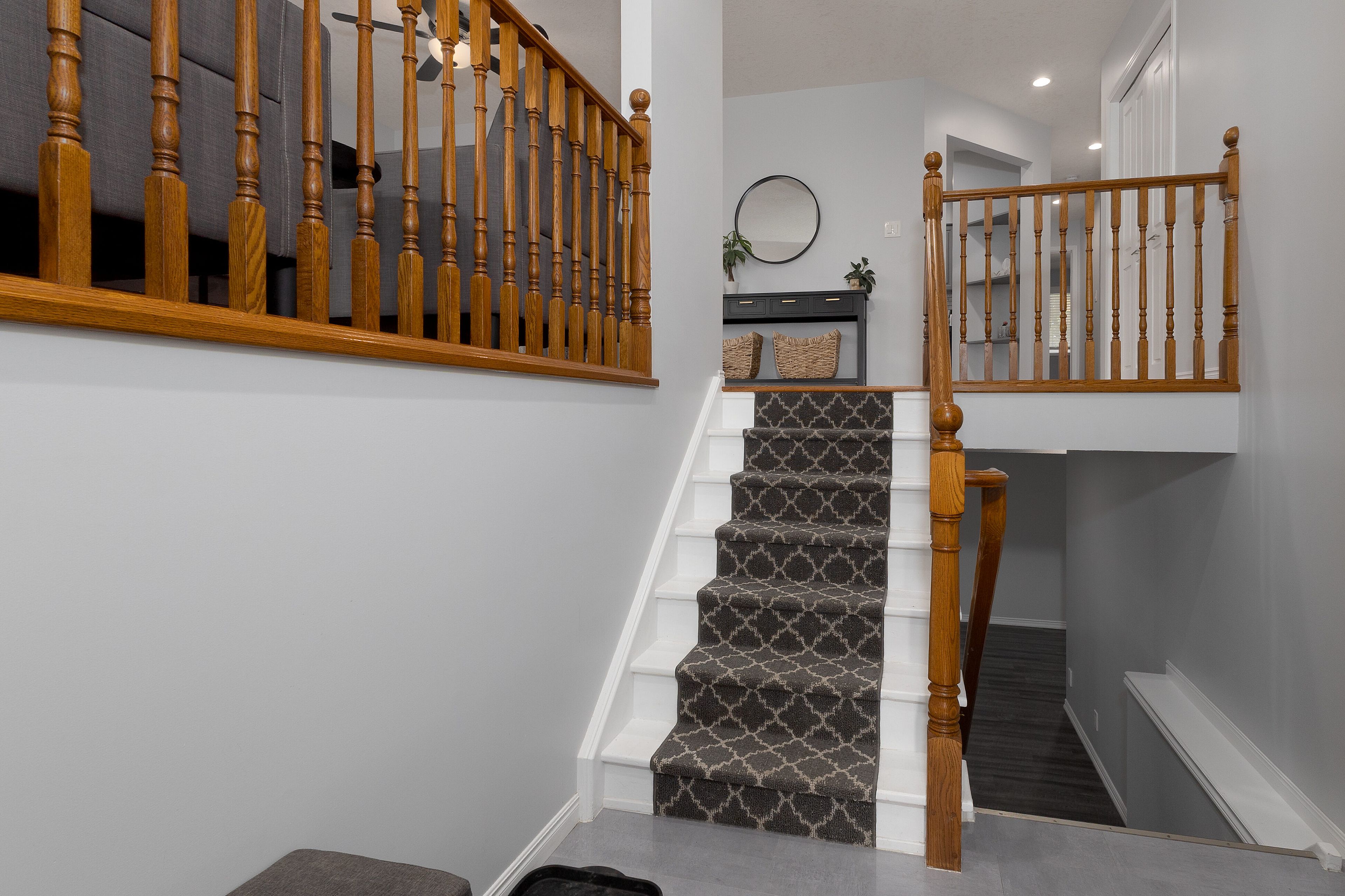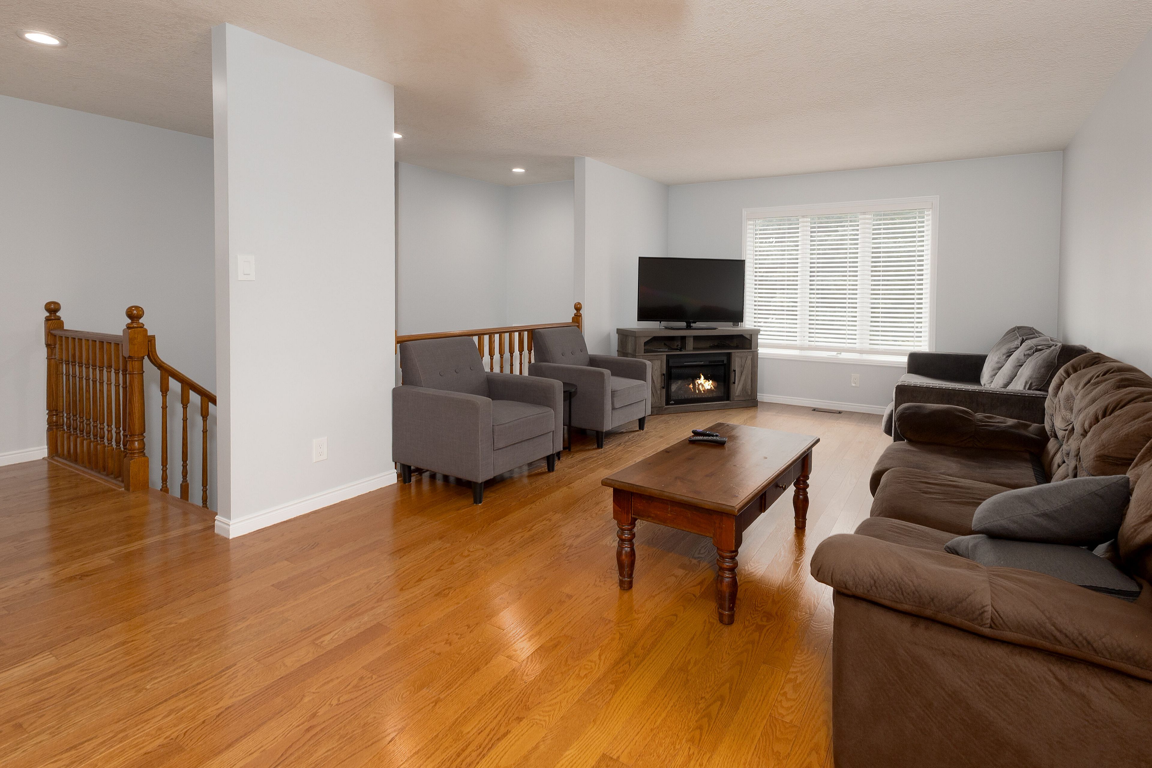 • Spacious layout with hardwood floors and finished basement space.