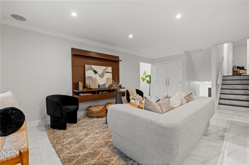• Home theater with projector, plus extra space for relaxing and entertainment.
