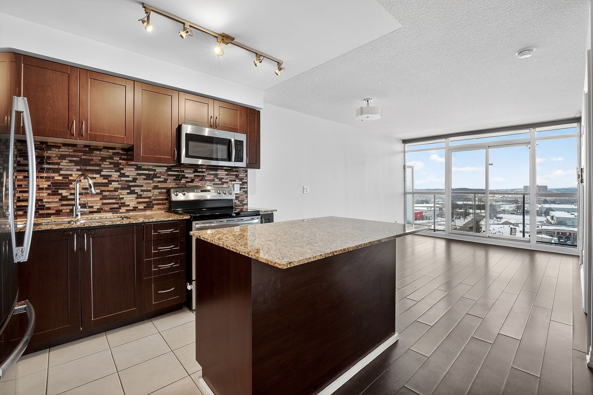 • Open concept living area with large windows for natural light.