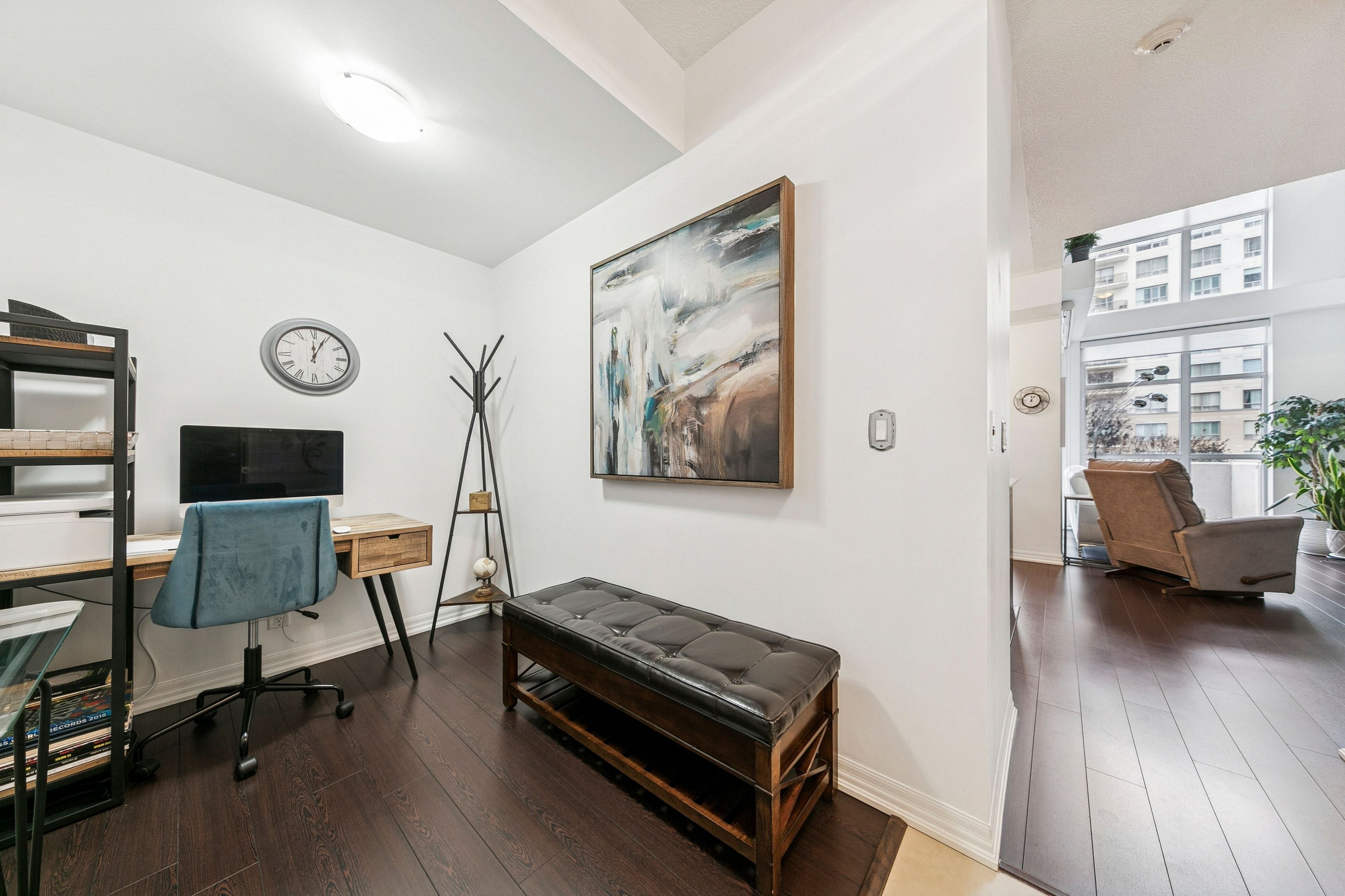Welcome to the ironstone in burlington's uptown core - a well-managed, geothermal building known for its strong amenities and efficient living. Residents enjoy 24/7 concierge, fitness centre, yoga studio, rooftop terrace with bbqs, party room & ample visitor parking. Condo fees cover the majority of utilities - with only hydro and internet extra - offering simplified, predictable monthly costs. A defining feature of this unit is the two side-by-side underground parking spaces - a rare offering within the building and a meaningful advantage for buyers seeking both convenience and long-term value. Positioned steps to restaurants, groceries, parks, transit and major commuter routes, this location continues to be one of burlington's most practical and connected neighbourhoods. The unit itself is a 2-storey loft with 1 bed + den and 1. 5 baths, designed with soaring 18-ft floor-to-ceiling windows that bring consistent natural light into the living space. The open-concept layout is anchored by an upgraded kitchen featuring full-height cabinetry, granite counters, stainless steel appliances and a clean, modern finish. A private terrace extends the living space outdoors, while the upper-level primary suite overlooks the main floor and includes his & hers closets & full ensuite. The main-level den provides flexible use for work or additional living space. A distinct offering within the building - combining loft design, practical features and a highly functional layout in a location that continues to perform.
