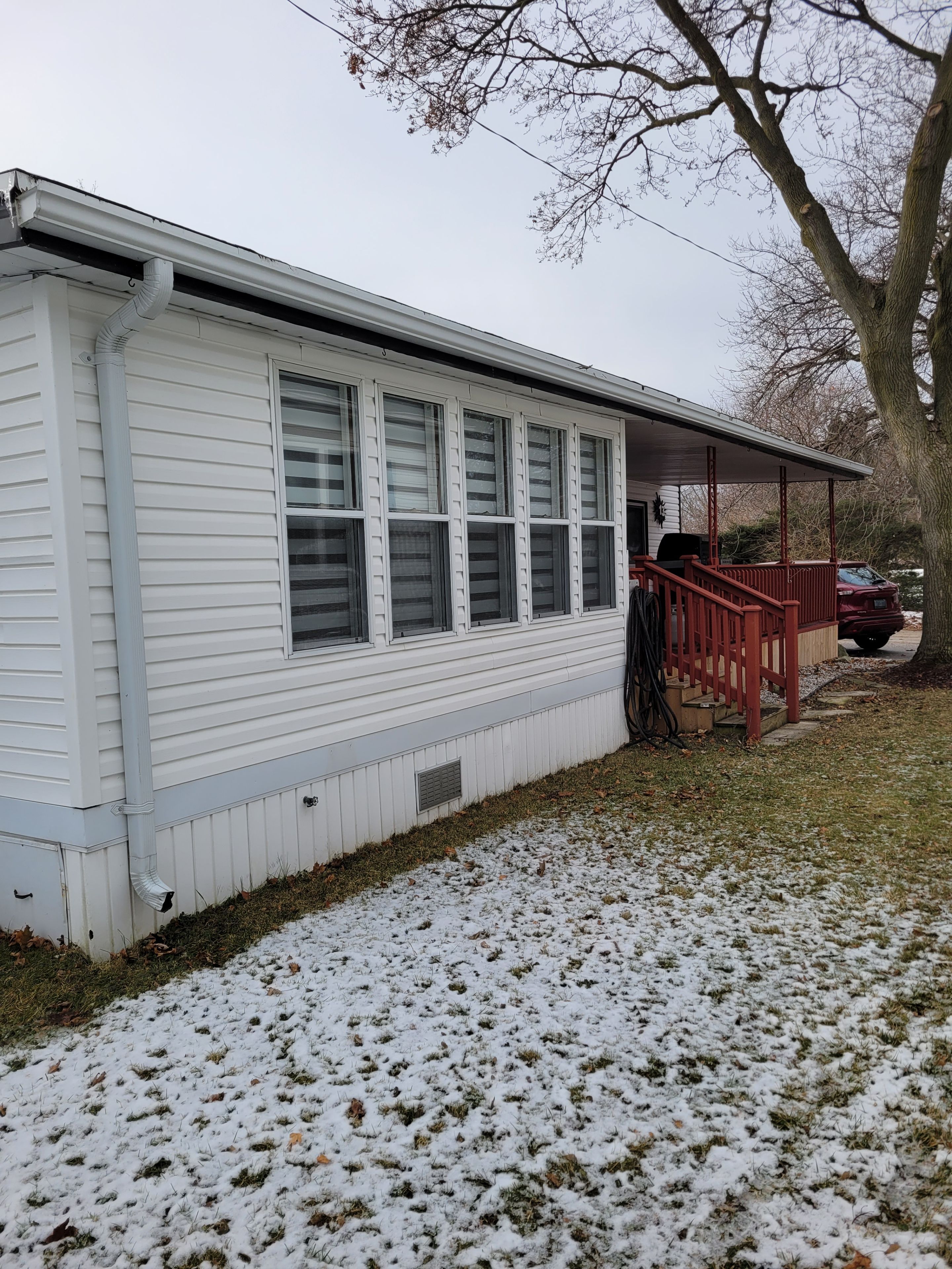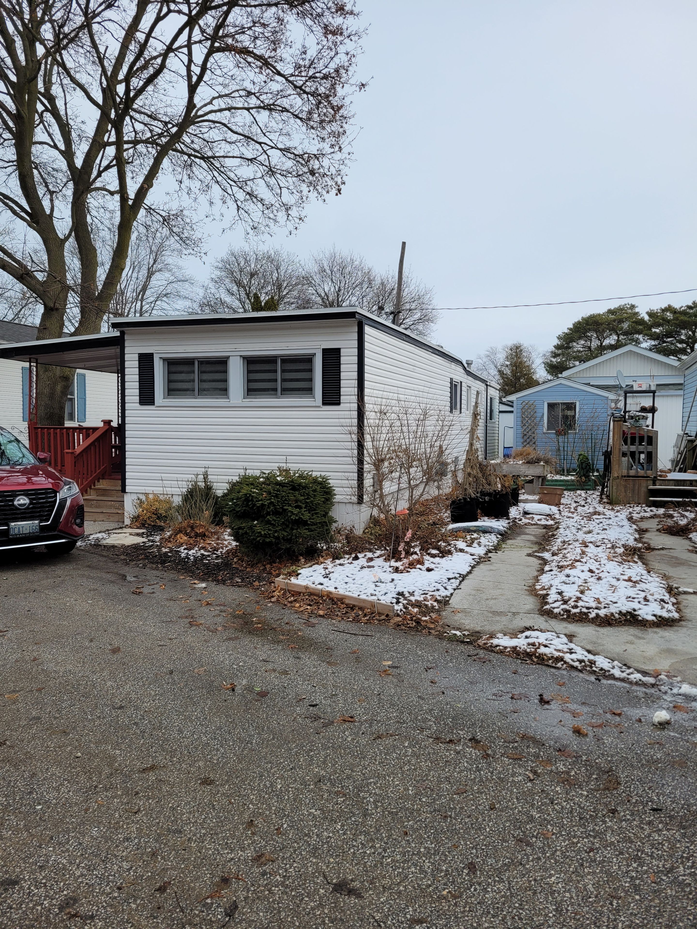 Welcome to this well-maintained 2-bedroom mobile home in green haven estates, a quiet and friendly community located just on the outskirts of sarnia. Offering comfortable one-level living, this home is ideal for those seeking a peaceful setting with easy access to city amenities. Inside, you'll find a bright open-concept living room, dining area, and kitchen, creating a functional and welcoming space for everyday living and entertaining. The home features two bedrooms, including a carpeted primary bedroom updated approximately two years ago, and a 4-piece bathroom. A stackable washer and dryer add convenience to daily routines. Enjoy year-round relaxation in the four-season sunroom, or step outside to the large covered deck, perfect for morning coffee or evening unwinding. Additional highlights include a spacious shed with hydro, ideal for storage, hobbies, or a workshop. Recent updates provide added peace of mind, including a new roof (1-year ago), central air conditioner (3-years old), washer (2-years old), and refrigerator (2-years old). A move-in-ready home in a tranquil park setting - this is an excellent opportunity to enjoy affordable, low-maintenance living in a desirable sarnia location.