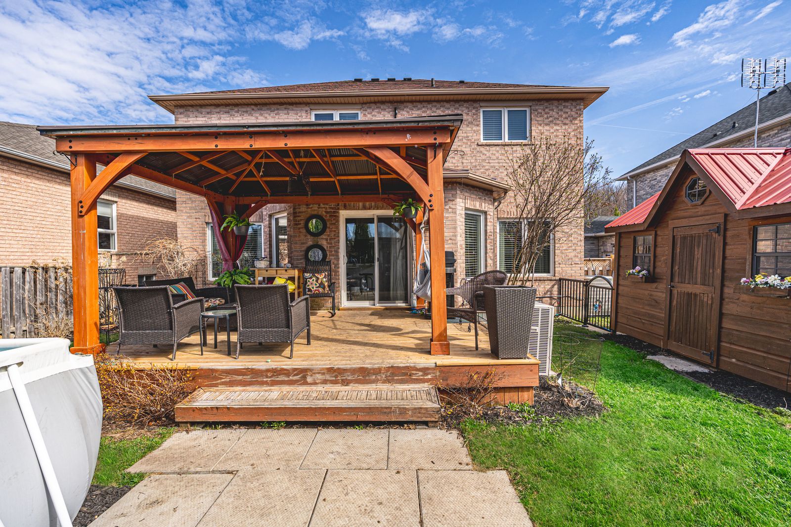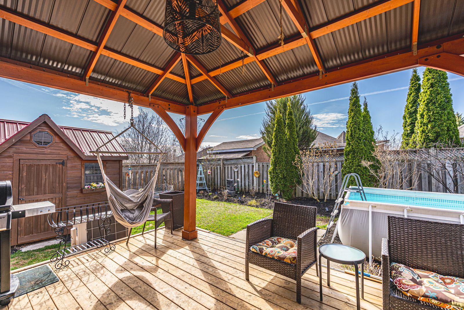 • Heated garage and large fenced backyard with shed and gazebo.