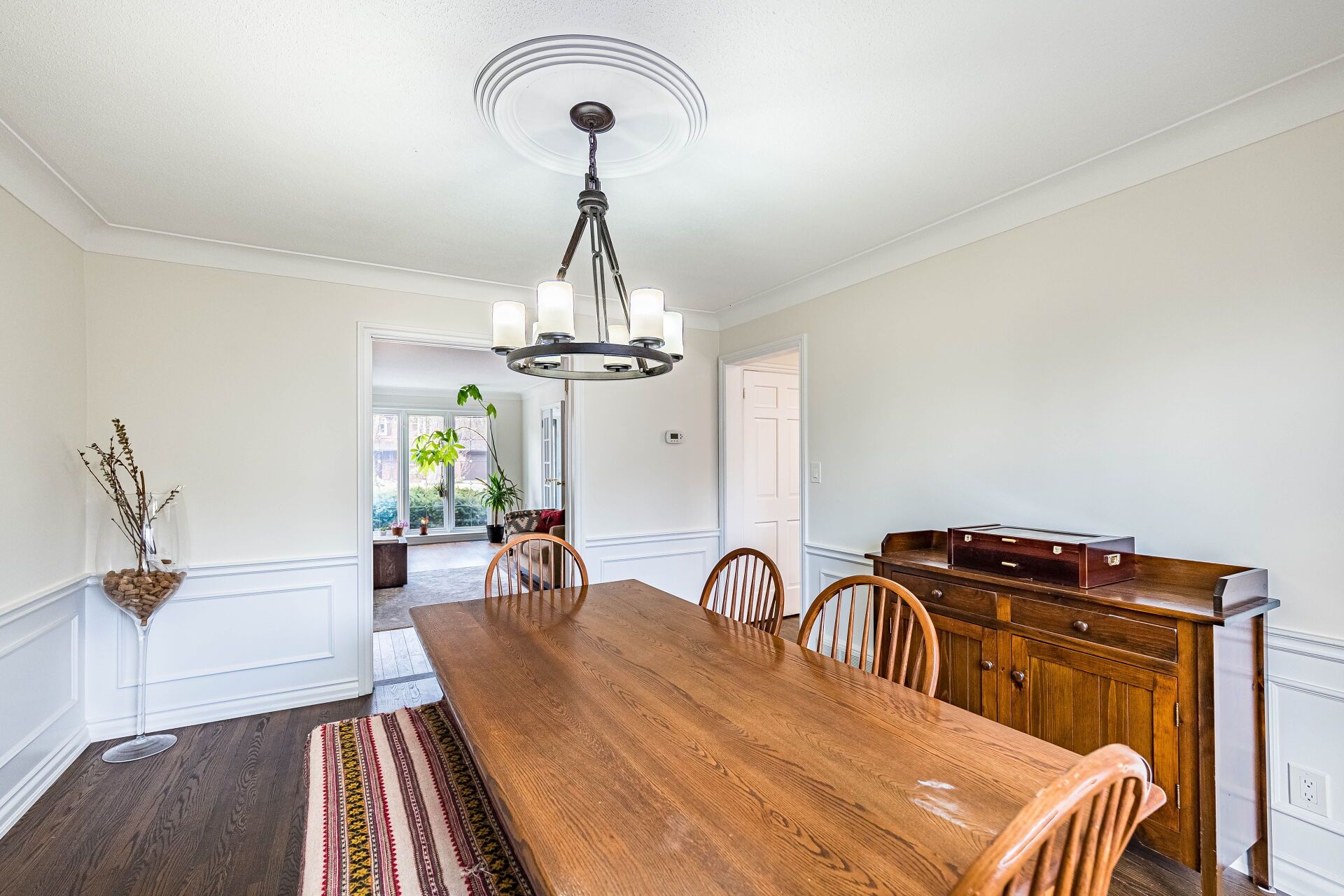 Experience this exquisite home on a mature, tree-lined lot on a prestigious tyandaga's street. Backing onto a breathtaking ravine, this private retreat offers the perfect blend of nature and convenience, just minutes to all amenities. The main level is ideal for entertaining, featuring a den, formal living and dining rooms with wainscoting, and hardwood flooring throughout. The upgraded kitchen offers stainless steel appliances, new countertops and backsplash, a gas range, and a bright breakfast area with a bay window, plus a walkout to a private, tree-lined backyard. The sunken family room boasts a wall of windows, gas fireplace, pegged oak flooring, and beautiful wood accents with serene ravine views. Upstairs features three spacious bedrooms, all with hardwood floors, including a primary suite with ravine views, walk-in closet, and a 3-piece ensuite with heated floors. The finished lower level includes a recreation room with a wet bar and walkout to a stunning backyard oasis with a multi-level deck, patio, professional landscaping, and a hot tub with privacy wall. A truly exceptional ravine property!