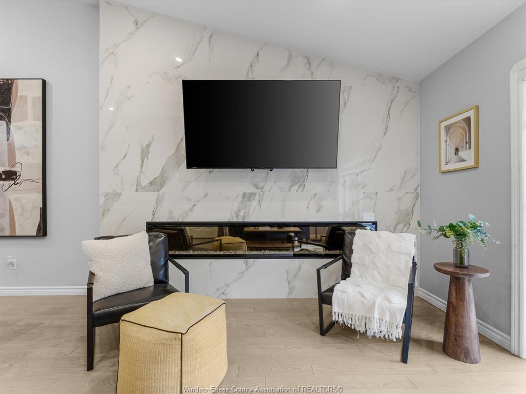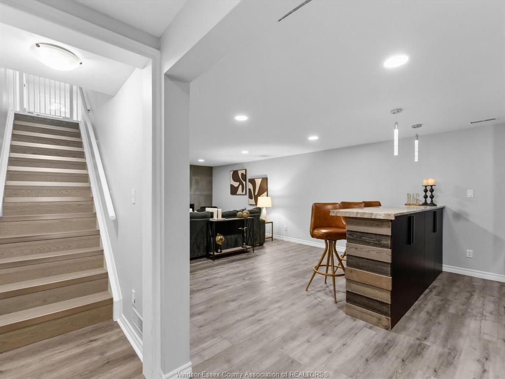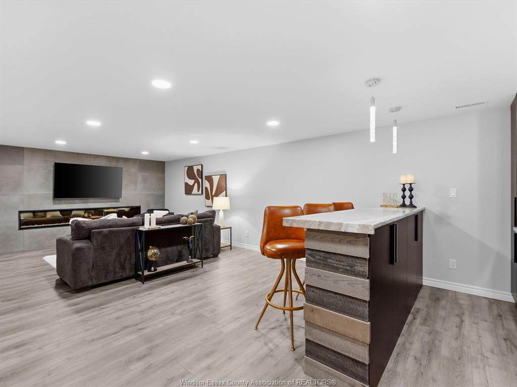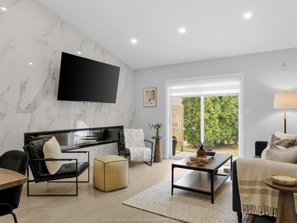 Completely renovated top to bottom in 2022, this beautifully updated 2+1 bedroom, 3 full bathroom townhome is located in a highly desirable east windsor neighbourhood. Every detail was redone, including the bathrooms, kitchen, flooring, tile, paint, light fixtures, and pot lights throughout — truly move-in ready with modern finishes from top to bottom. The main floor features two spacious bedrooms, a convenient laundry area, and engineered hardwood flooring. The custom open-concept kitchen is the heart of the home, showcasing a stunning waterfall island, quartz countertops, and 2x2 tile in the kitchen area. The space flows seamlessly into the dining and living area, highlighted by a large feature wall with a high-efficiency electric fireplace and vaulted ceilings that create a bright, airy feel. The primary bedroom offers a walk-in closet and a beautifully updated ensuite bathroom. Step outside to your private cement patio — the perfect place to enjoy your morning coffee or relax in the evening. The fully finished basement is a gorgeous entertainer’s dream, complete with a second large fireplace, a custom bar with granite counters, a third bedroom, and its own three-piece bathroom — ideal for guests or extended family. Additional updates include a newer ac unit, new washer and dryer, and a new stove. The $115/month hoa fee covers snow removal, grass cutting, aerating, fertilizer and weed control, fall clean-up, and roof maintenance, making for easy, low-maintenance living. Close to all amenities and just steps from blue heron pond and scenic walking trails, this home truly has it all.