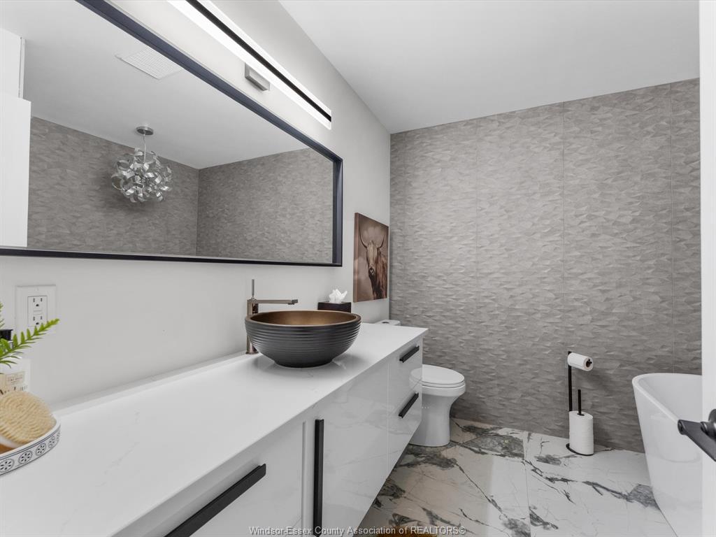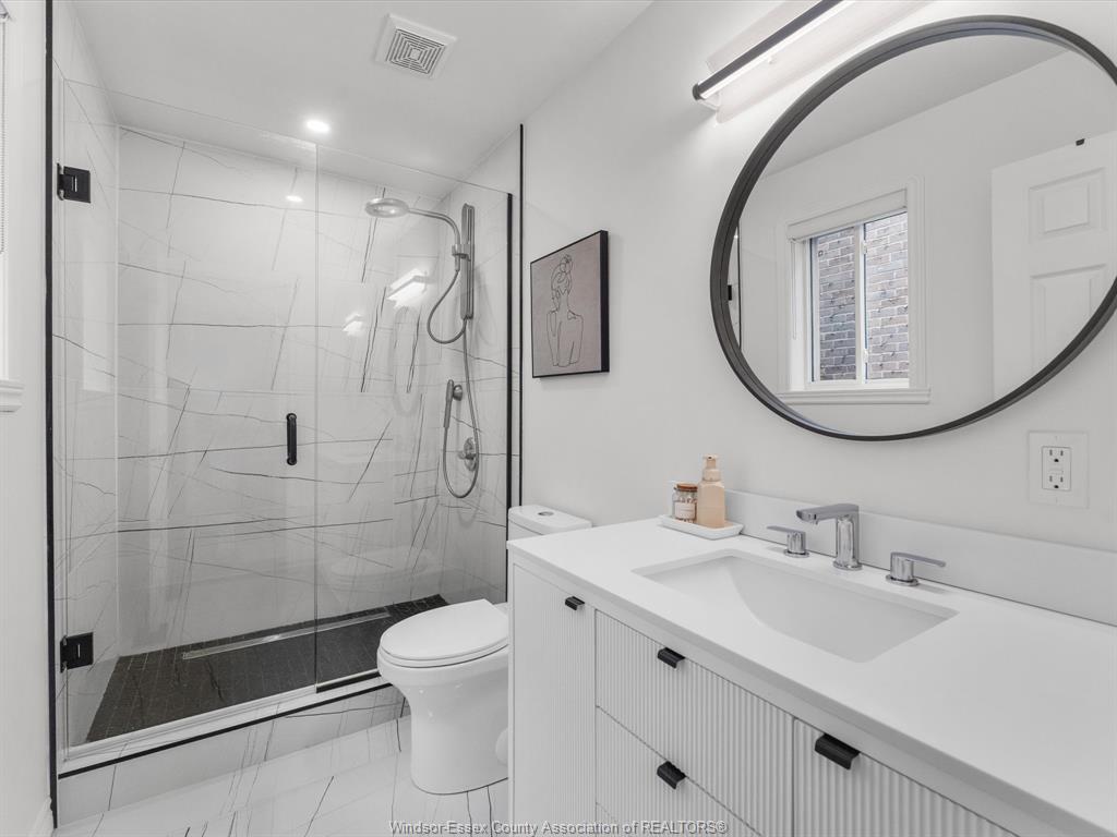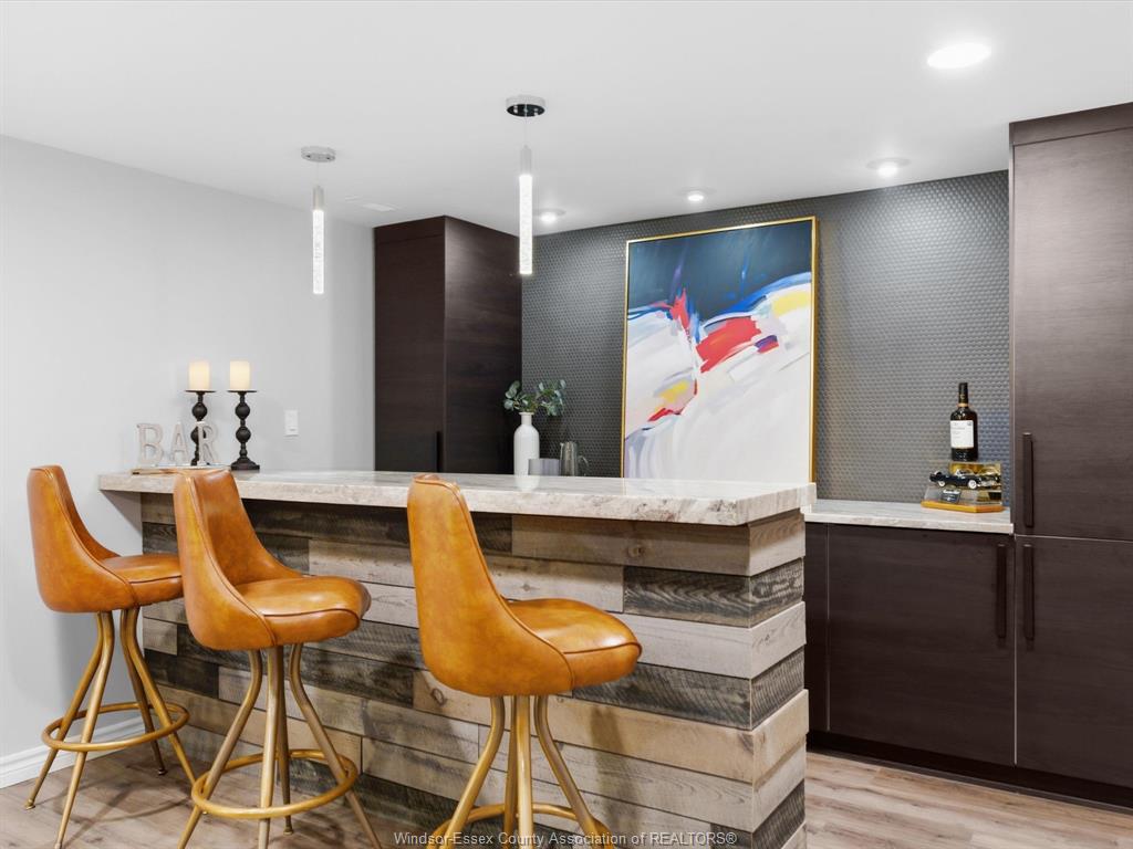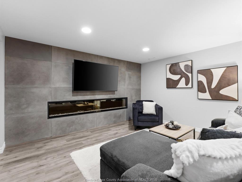 Completely renovated top to bottom in 2022, this beautifully updated 2+1 bedroom, 3 full bathroom townhome is located in a highly desirable east windsor neighbourhood. Every detail was redone, including the bathrooms, kitchen, flooring, tile, paint, light fixtures, and pot lights throughout — truly move-in ready with modern finishes from top to bottom. The main floor features two spacious bedrooms, a convenient laundry area, and engineered hardwood flooring. The custom open-concept kitchen is the heart of the home, showcasing a stunning waterfall island, quartz countertops, and 2x2 tile in the kitchen area. The space flows seamlessly into the dining and living area, highlighted by a large feature wall with a high-efficiency electric fireplace and vaulted ceilings that create a bright, airy feel. The primary bedroom offers a walk-in closet and a beautifully updated ensuite bathroom. Step outside to your private cement patio — the perfect place to enjoy your morning coffee or relax in the evening. The fully finished basement is a gorgeous entertainer’s dream, complete with a second large fireplace, a custom bar with granite counters, a third bedroom, and its own three-piece bathroom — ideal for guests or extended family. Additional updates include a newer ac unit, new washer and dryer, and a new stove. The $115/month hoa fee covers snow removal, grass cutting, aerating, fertilizer and weed control, fall clean-up, and roof maintenance, making for easy, low-maintenance living. Close to all amenities and just steps from blue heron pond and scenic walking trails, this home truly has it all.