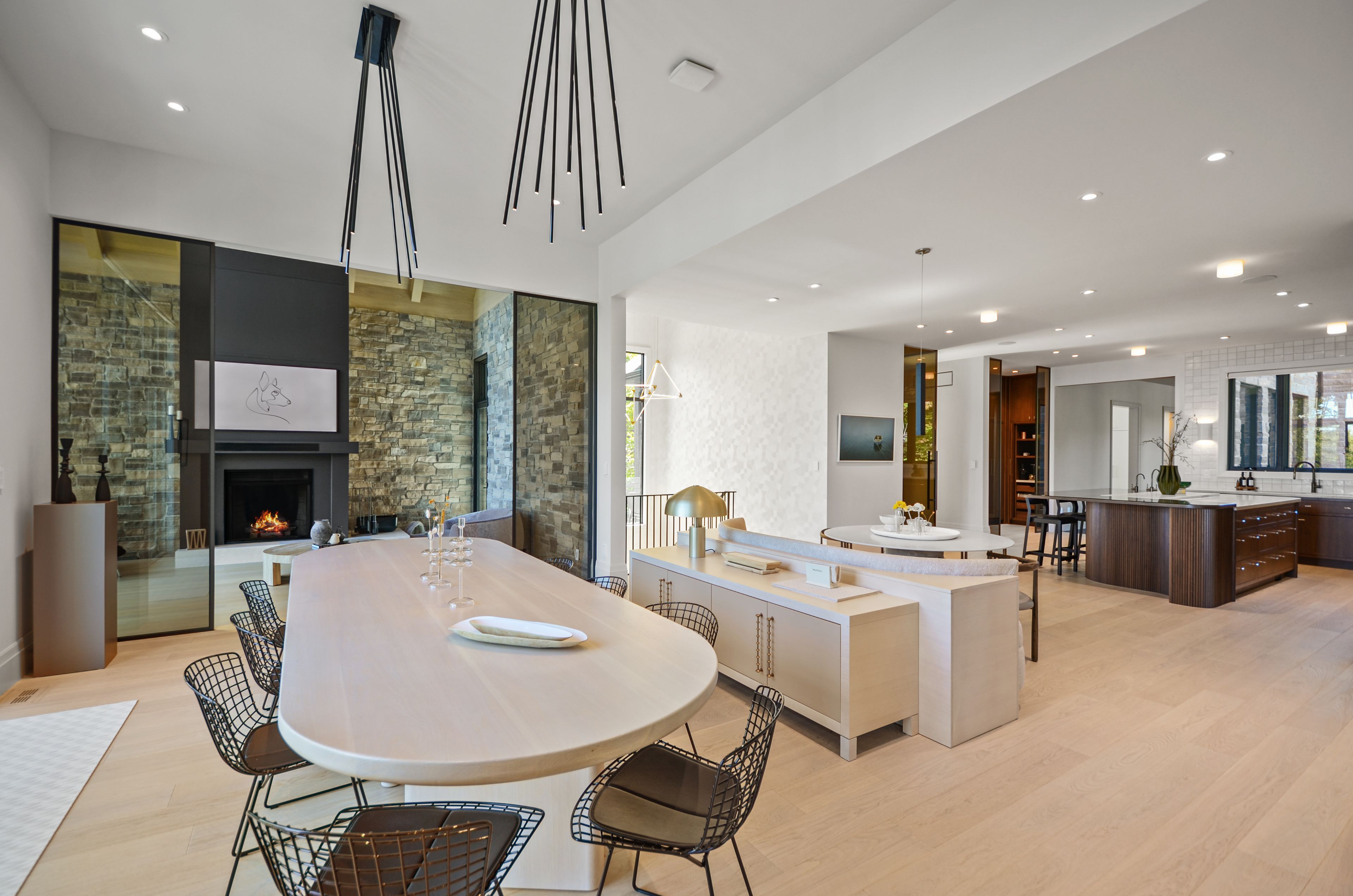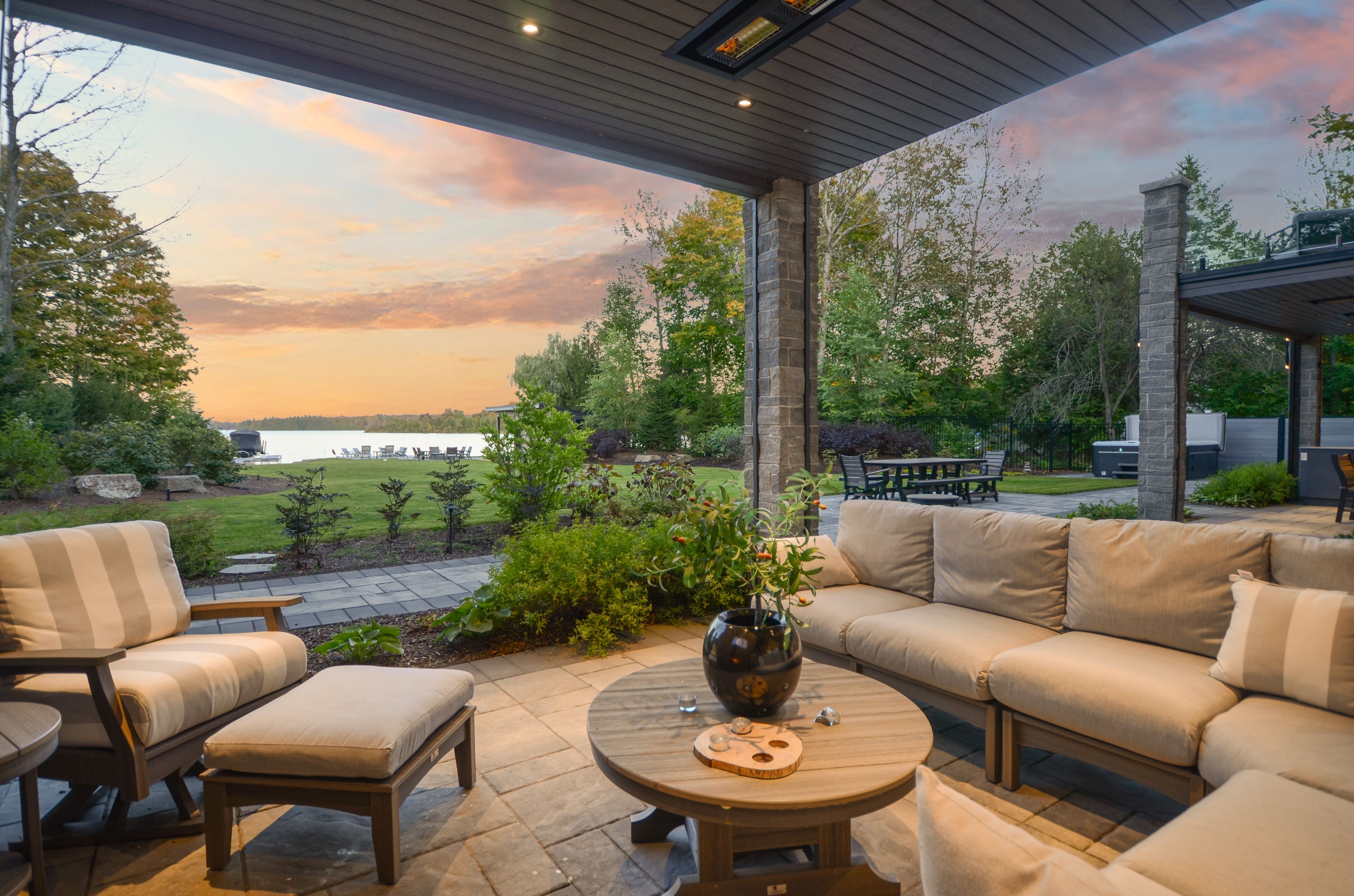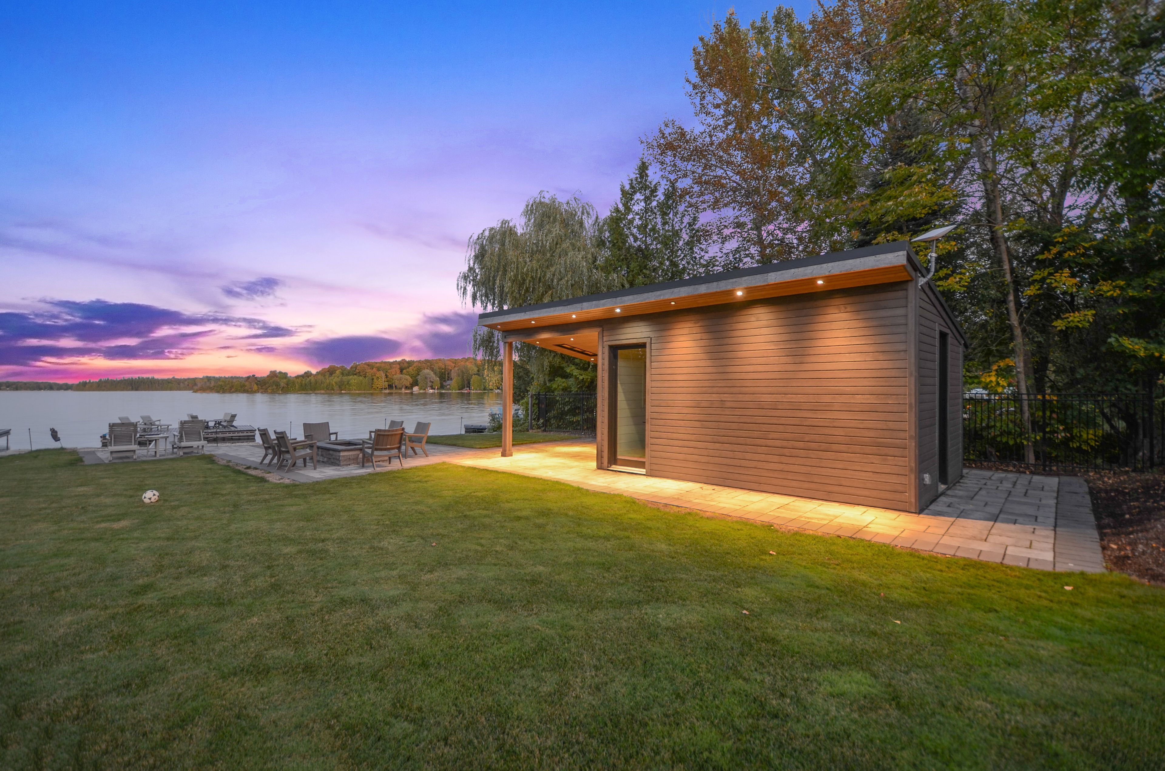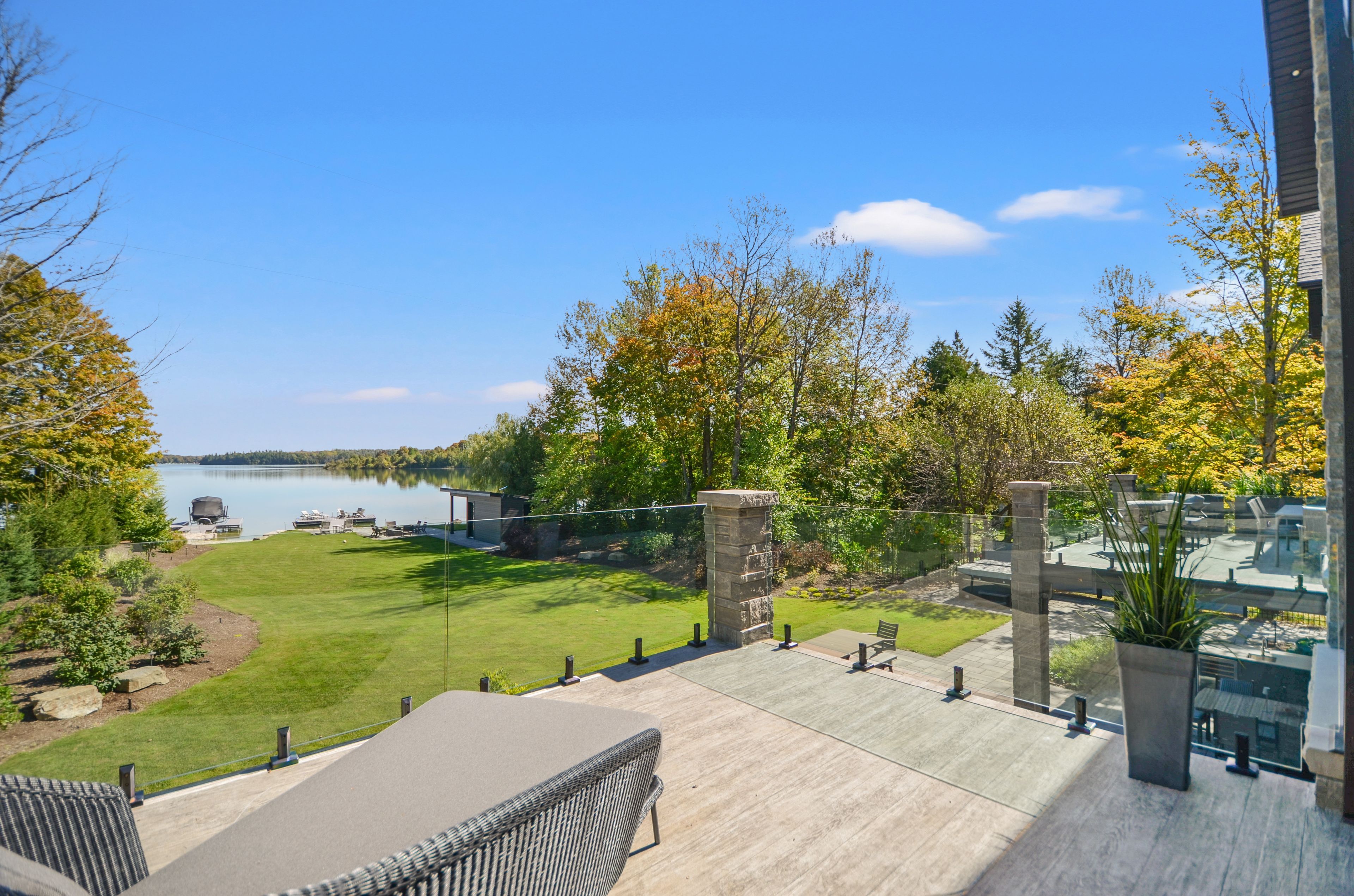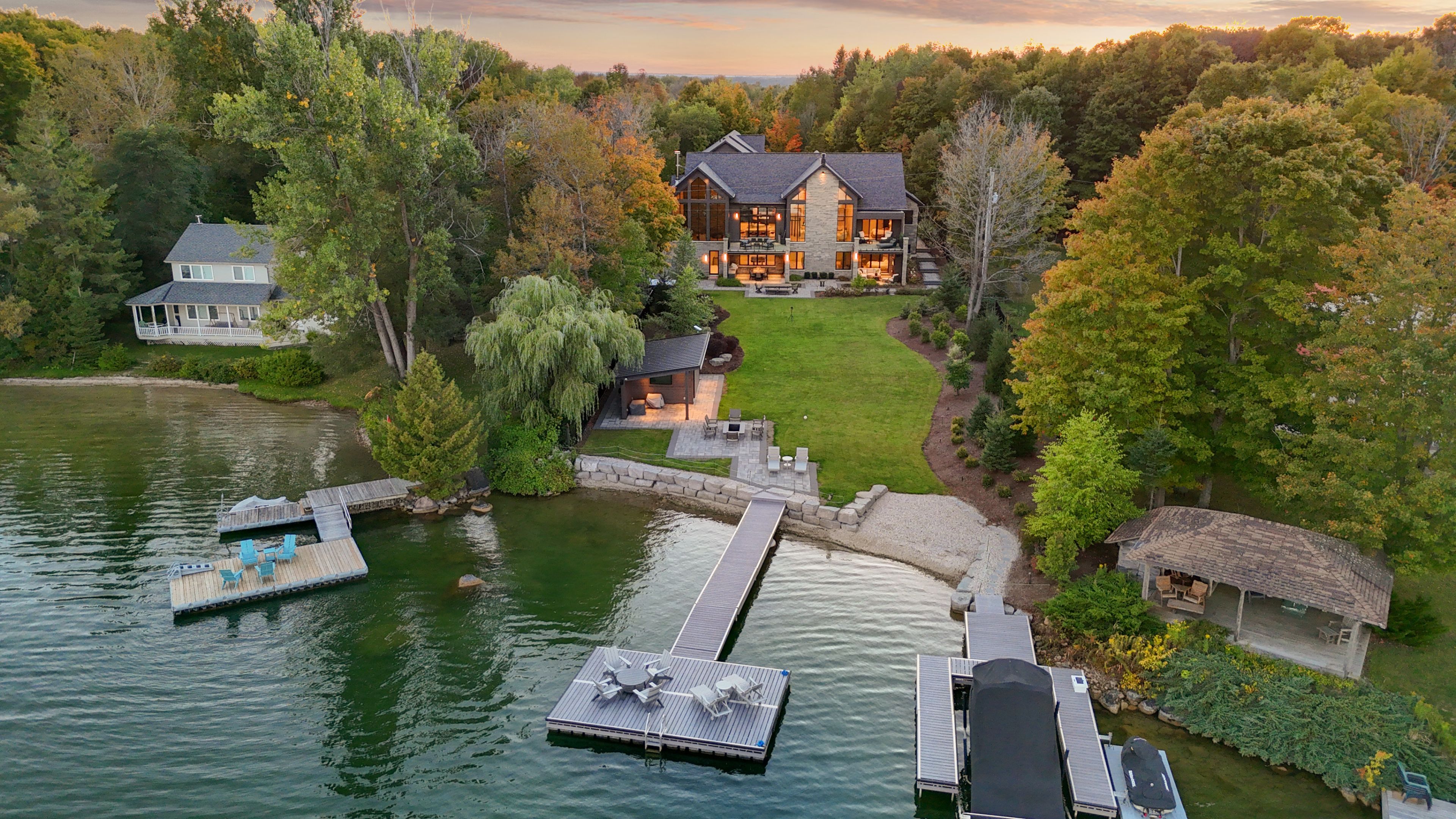 Perched on the shores of lake eugenia and minutes from beaver valley ski club, this 8,100 sq. Ft. Lakefront retreat blends refined design with relaxed four-season living. Crafted with precision and finished by em design, its a home made for gathering, entertaining, and unwinding by the water. The grand entrance opens to a breathtaking great room with vaulted ceilings, floor-to-ceiling windows framing lake views, and a dramatic 48" gas f/p. The chefs kitchen delivers professional appliances, dual dishwashers, a walk-in pantry, wine room, and coffee station. For meals, enjoy a formal dining area for 12 overlooking the lake or a cozy breakfast nook. Just beyond, the lake room with stone walls and wood-burning fireplace offers the perfect spot for après-ski evenings. The main-floor primary suite is a private sanctuary with radiant heated, instant screened porch, and spa-inspired ensuite featuring walk-in dressing room, oversized shower, makeup vanity, and kohler bidet toilet. Above the garage, a 1,500 sq. Ft. Two-bedroom in-law suite includes a large deck with front-court views. The walkout lower level provides 3 ensuite bedrooms, a fitness room with steam bath, workshop access, laundry, and a 3-piece bath serving the hot tub and lake. The family room is an entertainers dream with pool table, peninsula bar with draft beer, and walkout to a covered outdoor kitchen and lounge with fireplace and tv. Outdoor living is elevated with two composite docks, boat lift, a lakeside cabana, hot tub, and multiple gathering spaces. Smart-home features let you control it all from your phone, making every season effortless.