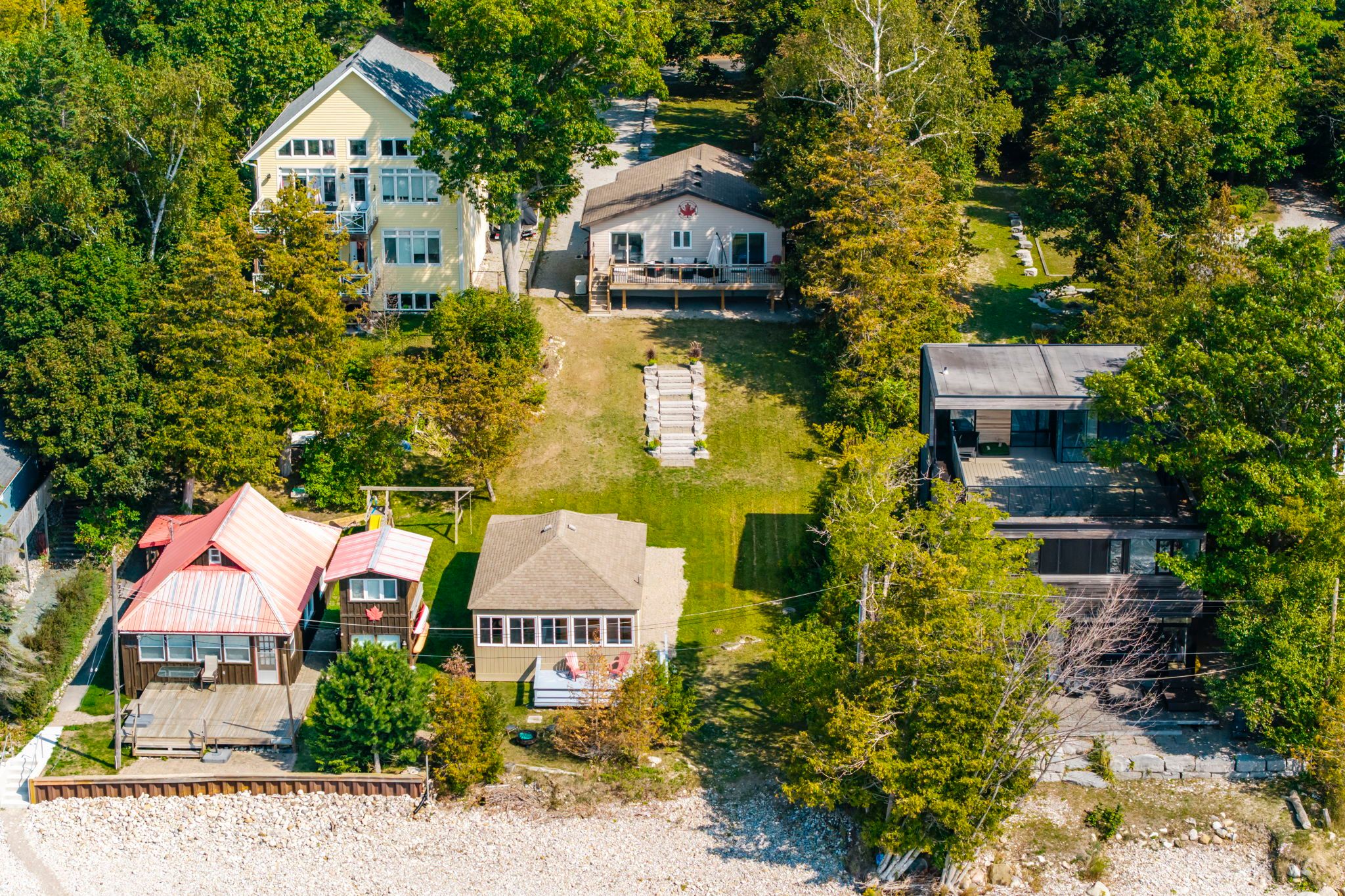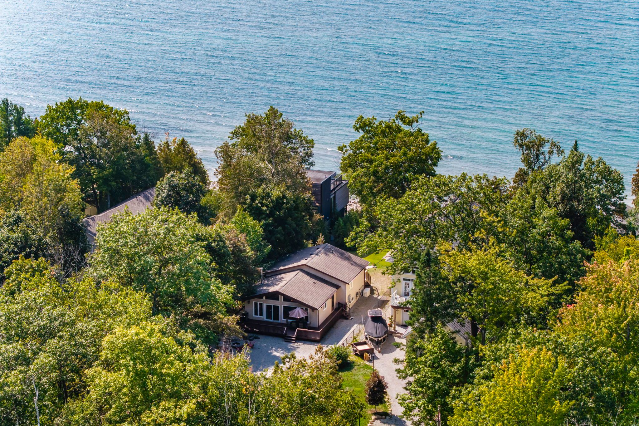 • Waterfront property with two cottages for personal use or rental income.