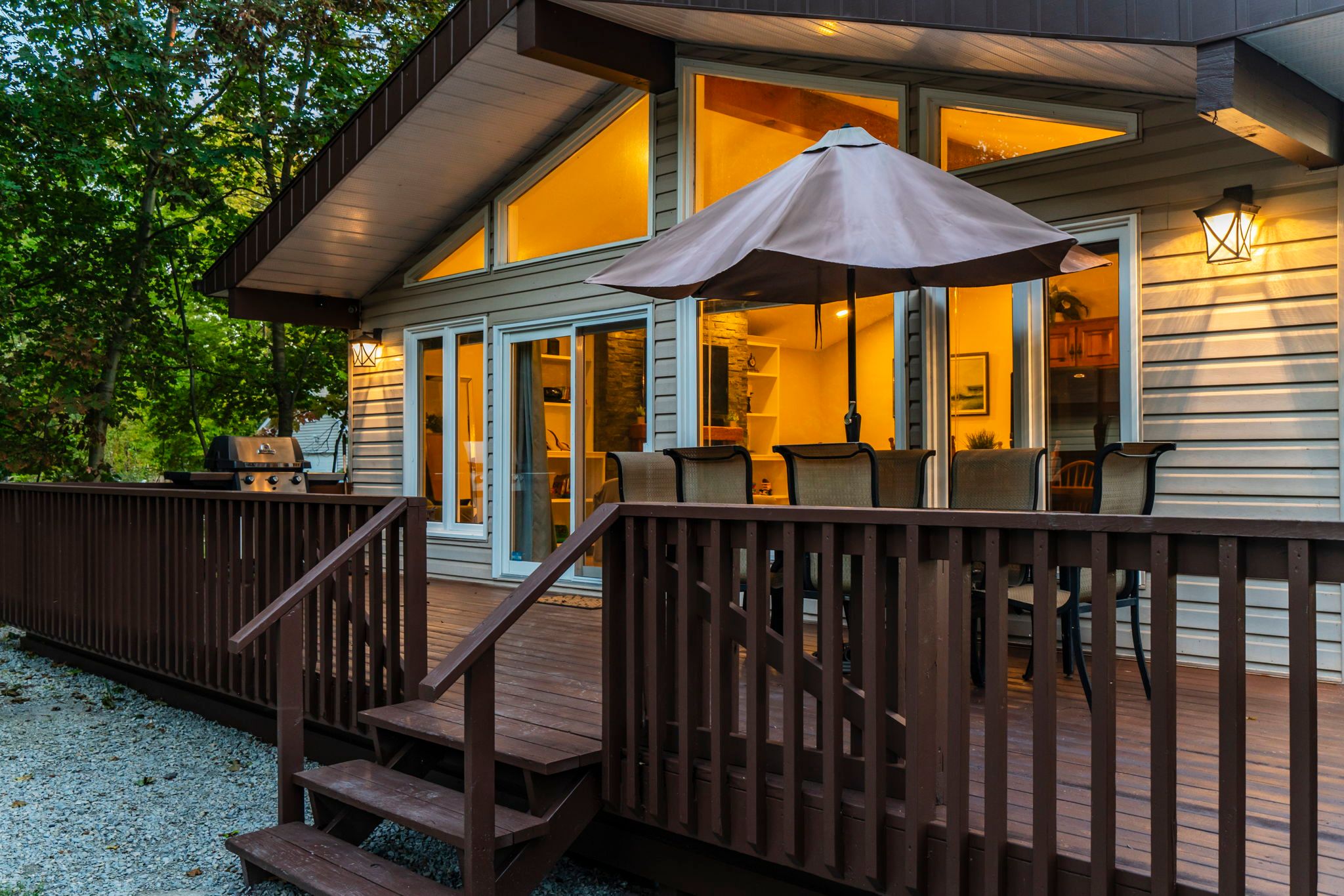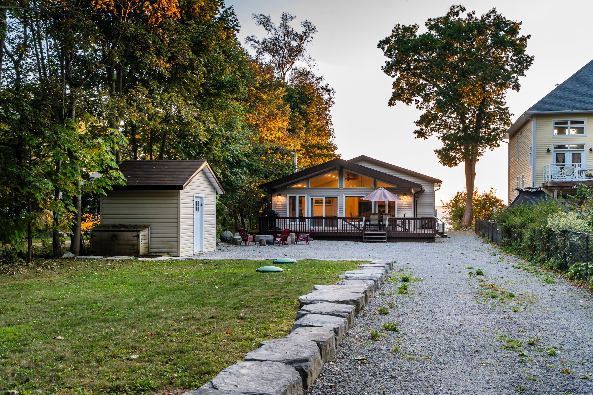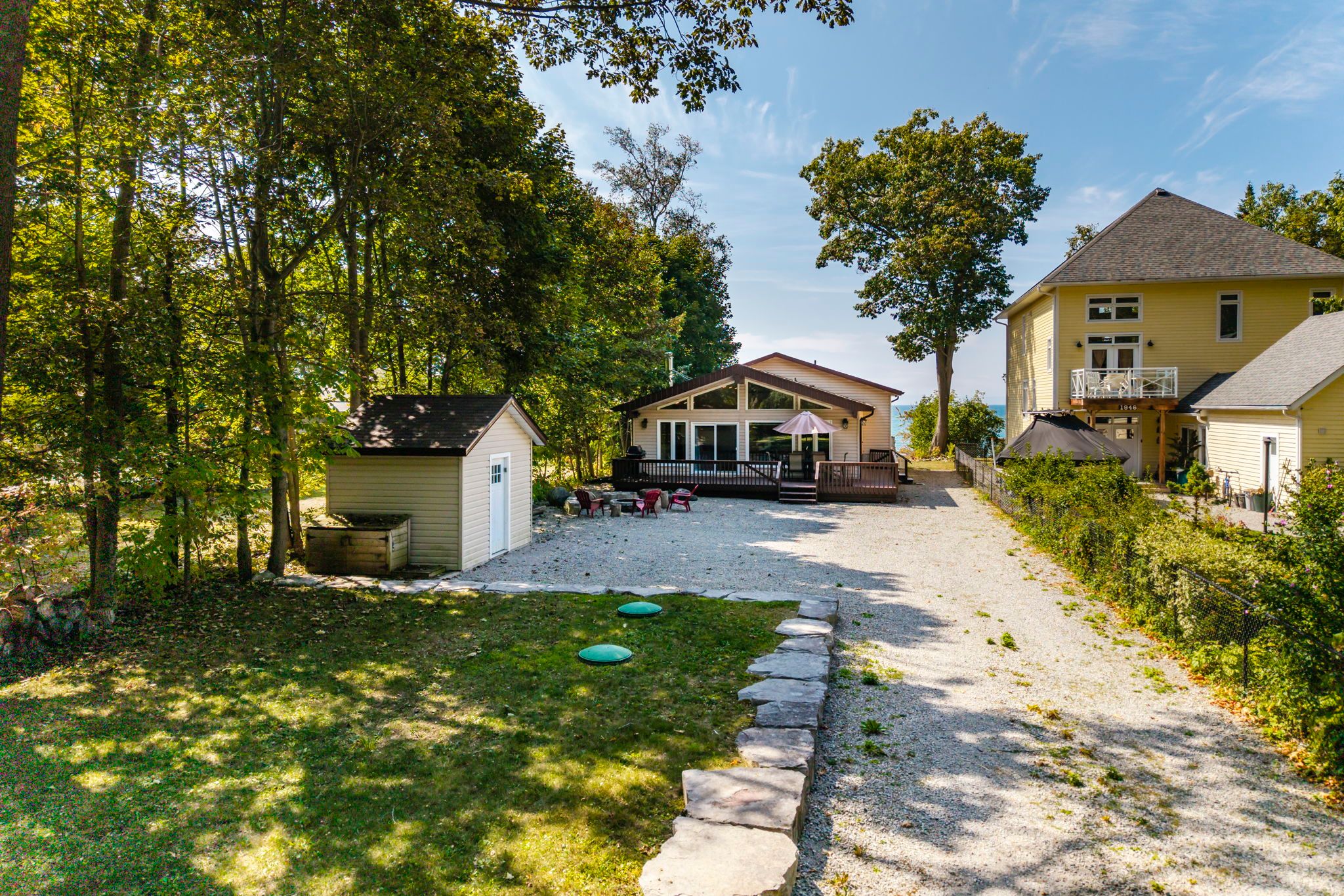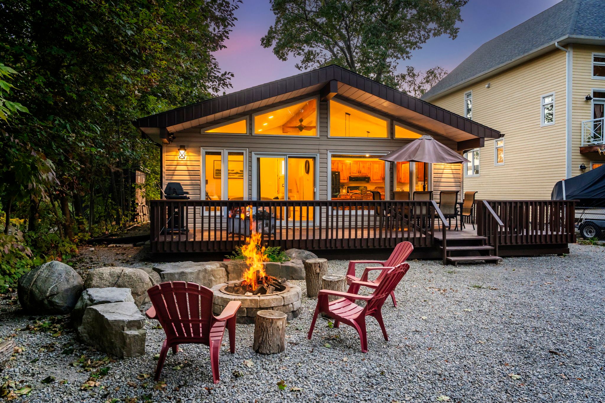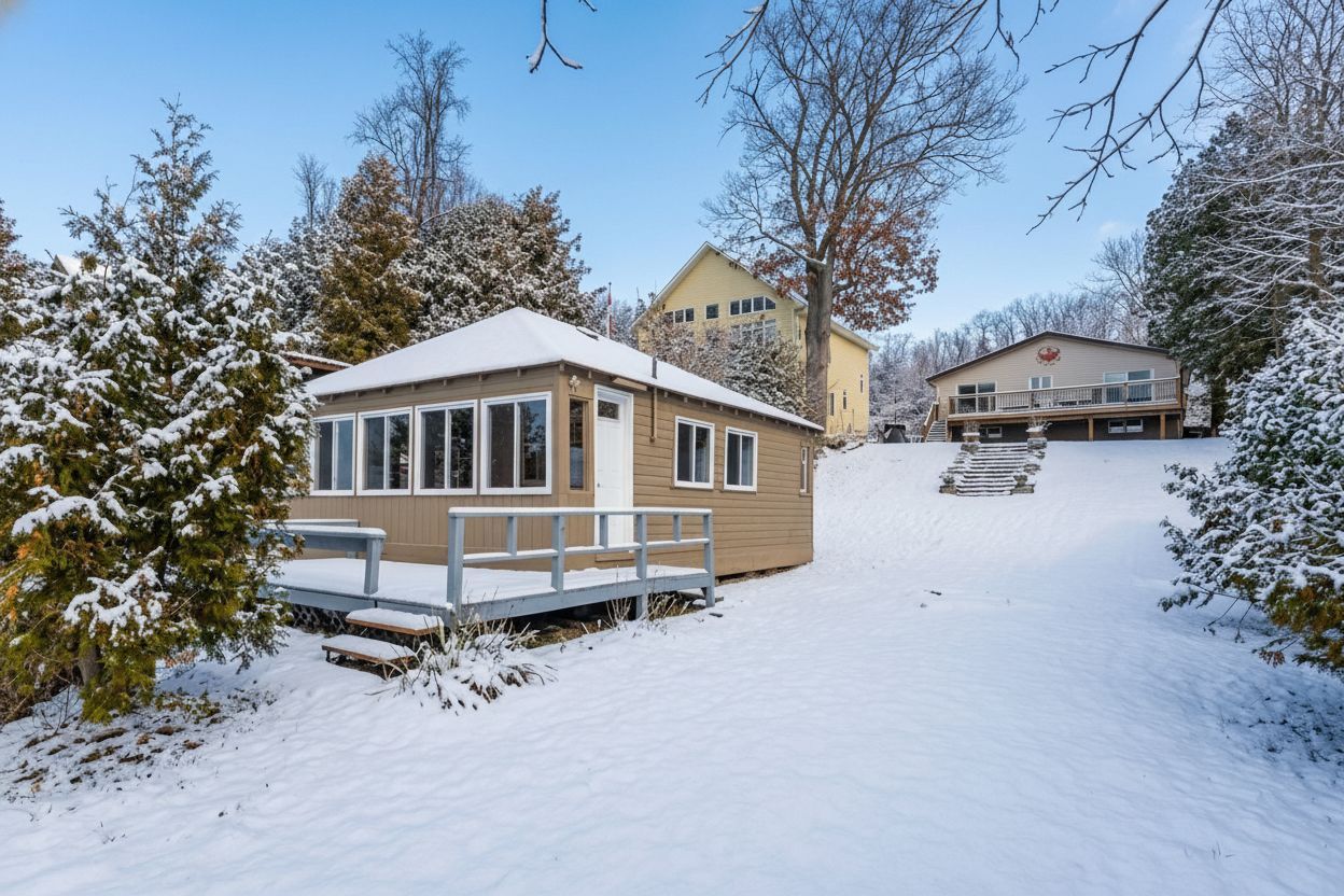 Great opportunity to own waterfront with 2 cottages! Or make the main cottage your year-round home and have the smaller cottage for your guests or for extra income. The main home features a spacious open concept living area great for visiting friends or a big family gathering featuring cathedral ceilings, a full wall of windows w/walkout to deck, and firepit area, and a beautiful gas fireplace with reclaimed wood mantle. Two of the three bedrooms have sliding glass door walkouts to the deck and take full advantage of the water view and amazing sunsets. A full bath & den completes the rooms on the upper level. A large rec room in the lower level offers additional space for the kids to hang out as well as a laundry closet & 2 pc bath for convenience. The lower original cottage has had many upgrades in the past year including: new windows, vinyl plank flooring, and a new entrance door. It features 2 bedrooms, a 2pc bathroom and open concept kitchen/living area with a front deck to enjoy the fantastic view. The main cottage has a whole home water filtration system (2017) which also feeds water to the lower cottage as well as the hydro and in case of power outage, the generator operates the entire property, the lower cottage included. This property has a gentle slope to the water and a great stone staircase from the upper to the lower cottage and beach. In 2017, upgrades included: a new furnace & a/c, the water filtration system, gas lines, the fireplace, the rear deck, vinyl flooring, pine doors, new windows & sliding glass doors. In 2020, kitchen & bath countertops were replaced w/ quartz and the shed was added. You cant beat this location, close to amenities like the woodland beach market, lcbo & convenience store and just a short drive to ski resorts. This could be the opportunity you have been waiting for in a very friendly neighborhood!
