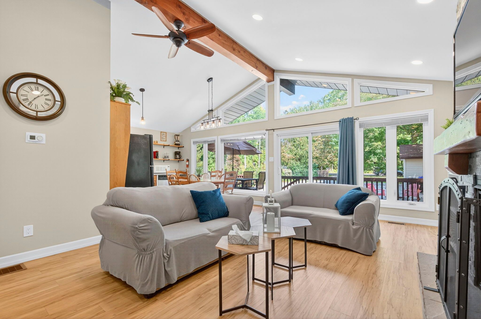 • Spacious main cottage with open concept living area and stunning water views.