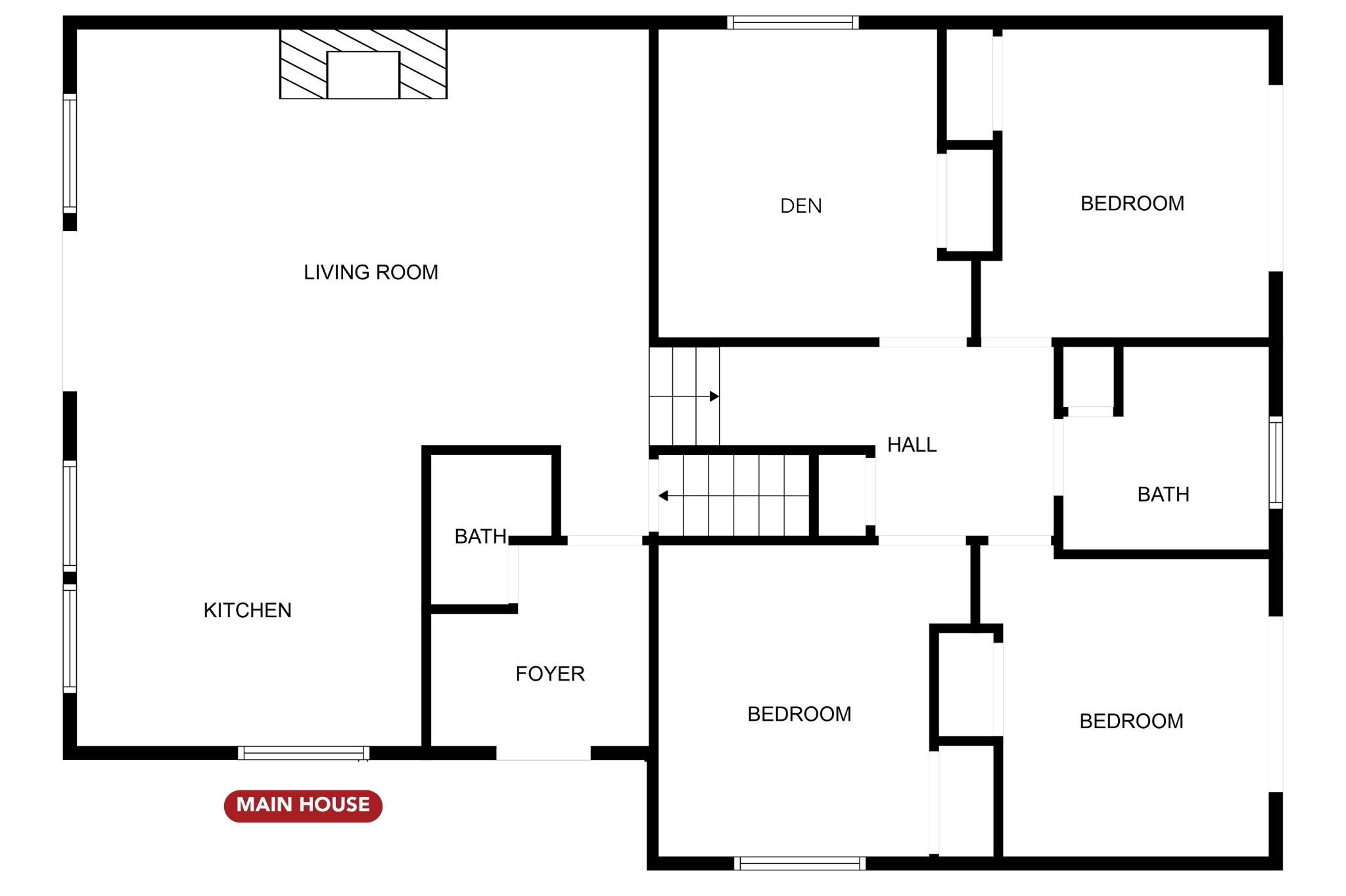 • Spacious main cottage with open concept living area and stunning water views.