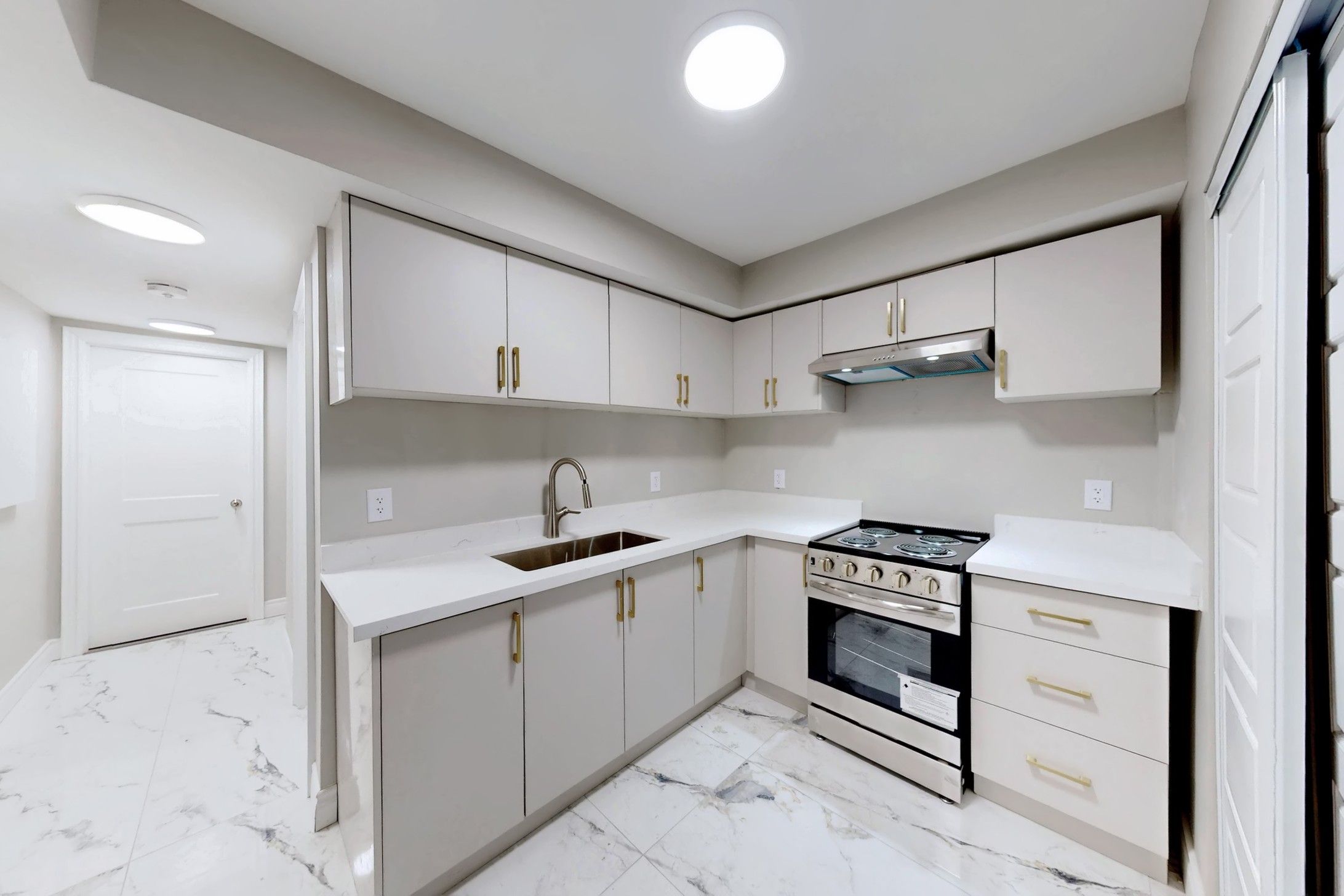 Bright and spacious large open concept 2 bedrooms + 1 washrooms unit on main floor, large-format modern porcelain tiles in kitchen. Located in a friendlyneighborhood, close to shopping, schools, and public transit.