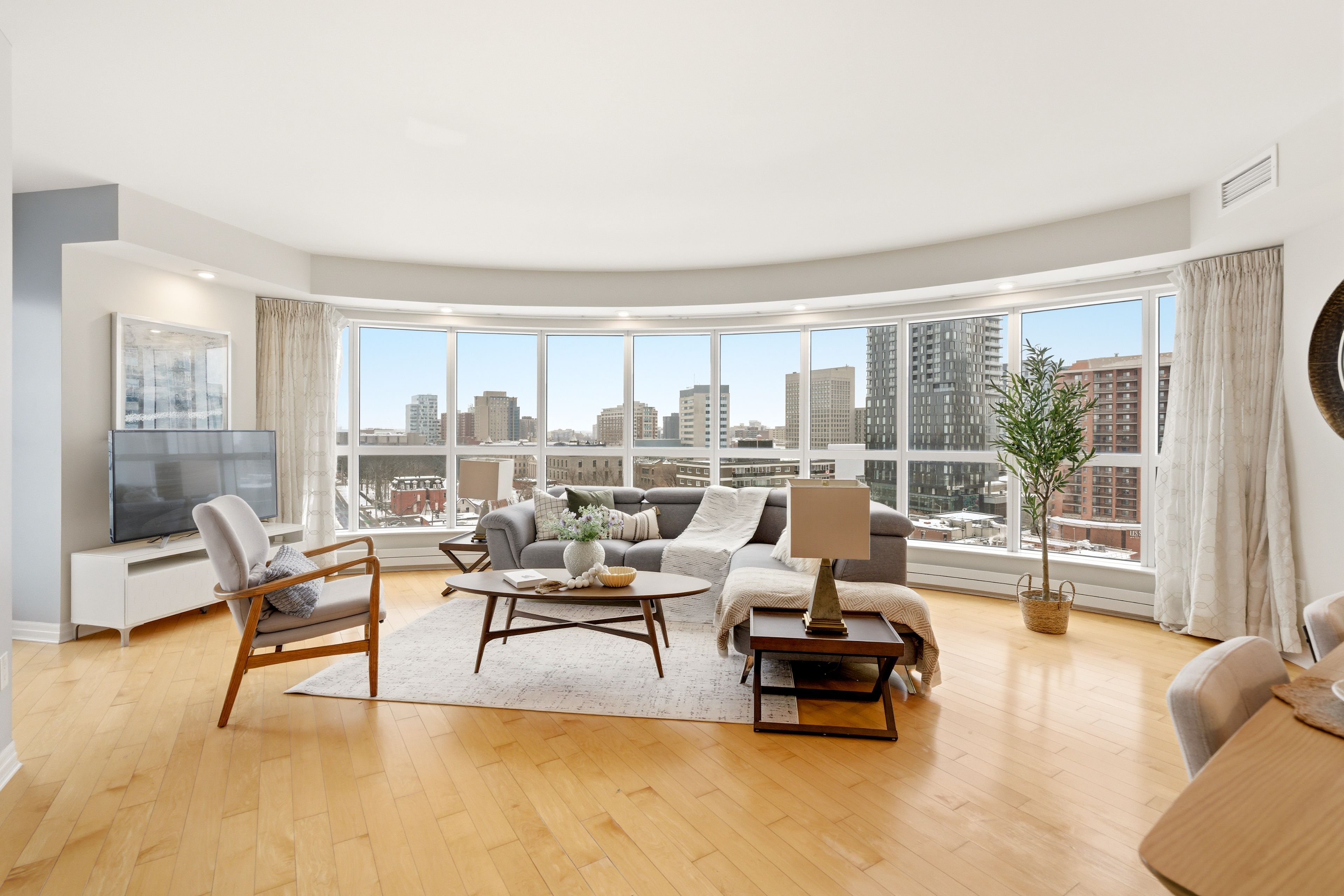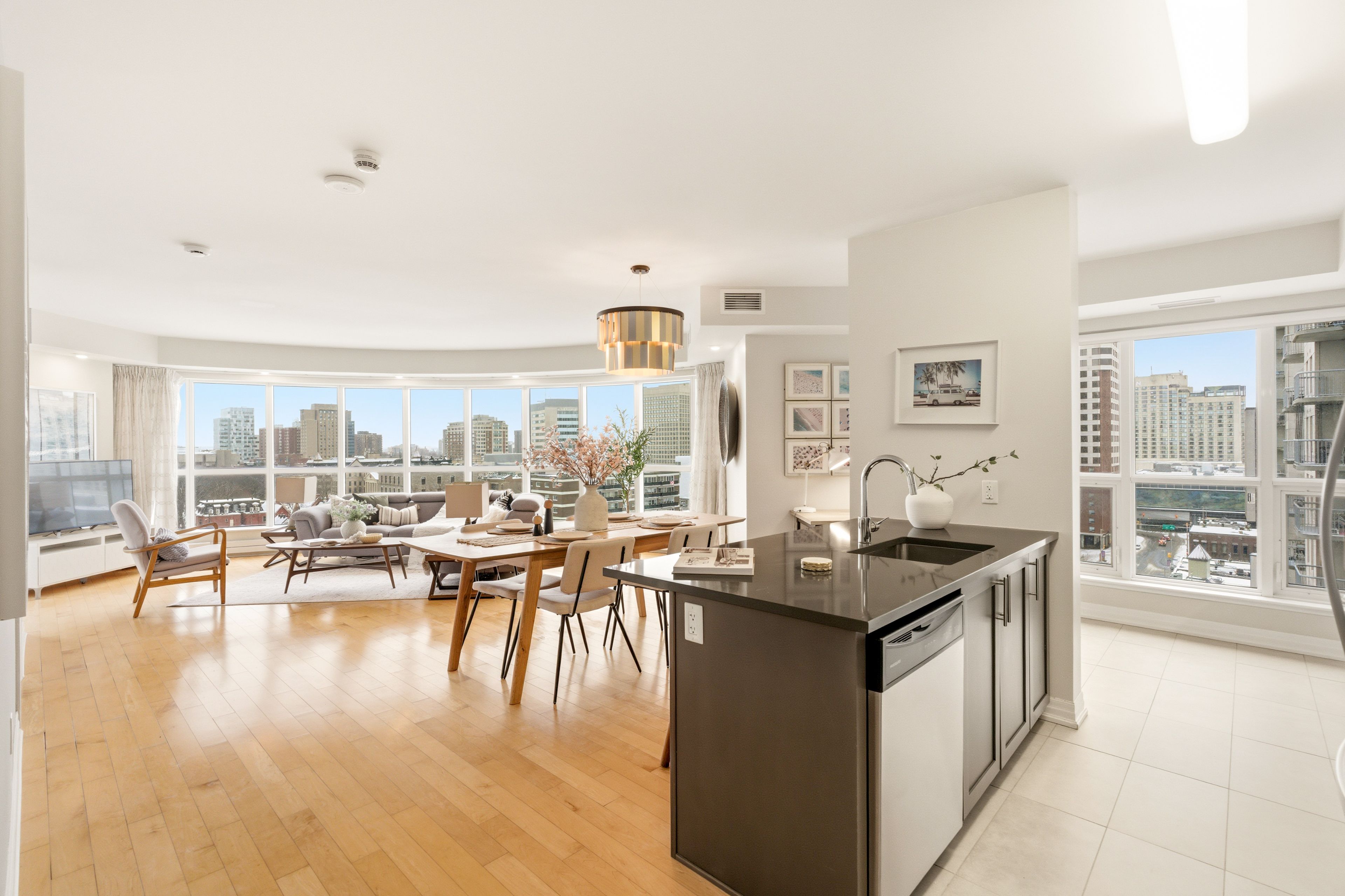 Oversized curved windows wrap the living space, delivering exceptional natural light and breathtaking panoramic views overlooking much of ottawa, creating a truly distinctive urban living experience. This bright and spacious 1,280 sq. Ft. Two-bedroom, two-bath condo offers a unique yet highly functional layout with an open-concept living and dining area, a modern kitchen with clean finishes, a spacious primary bedroom, and a versatile second bedroom ideal for a home office or guest room. Located in a professionally managed building with 24-hour concierge, indoor pool, fitness centre, sauna, and party/meeting rooms, just steps to parliament hill, the byward market, rideau centre, university of ottawa, and lrt transit, providing exceptional walkability and a convenient downtown lifestyle. Available from april 1st.