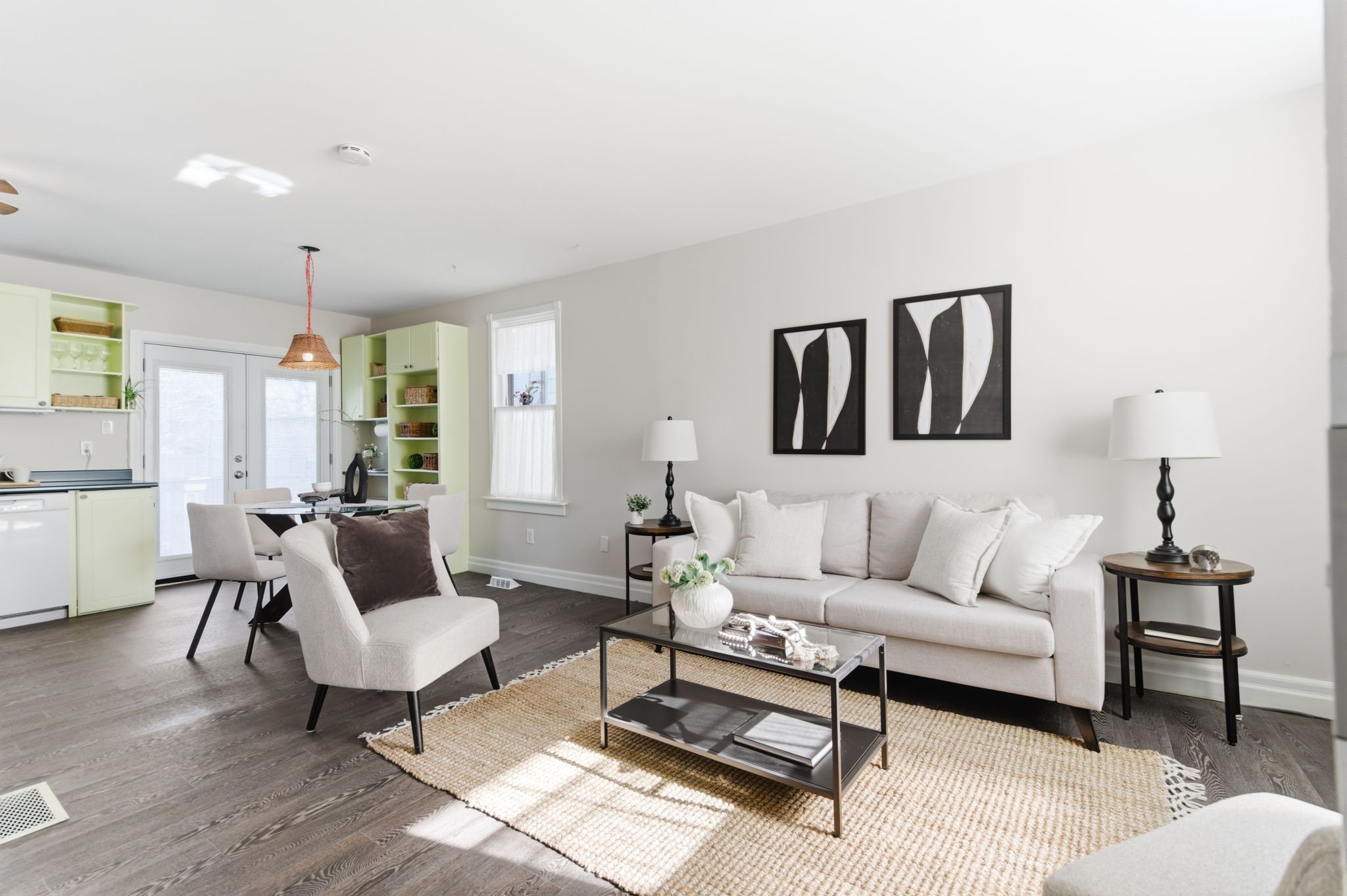 • Bright foyer and sun-filled living room for a welcoming atmosphere.