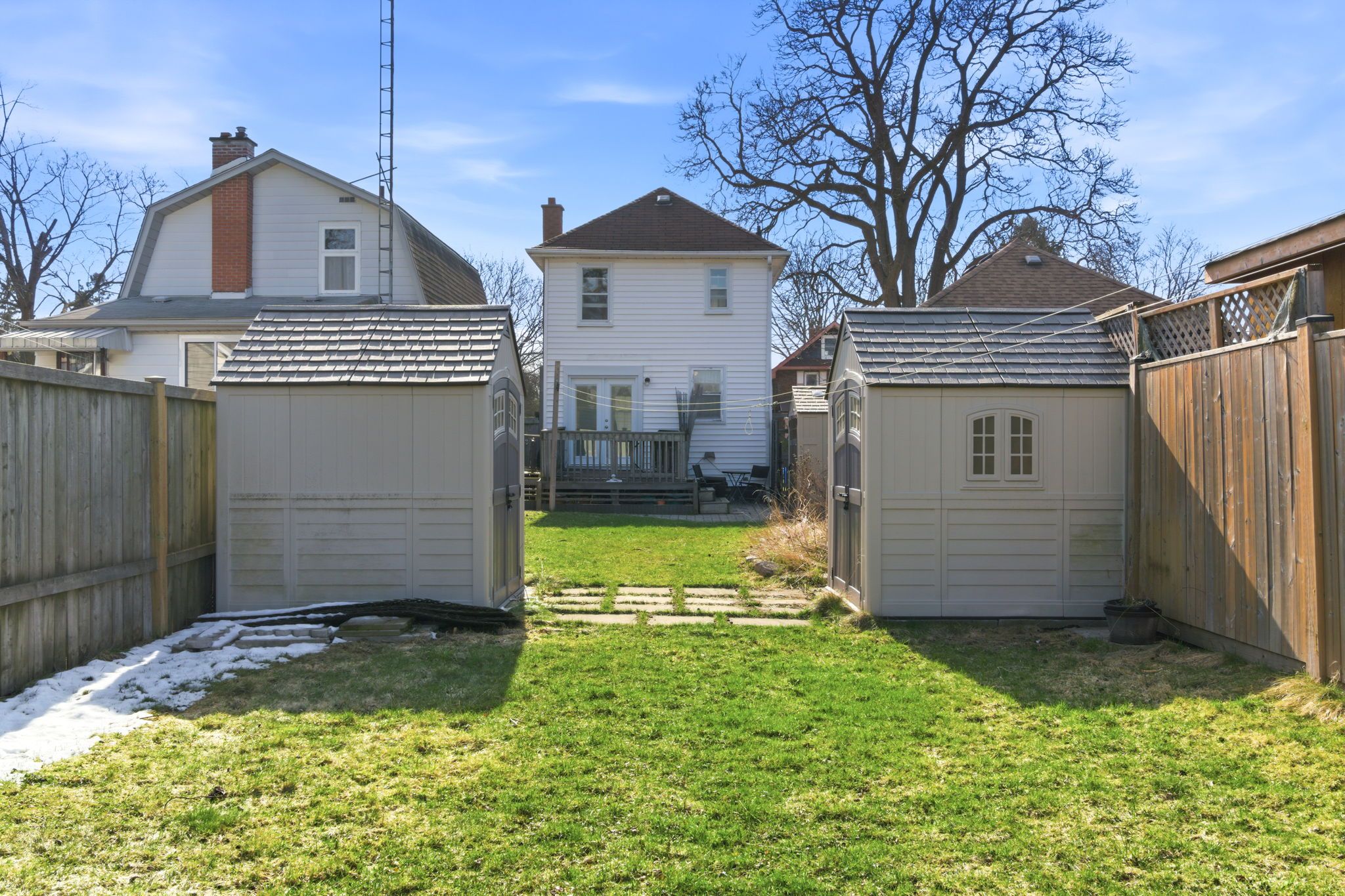 Welcome to this charming home offering an impressive, extra-long backyard that provides a rare sense of space. The outdoor setting is a standout feature, complete with a deck and patio that create the perfect backdrop for outdoor dining, gardening, or simply enjoying the open green space. The fully fenced yard also includes three garden sheds, offering exceptional storage and versatility. Step inside to a bright and inviting foyer that sets the tone for the warm and welcoming interior. The main level features a sun-filled living room with a large window and a pleasant view overlooking the front yard, creating a comfortable and light-filled space for everyday living. The eat-in kitchen is both functional and inviting, offering ample space for family meals and gatherings. With a walkout to the deck and a large window, this area is filled with natural light and provides seamless access to the backyard, making indoor-outdoor living effortless. Upstairs, you'll find three well-appointed bedrooms, each designed with comfort in mind. The primary bedroom features broadloom flooring, a bright window, and a front yard view, while the additional bedrooms also offer broadloom, natural light, and practical layouts, including closet space for added convenience. The unfinished basement presents an excellent opportunity to create a space tailored to your needs, whether you envision a recreation area, home office or additional living quarters. With its inviting interior, expansive outdoor space, and endless potential, this home is a wonderful opportunity for those looking to create something truly special.