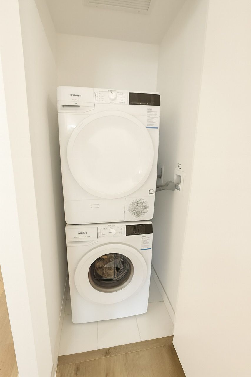 Welcome home to your 1-bedroom, 1-bathroom condo in festival tower b, offering stunning west-facing views perfect for enjoying breathtaking sunsets. This thoughtfully designed unit features high ceilings, energy-efficient windows, and a bright open-concept living and kitchen area with engineered hardwood flooring throughout. The modern kitchen is equipped with stainless steel appliances, while the convenience of an ensuite laundry enhances everyday living. Residents are welcomed by a stylish two-storey lobby with lounge seating and enjoy 24-hourconcierge service along with access to the festival club, offering premium amenities for relaxation and recreation. The spacious private balcony and unobstructed west-facing exposure from the living, dining, and primary bedroom provide abundant natural light and beautiful sunset views. Ideally located steps from ttc, vmc subway station, viva transit, and with quick access to highways 7, 400, and 407. Surrounded by top-tier amenities including ikea, costco, cineplex, vaughan mills, and an excellent selection of restaurants, cafés, and pubs, making this an exceptional opportunity to live in the heart of vaughan's vibrant urban community. **virtually staged **