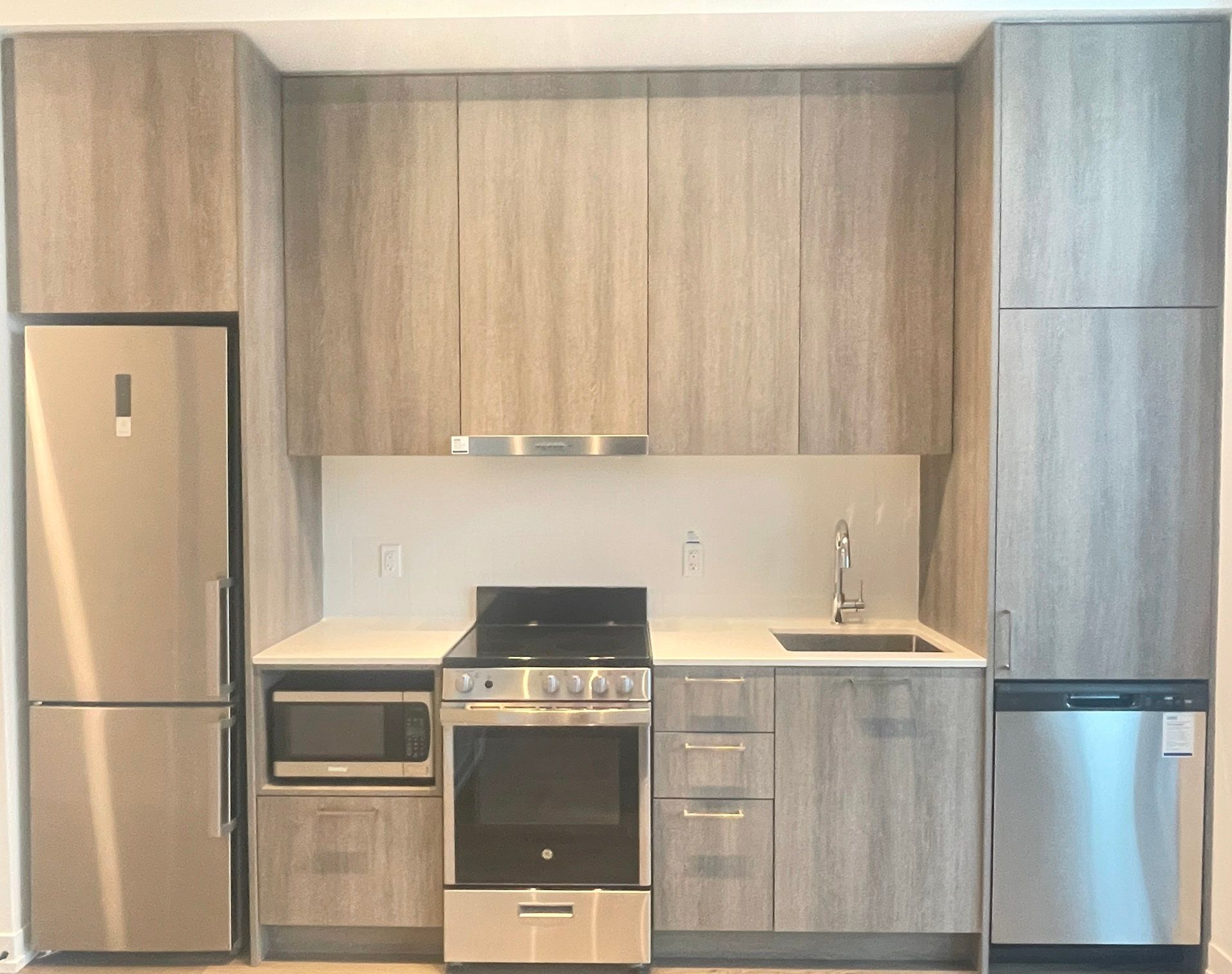 • Modern kitchen featuring stainless steel appliances and quartz countertops.