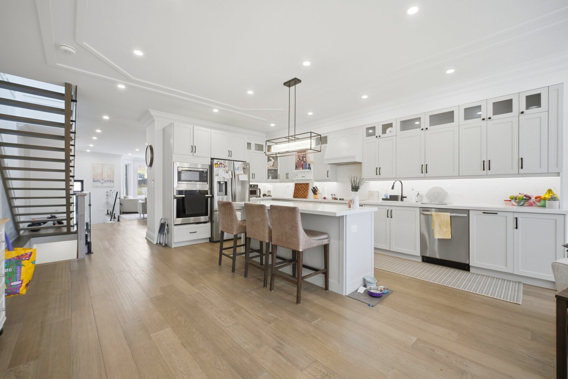 Prime toronto location in desirable oakridge community * 140 ft deep lot custom detached home built in 2022 * approx. 2370 sq ft * 4+1 bedrooms 5 bath * modern open-concept layout with 9 ft ceilings on main * spacious living & dining areas crown moulding* panelled walls* hardwood floors * modern kitchen with quartz countertops, large centre island overlooking family room & backyard * skylights bring in natural light *primary bedroom retreat featuring his & hers closets & spa-like 7-piece ensuite * every bedroom with a bathroom * custom built-in closets * separate entrance to basement featuring 1 bedroom apartment with kitchen, full bath & living area - ideal for in-law suite * close to schools, parks, shopping, transit & all amenities *