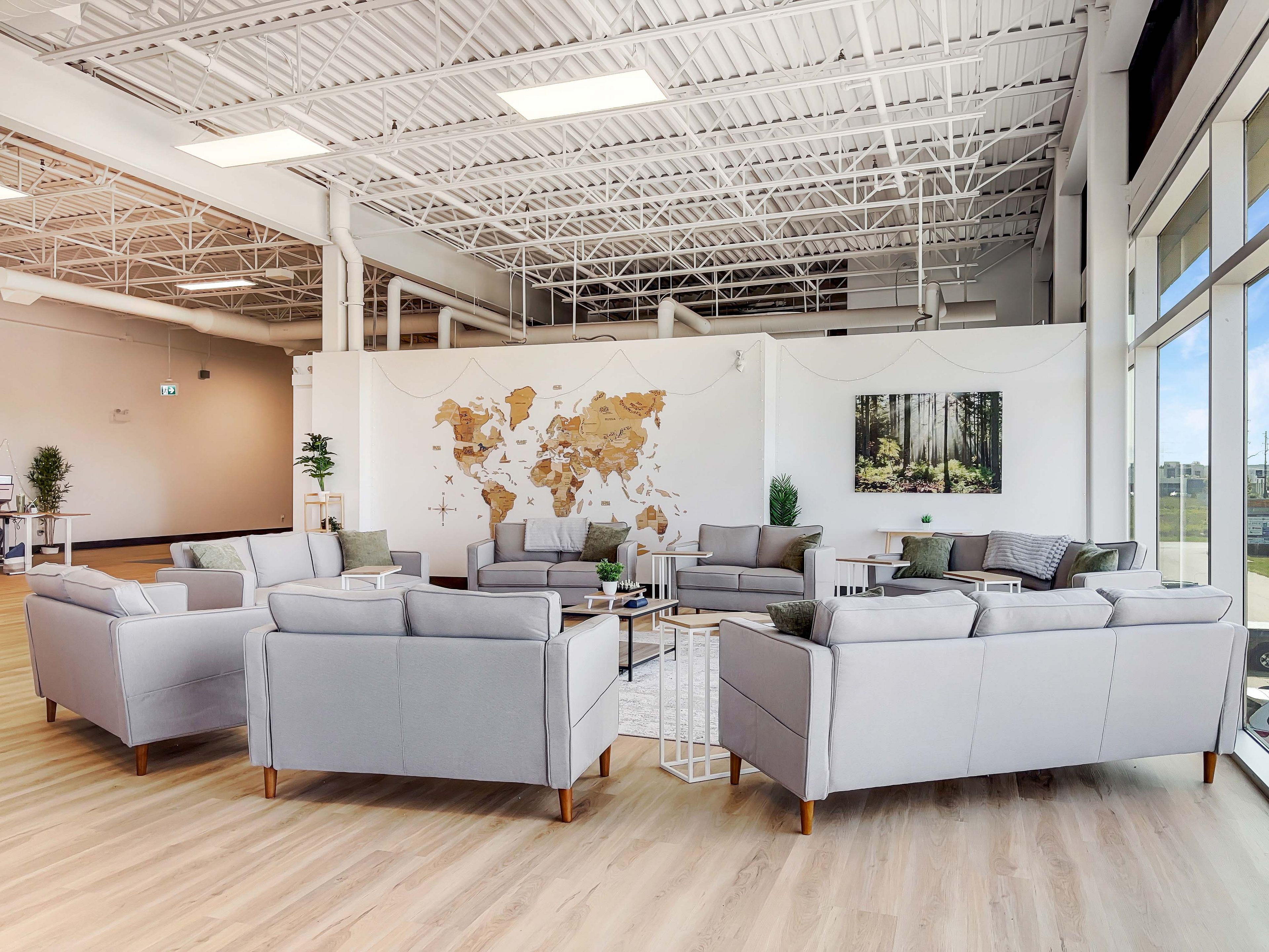 • Bright unit with floor-to-ceiling windows and open collaborative areas.