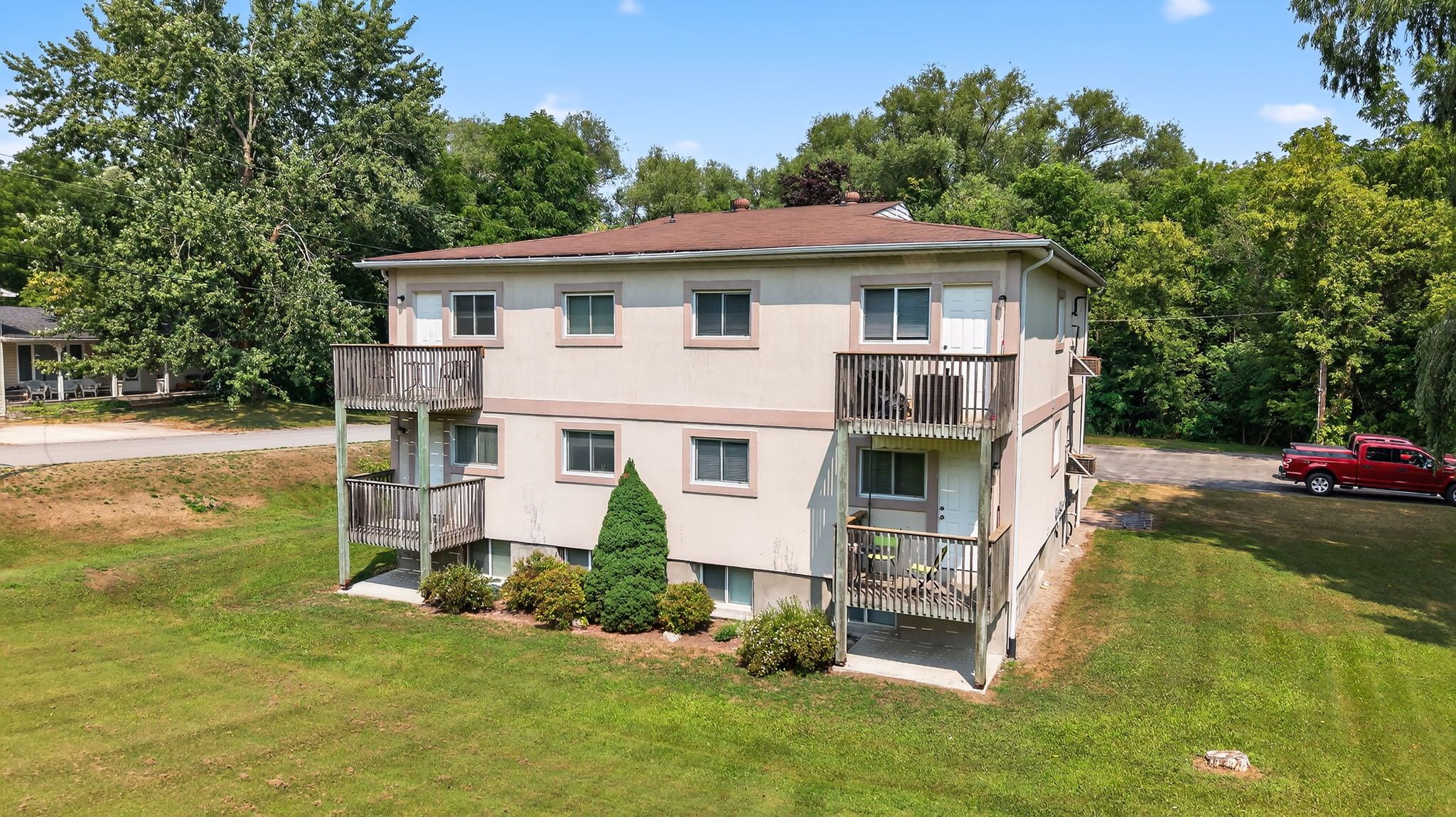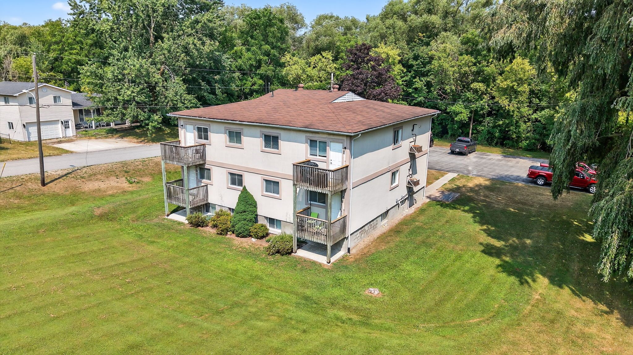 Exceptional investment opportunity in rapidly growing stayner! Situated on just over 2. 3 acres in the heart of stayner, this purpose-built 6-plex offers a rare chance to secure a solid income-generating asset in a community experiencing booming residential and commercial development. Each of the six well-maintained units features 2 spacious bedrooms, 1 full bathroom, and functional layouts ideal for tenants seeking comfort and convenience. The property also includes on-site coin-operated laundry facilities, ensuring additional income potential and tenant satisfaction. Tenants will appreciate the ample parking, generous green space, and proximity to local amenities including schools, shops, restaurants, and transit. With room to explore future expansion, the long-term value of this property is undeniable. Stayner is fast becoming a desirable hub for both commuters and families seeking a small-town lifestyle with easy access to collingwood, wasaga beach, and barrie. Whether you're a seasoned investor or just entering the multi-residential market, this