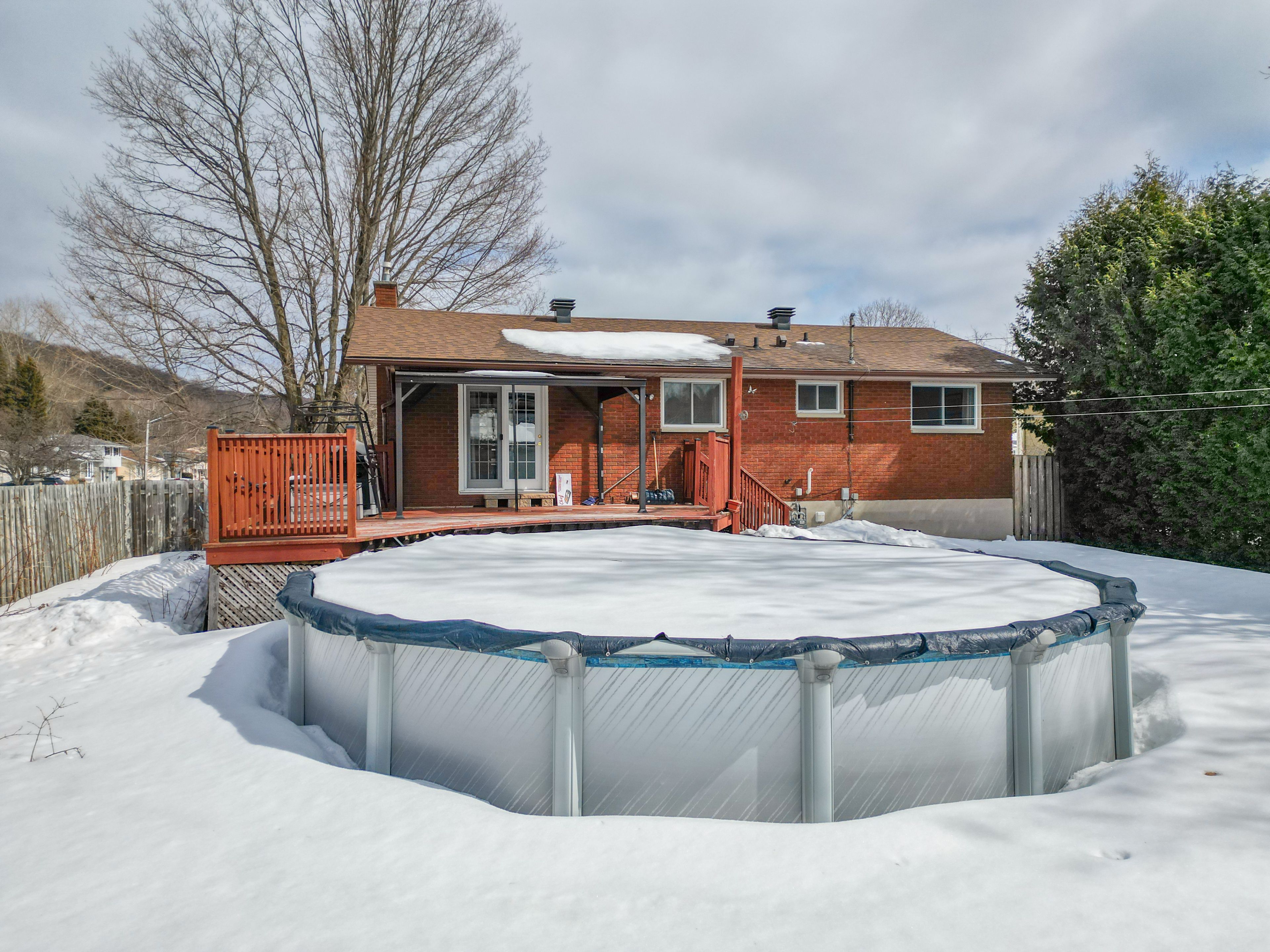 • Private backyard oasis featuring an above-ground pool and fruit bushes.