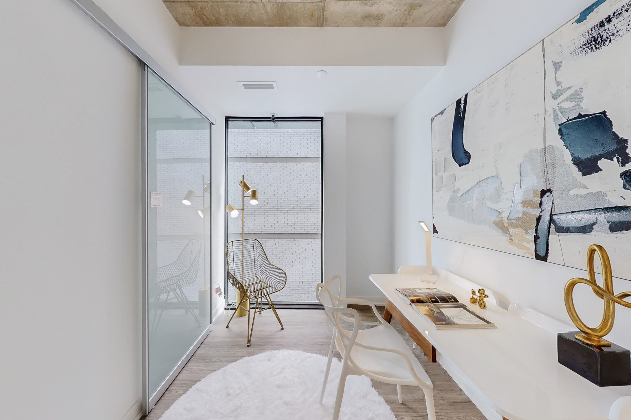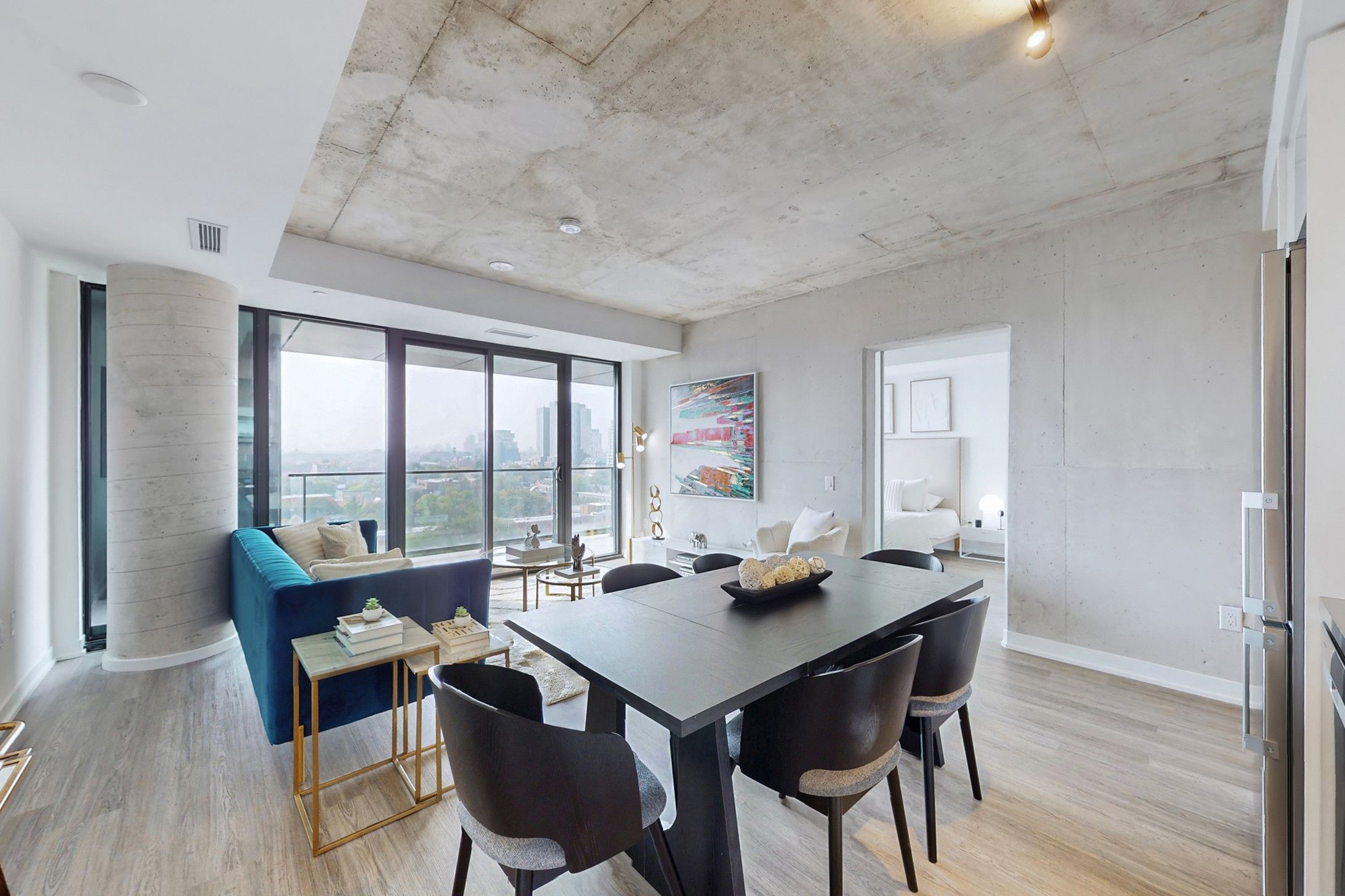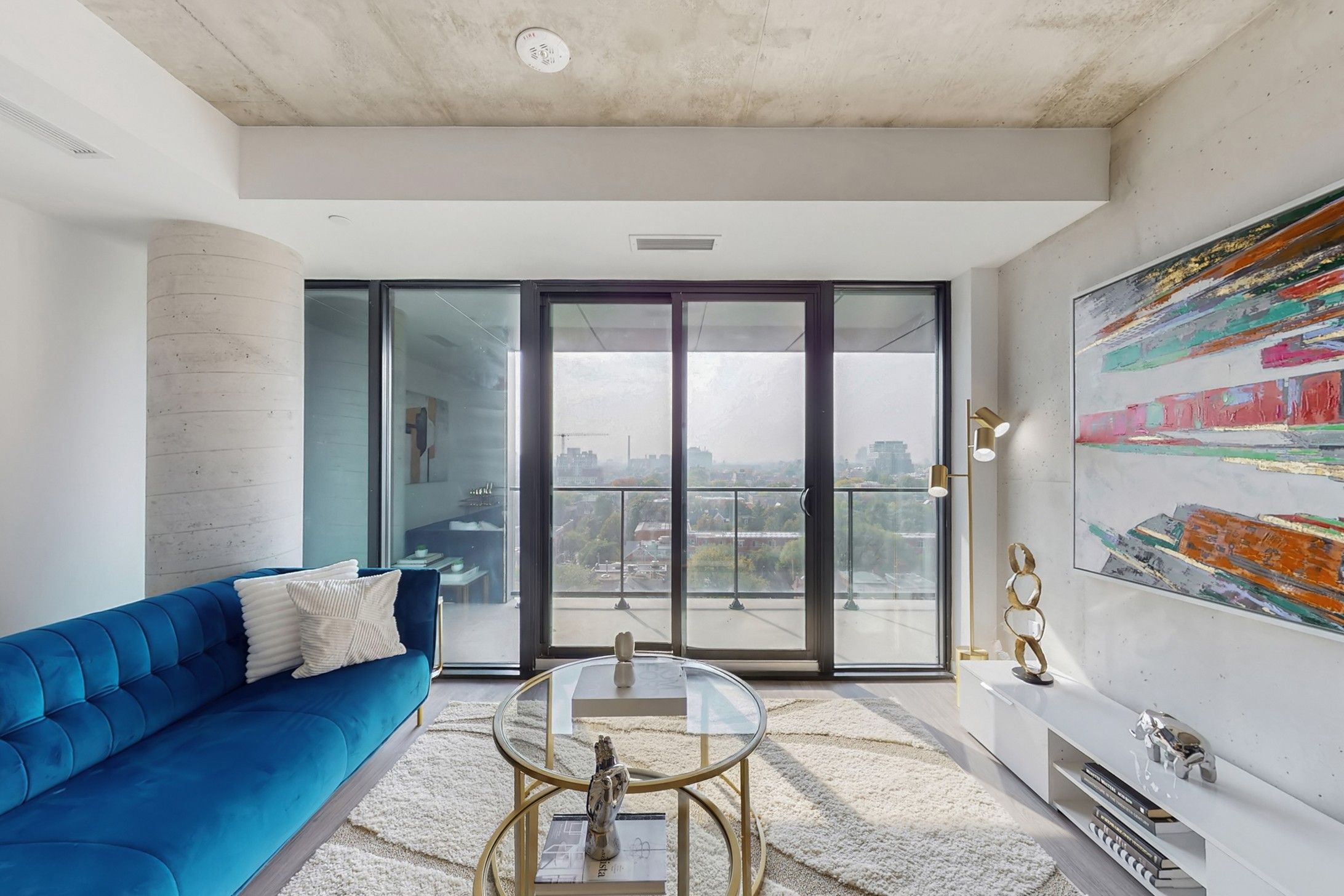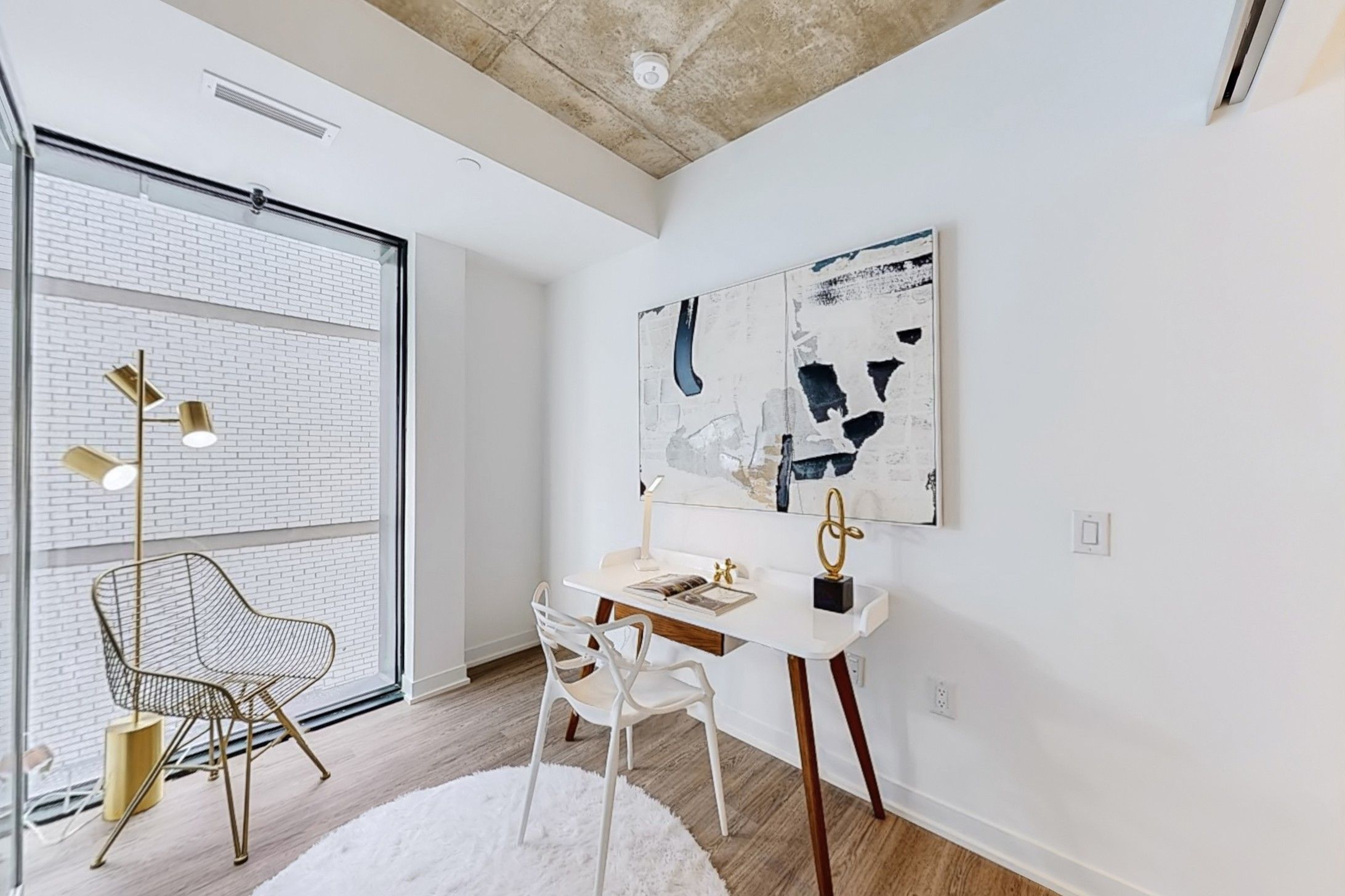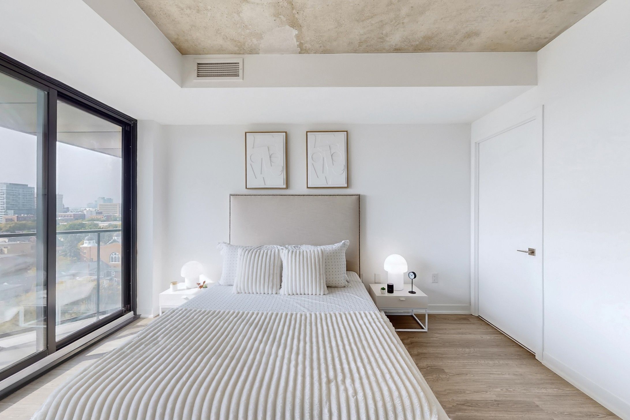 • Floor-to-ceiling windows and 9-foot ceilings create an open feel.