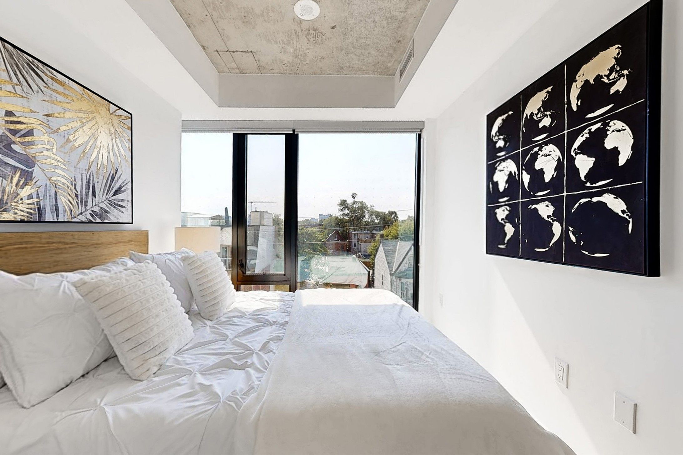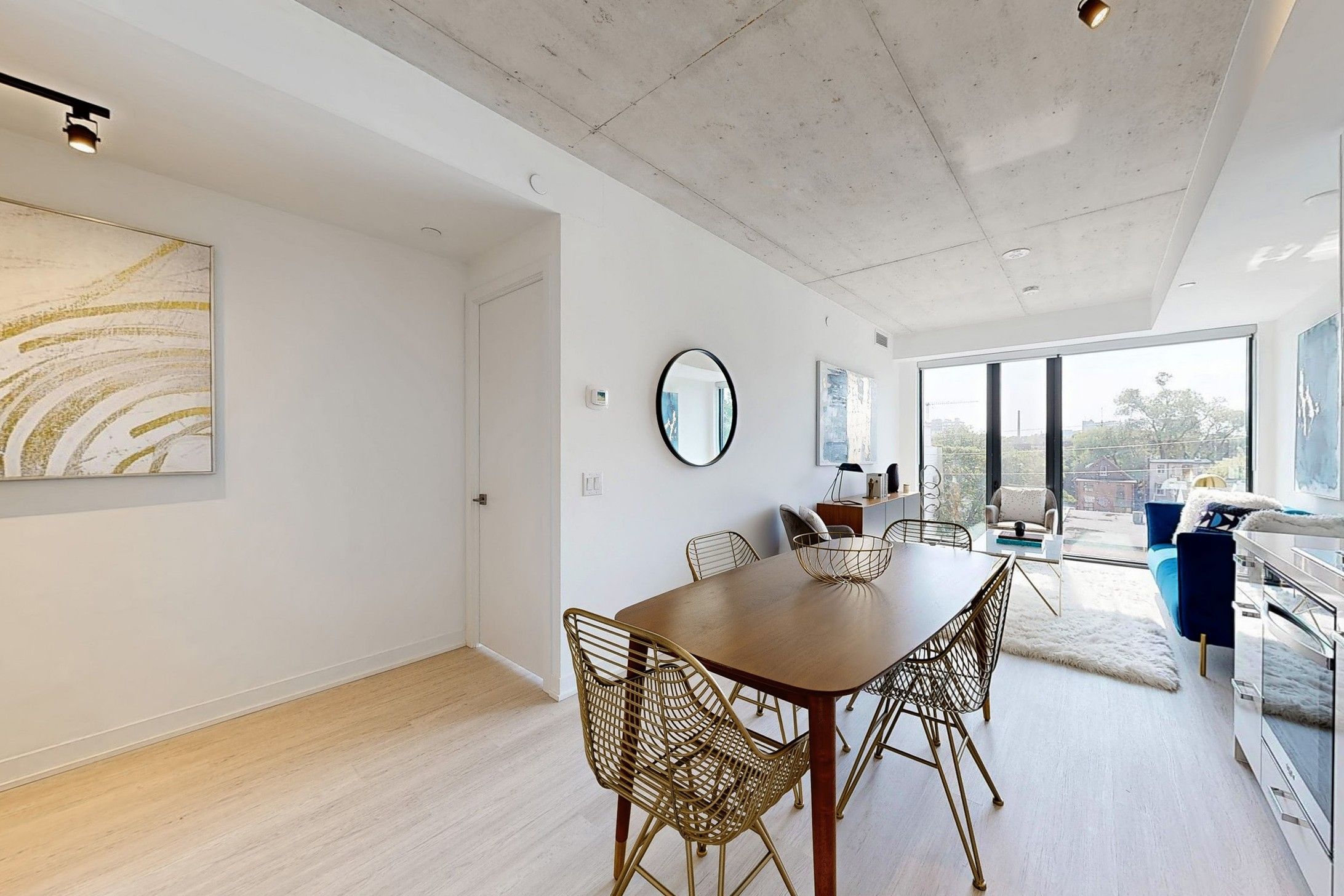 • Floor-to-ceiling windows and 9-foot ceilings create a bright atmosphere.