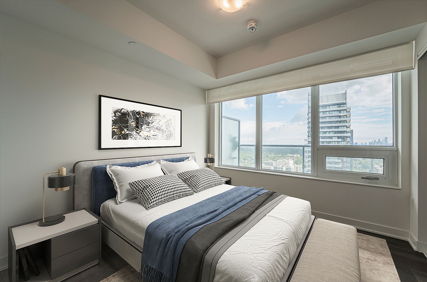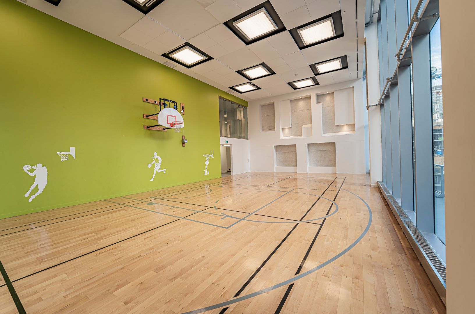 • Modern building amenities like concierge, gym, and outdoor pool.