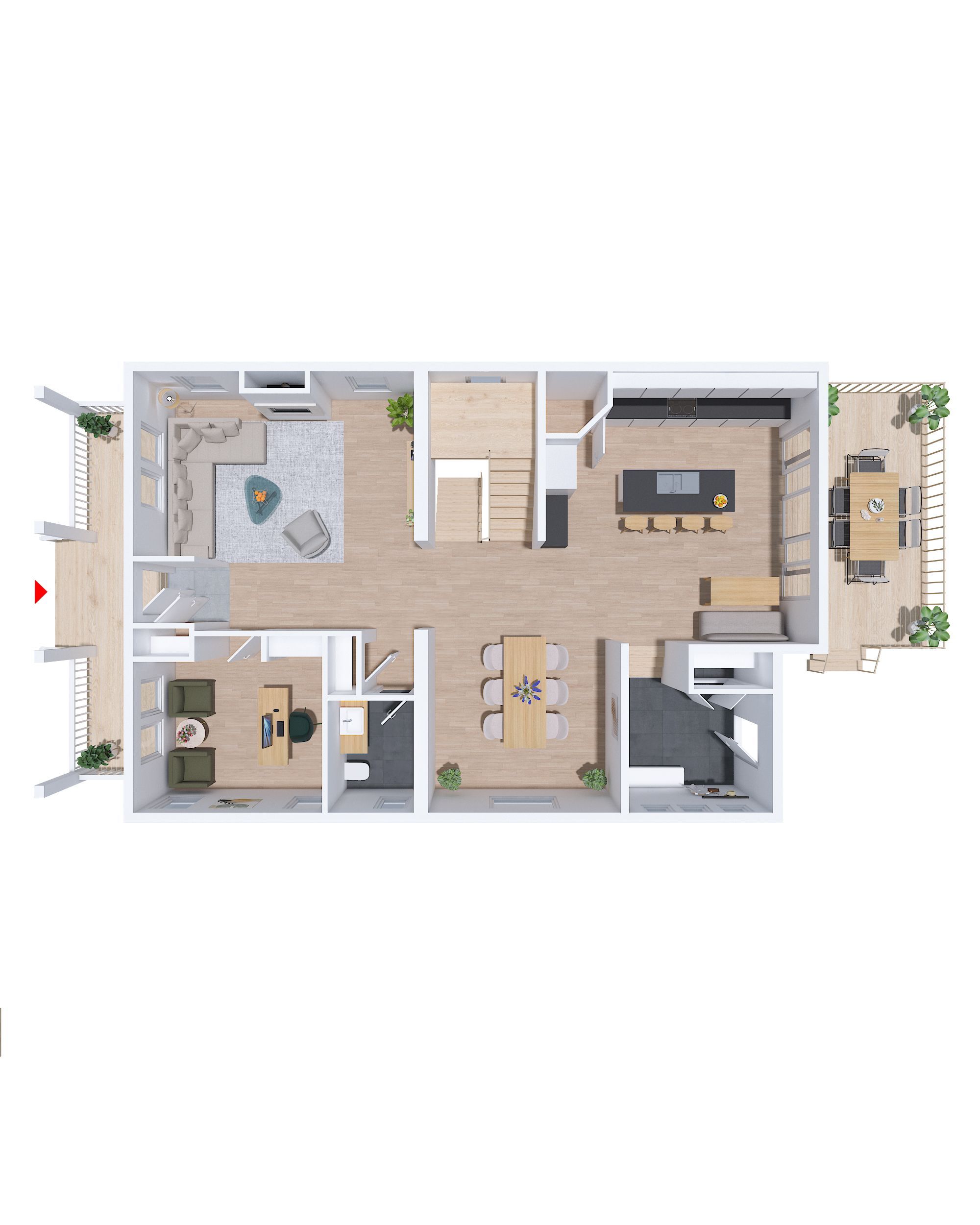 • Three bedrooms, home office, and 2.5 bathrooms for versatile living.