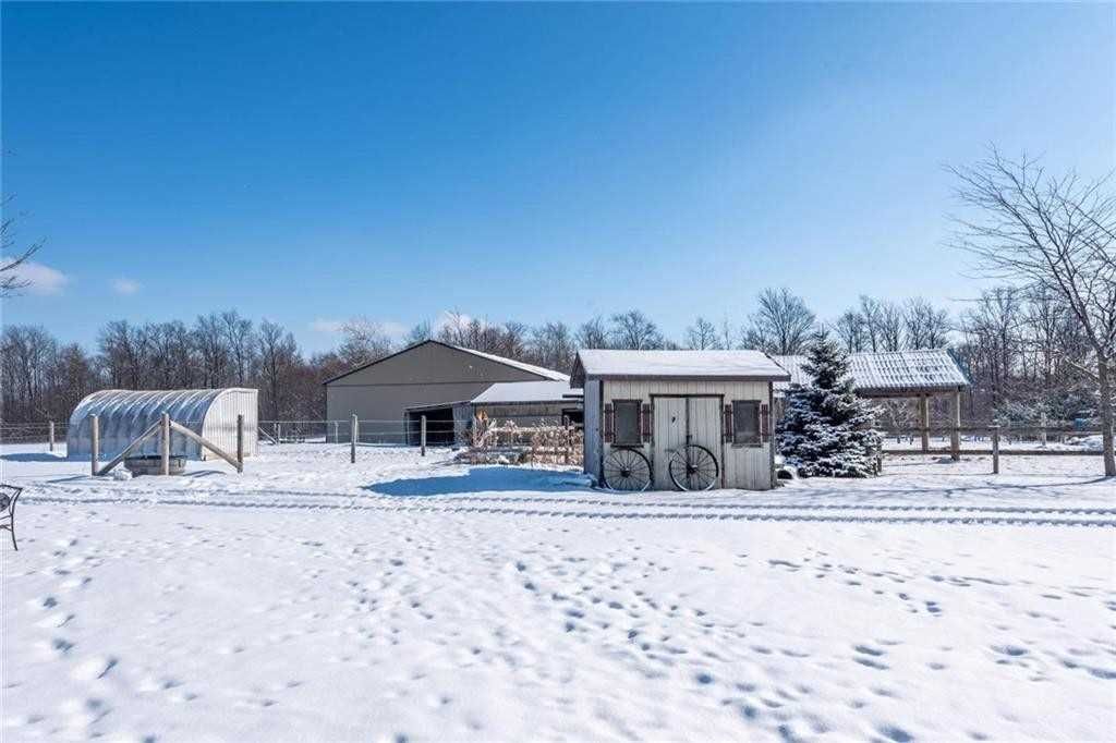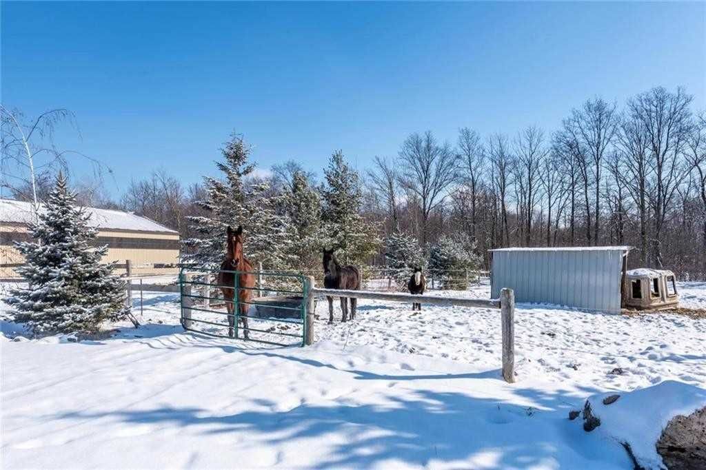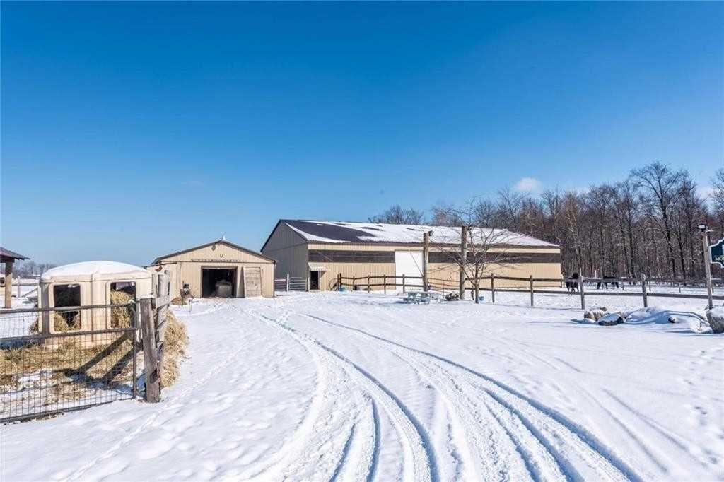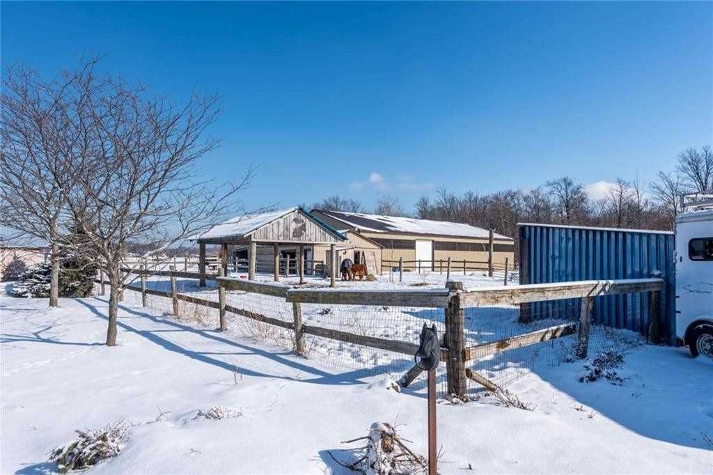 Escape to over 28 acres of picturesque countryside in the heart of grimsby-an exceptional opportunity for equestrian enthusiasts, hobby farmers, or those seeking space, privacy, and lifestyle. This well-maintained property features a blend of open land and over 8 acres of mature bush, along with multiple acres ideal for hay production and expansive turnout areas for horses. The two-storey residence, built in 1998, offers a comfortable and functional layout for family living. Interior features include hardwood flooring, granite countertops, a cozy gas fireplace on the main level, and a wood stove in the basement. Recent upgrades within the past year include a gas furnace, central air conditioning, and a heated garage, providing modern efficiency and year-round comfort. Designed with equestrian use in mind, the property boasts a 60' x 110' indoor riding arena with sand footing, three stalls, and a viewing deck. Two large overhead doors provide seamless access-one leading directly to the pasture and the other to a professionally lit outdoor riding arena with sand base. A secondary stable offers three additional stalls, including a spacious birthing stall. The property is further enhanced by five paddocks with run-in shelters, a steel quonset hut, and a dedicated hay barn. A rare offering combining turnkey equestrian facilities with a beautiful rural setting-ideal for both personal use or income-generating potential.