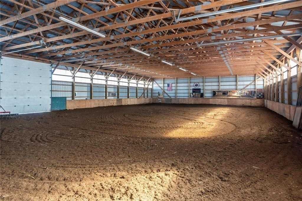 • Indoor riding arena and multiple stalls designed for equestrian activities.