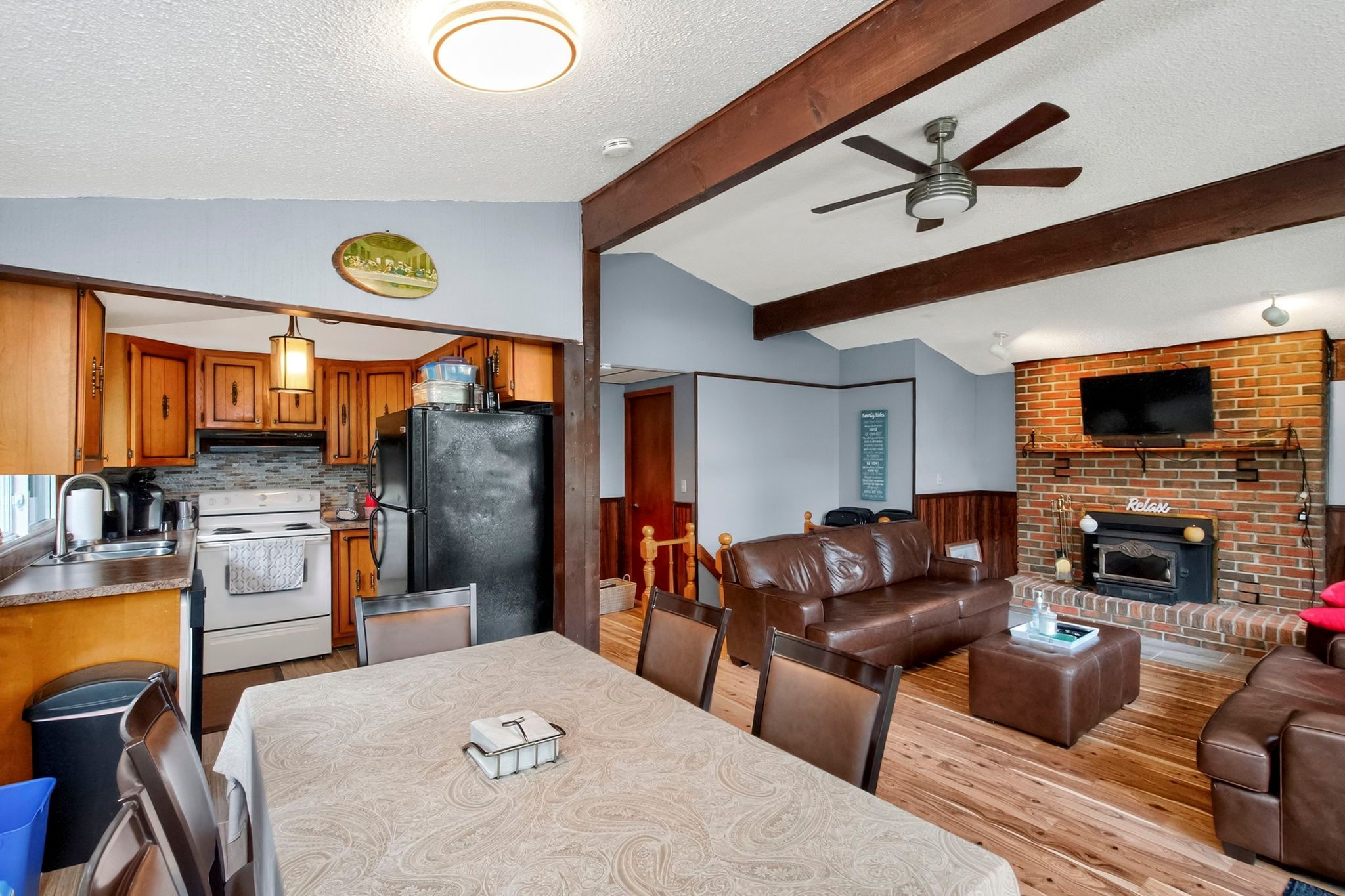 Discover this beautiful 3-bedroom home perfectly situated just moments from the scenic shores of georgian bay. Set on a spacious 92 x 180 ft lot, this property offers exceptional privacy and plenty of room to enjoy both indoor and outdoor living. With over 1,200 sq. Ft. Of well-designed space, the home features two inviting living rooms-ideal for families or professionals looking for a comfortable home office setup. The bright, open kitchen overlooks the backyard and flows seamlessly to a large deck, perfect for entertaining or relaxing outdoors. Additional highlights include in-home laundry, two cozy fireplaces, and a warm, welcoming layout designed for comfort and convenience. Located just steps from beaches and trails, and only a short drive to penetanguishene and midland, you'll have easy access to all the amenities you need.