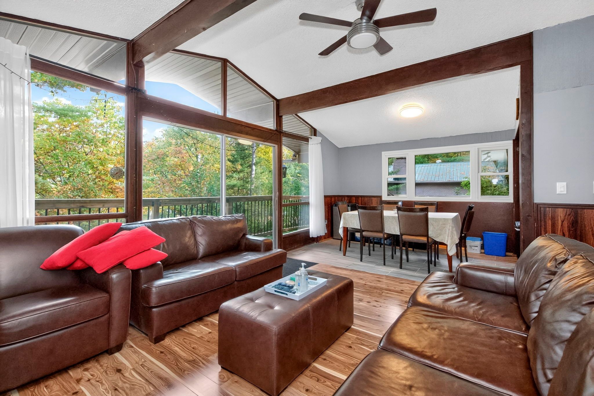 • Bright, open kitchen leads to a large deck for entertaining.