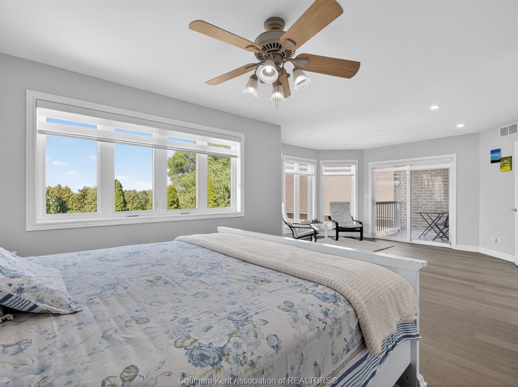 • Scenic views from the primary suite with a balcony overlooking the golf course.
