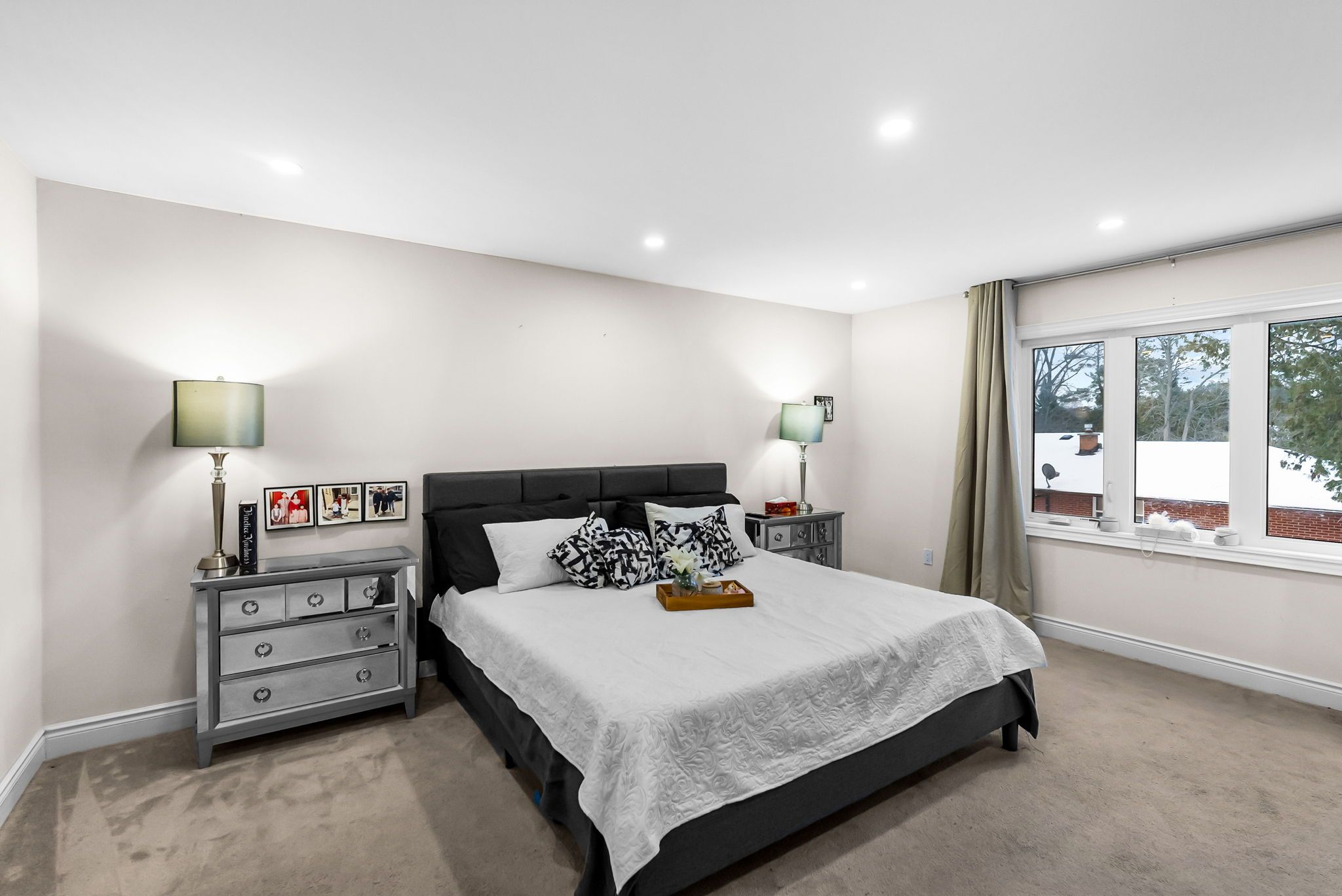 • Private beach access and steps from De La Salle Park.