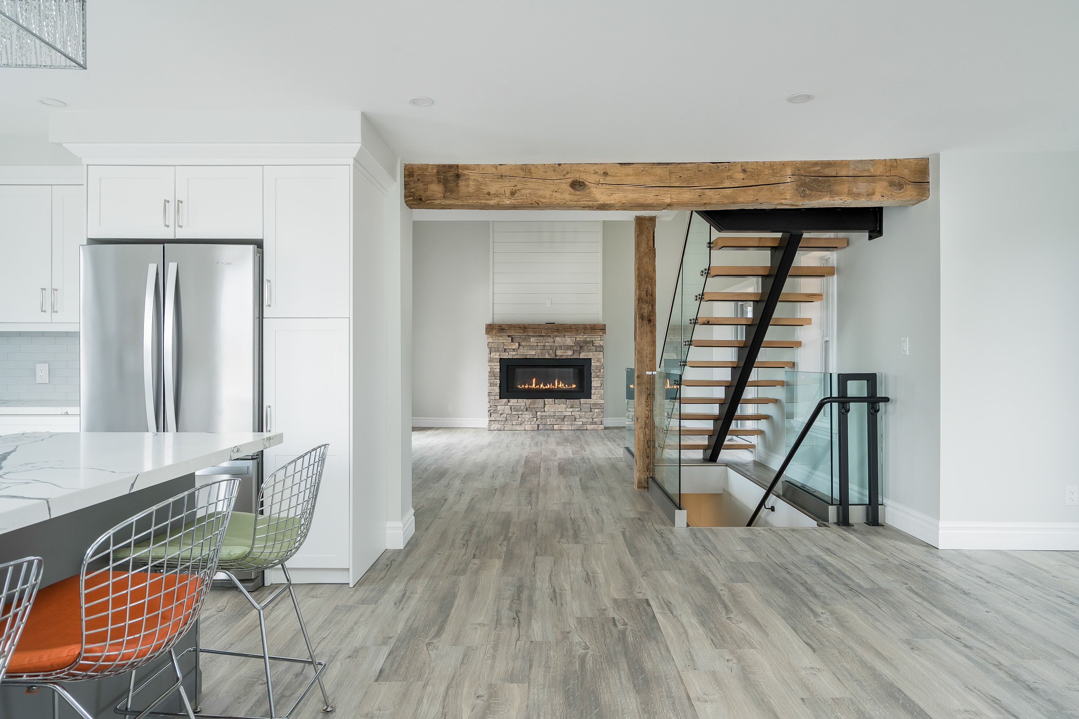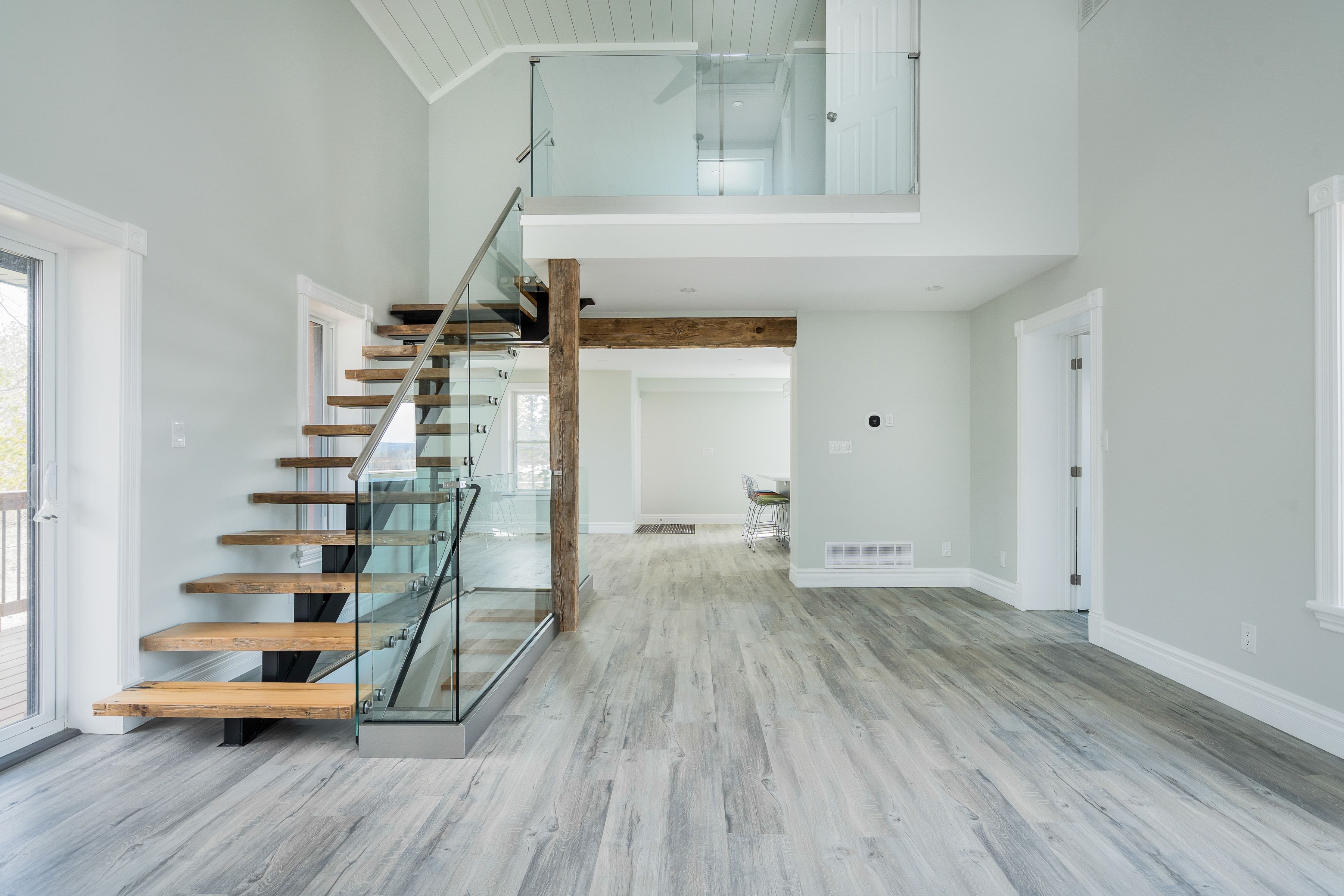 • Open-concept main level features cathedral ceilings and abundant natural light.