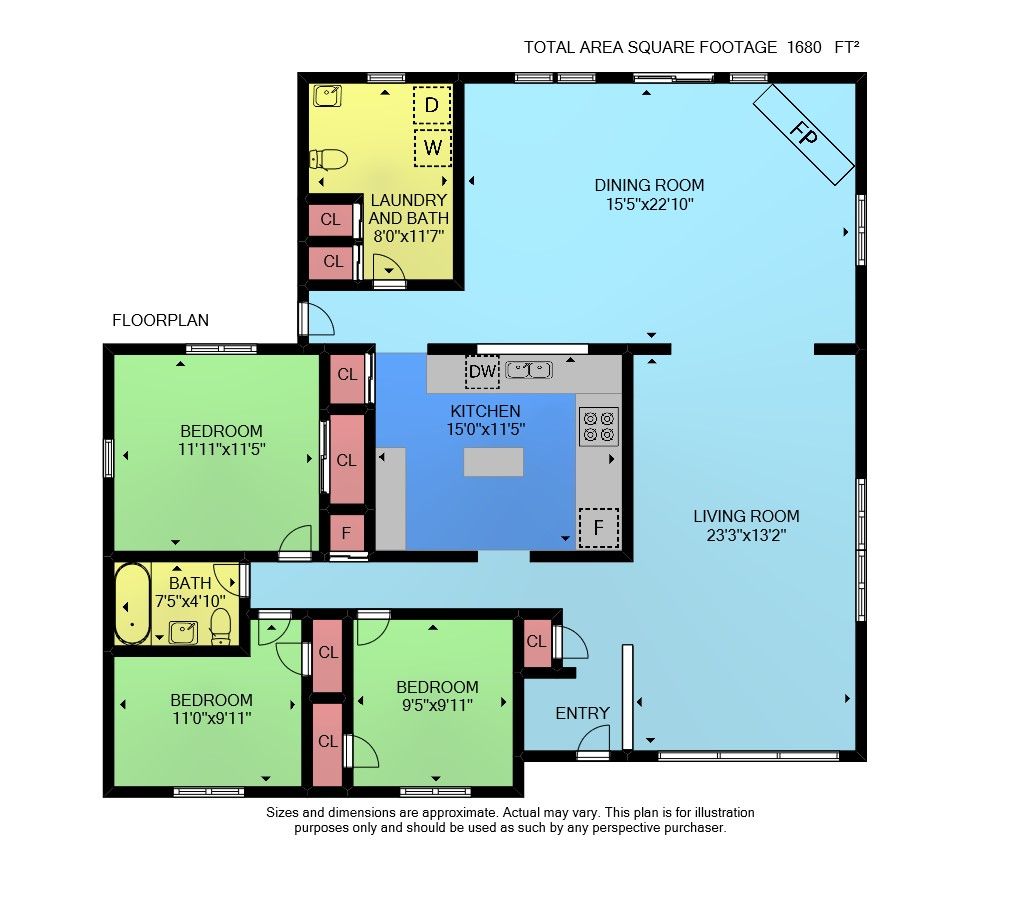 • Open concept living/dining space with hardwood floors and a gas fireplace.