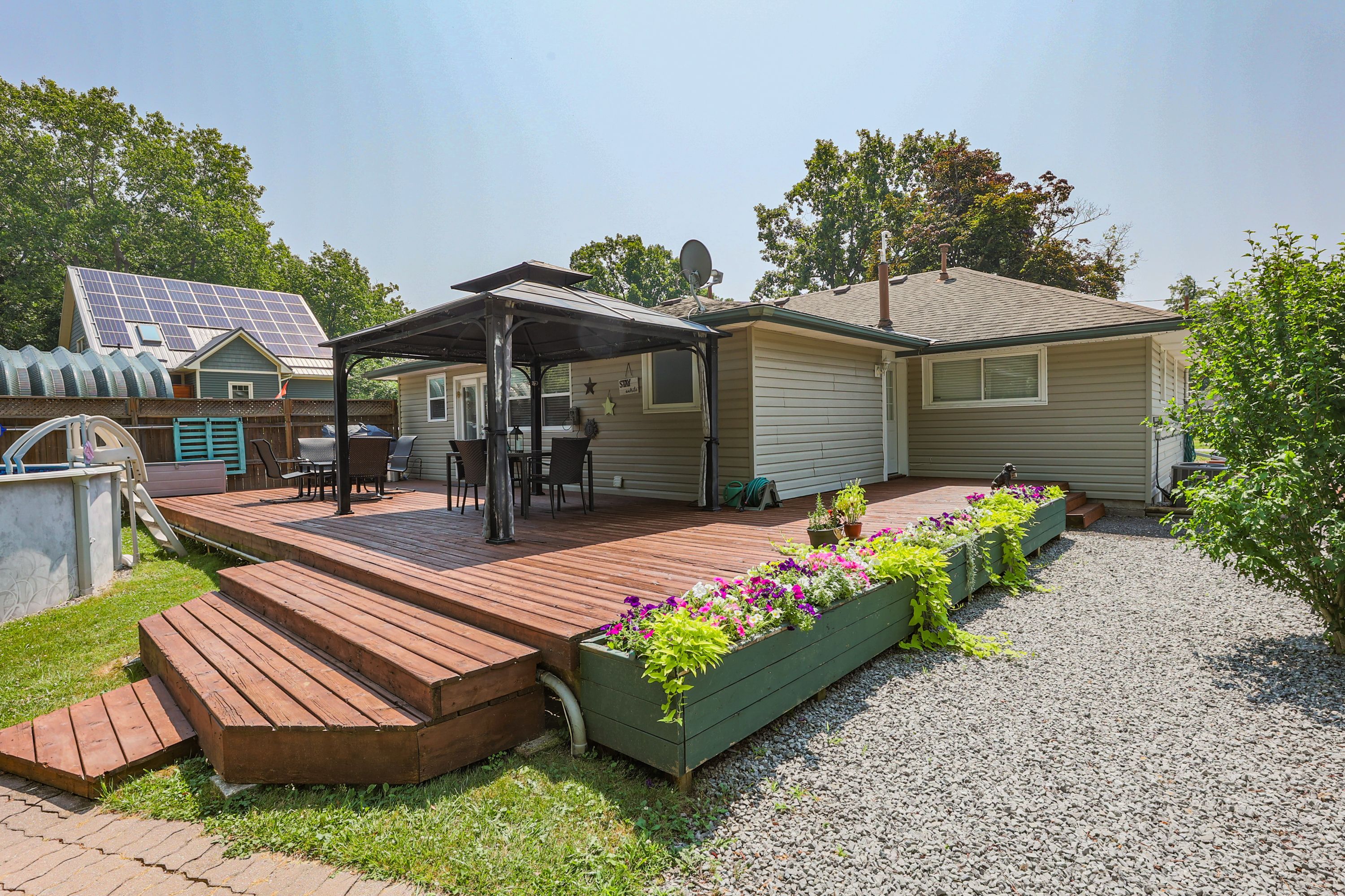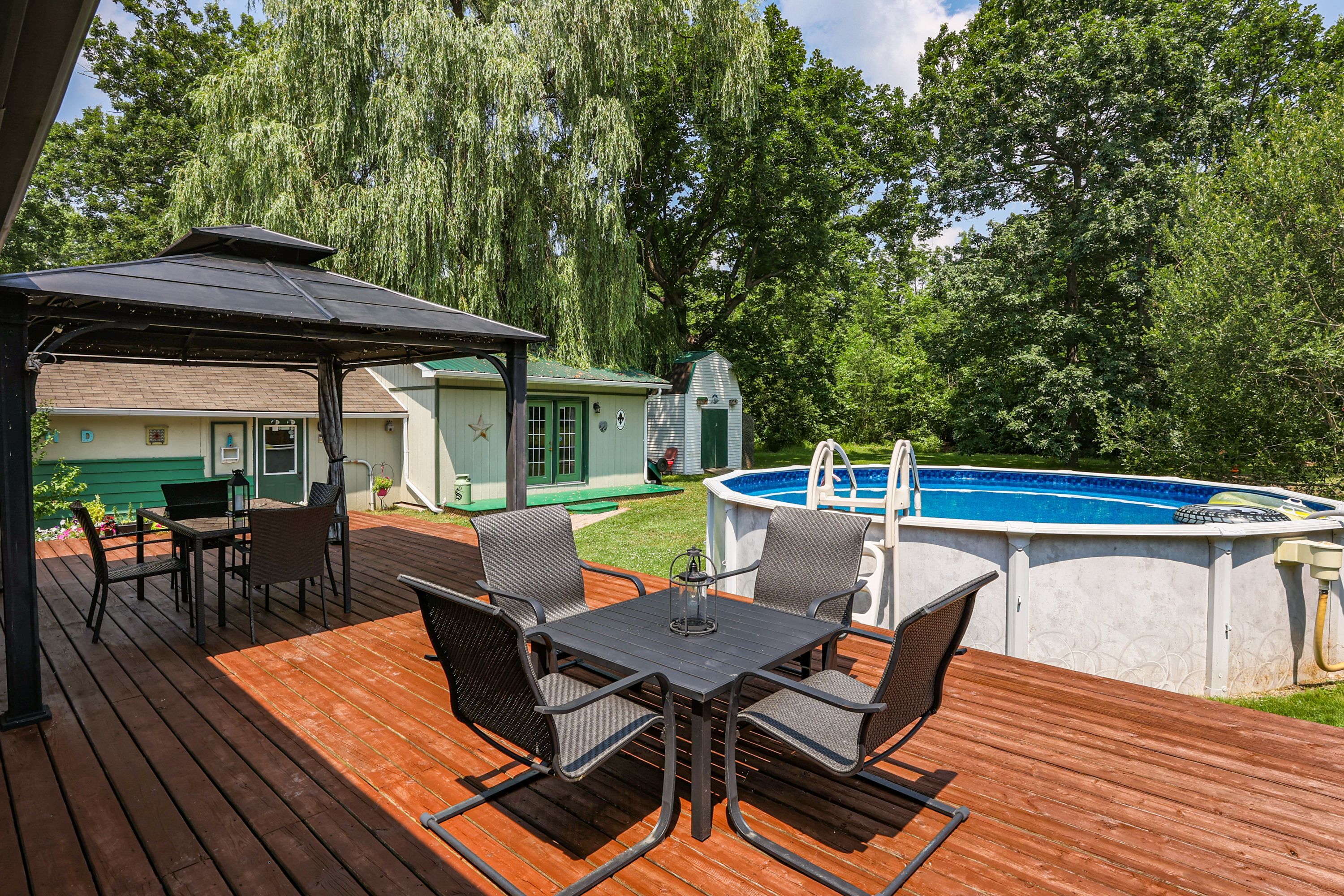 • Private backyard oasis featuring a deck, above-ground pool, and gazebo.
