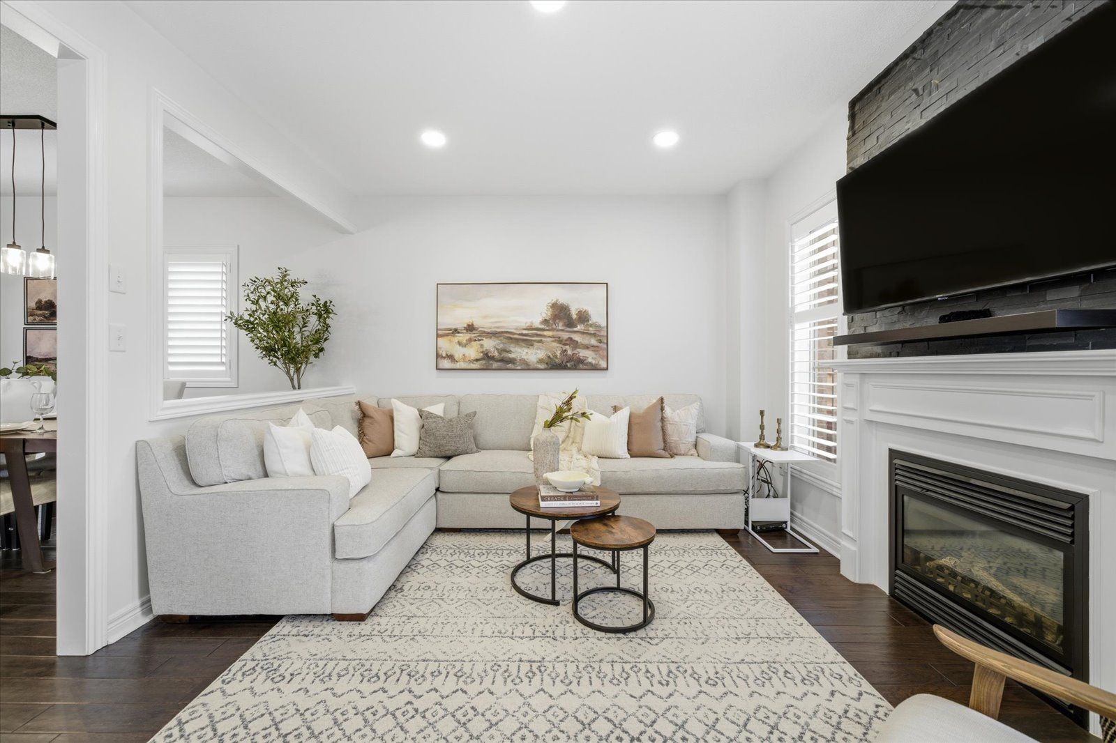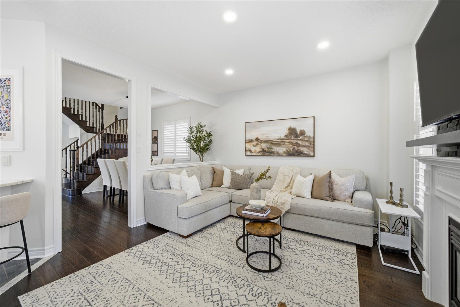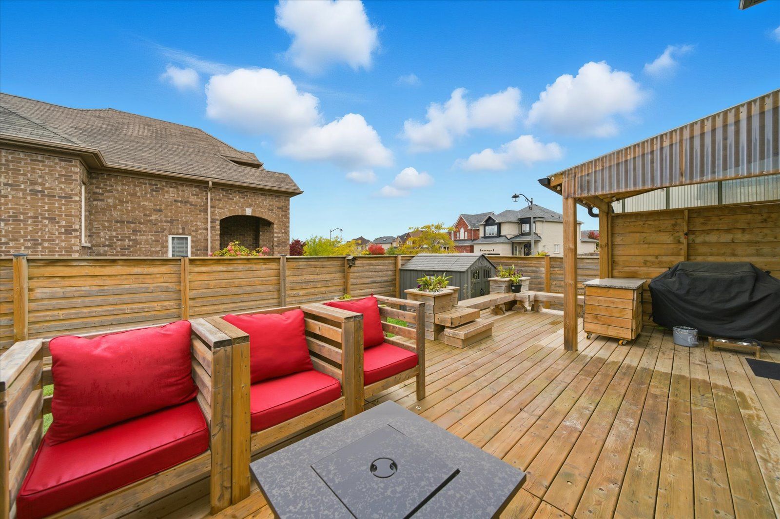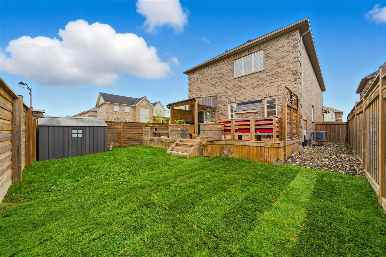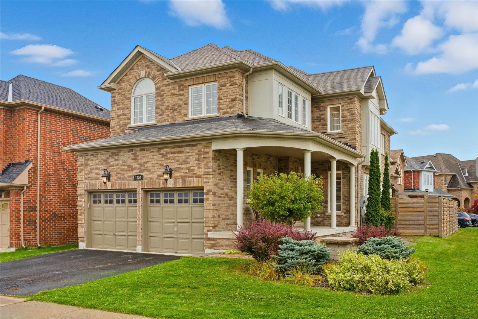 Welcome to 1954 riverton street, a beautiful corner lot home built by greycrest homes and ideally situated in one of north oshawa's best pockets. With over 3000 total sq ft, this property stands out with its elegant curb appeal, sun-filled interiors, and modern upgrades throughout. Step inside to discover an open-concept layout featuring soaring 18 ft cathedral ceilings that create a striking first impression. Hardwood floors flow seamlessly throughout the home, while 9 ft ceilings on the main level enhances the airy, spacious feel. The abundance of windows along the north side floods every room with natural light, recently upgraded with california shutters, creating a warm and inviting atmosphere. The main floor offers a perfect balance of function and style - featuring a large formal dining room ideal for family gatherings and special occasions. Complete with a cozy gas fireplace in the living room and open sightlines to the modern kitchen, making it perfect for both family time and entertaining. From the kitchen, step out to your custom-built deck, complete with built-in furniture, a fire table, and ample storage in the large shed - the perfect outdoor retreat for relaxing or hosting gatherings. Upstairs, you'll find four generously sized bedrooms, including a luxurious primary suite with a 5-piece ensuite, featuring a corner soaking tub and separate shower. The professionally finished basement offers even more living space with a modern open-concept recreation room, a sleek dry bar, and a rough-in bath ready for your personal touch. Ideal for a home theatre, games room. Located just 2 minutes away from top-rated schools and parks. Conveniently situated close to shopping, and major highways, this home combines elegance, comfort, and convenience in one perfect package.