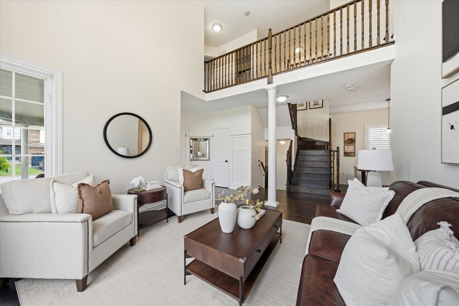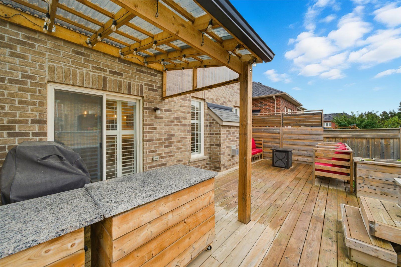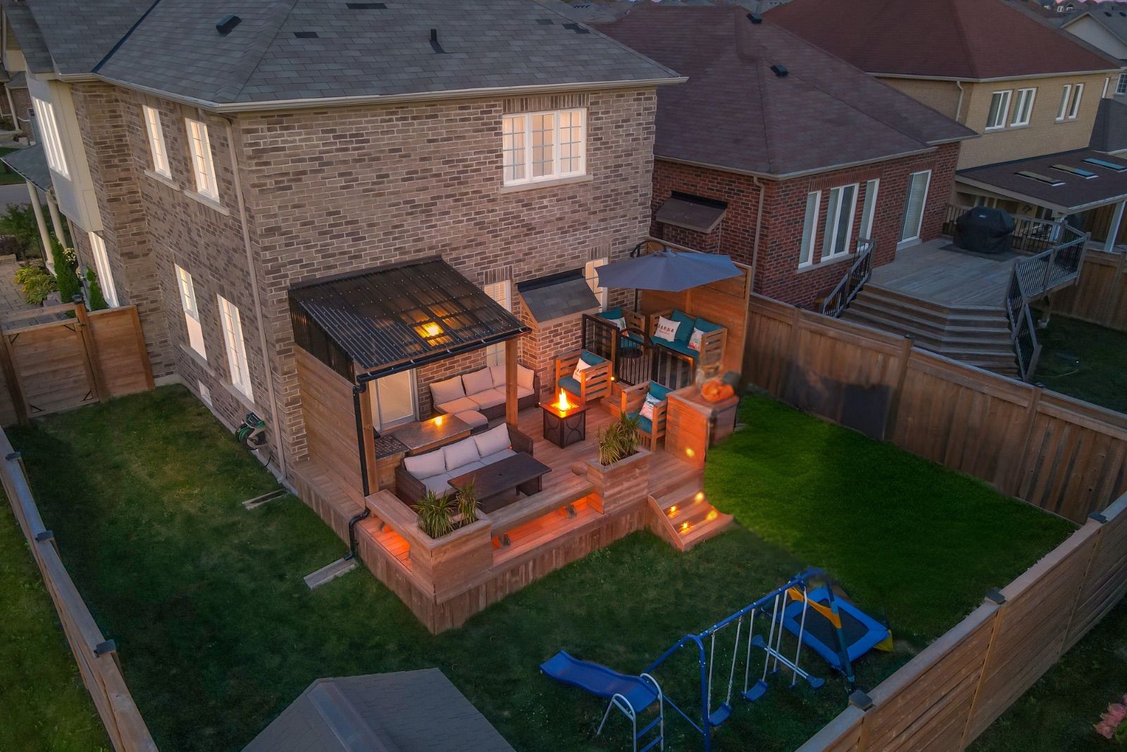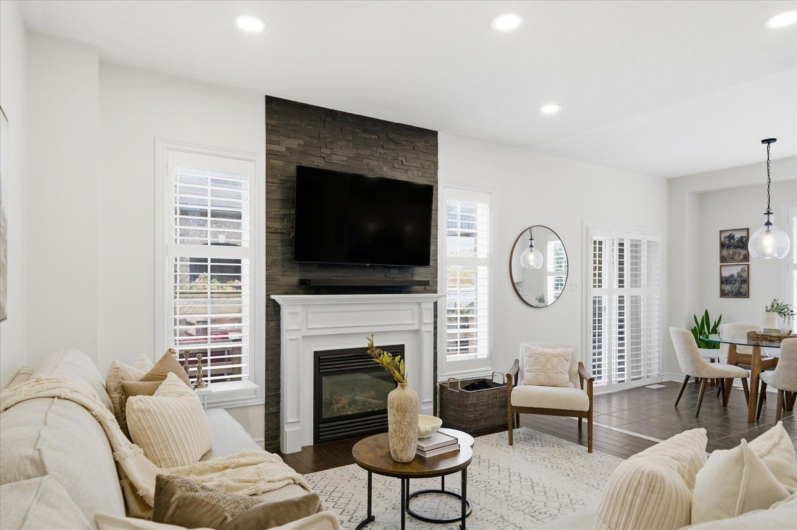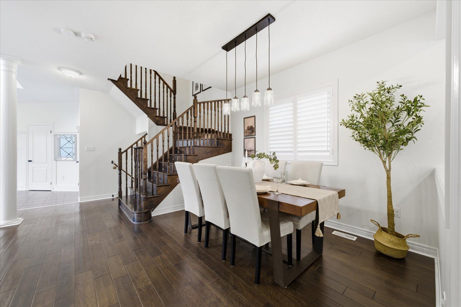 Welcome to 1954 riverton street, a beautiful corner lot home built by greycrest homes and ideally situated in one of north oshawa's best pockets. With over 3000 total sq ft, this property stands out with its elegant curb appeal, sun-filled interiors, and modern upgrades throughout. Step inside to discover an open-concept layout featuring soaring 18 ft cathedral ceilings that create a striking first impression. Hardwood floors flow seamlessly throughout the home, while 9 ft ceilings on the main level enhances the airy, spacious feel. The abundance of windows along the north side floods every room with natural light, recently upgraded with california shutters, creating a warm and inviting atmosphere. The main floor offers a perfect balance of function and style - featuring a large formal dining room ideal for family gatherings and special occasions. Complete with a cozy gas fireplace in the living room and open sightlines to the modern kitchen, making it perfect for both family time and entertaining. From the kitchen, step out to your custom-built deck, complete with built-in furniture, a fire table, and ample storage in the large shed - the perfect outdoor retreat for relaxing or hosting gatherings. Upstairs, you'll find four generously sized bedrooms, including a luxurious primary suite with a 5-piece ensuite, featuring a corner soaking tub and separate shower. The professionally finished basement offers even more living space with a modern open-concept recreation room, a sleek dry bar, and a rough-in bath ready for your personal touch. Ideal for a home theatre, games room. Located just 2 minutes away from top-rated schools and parks. Conveniently situated close to shopping, and major highways, this home combines elegance, comfort, and convenience in one perfect package.