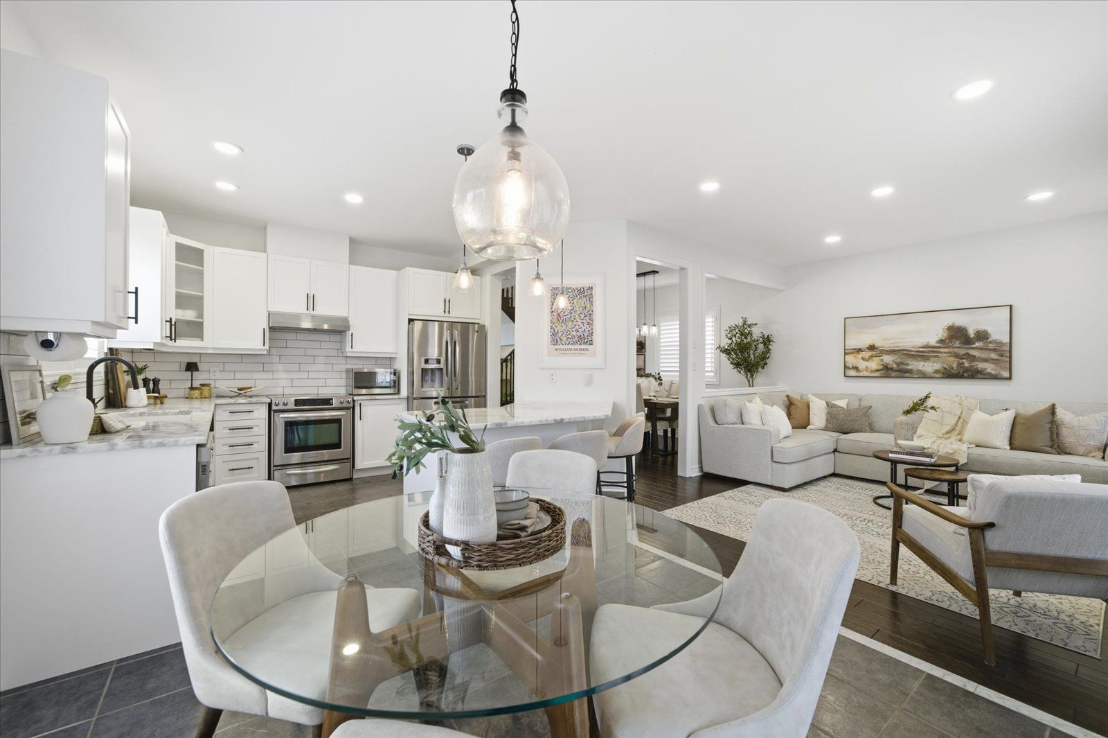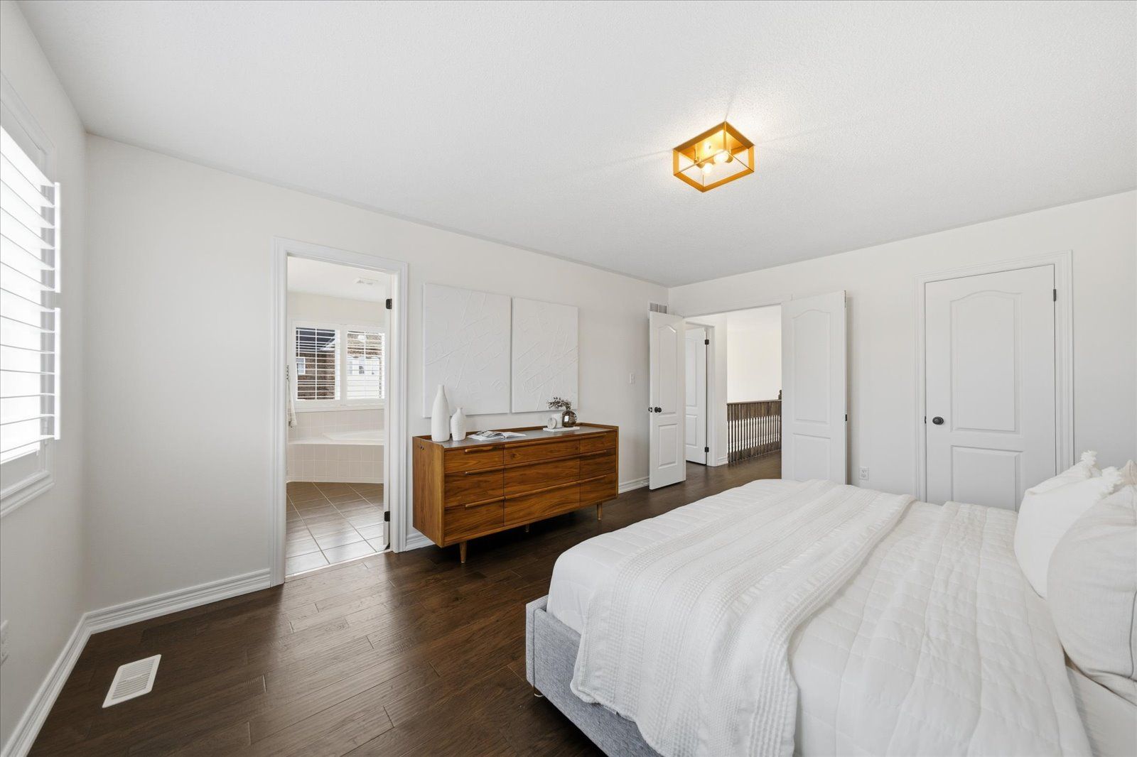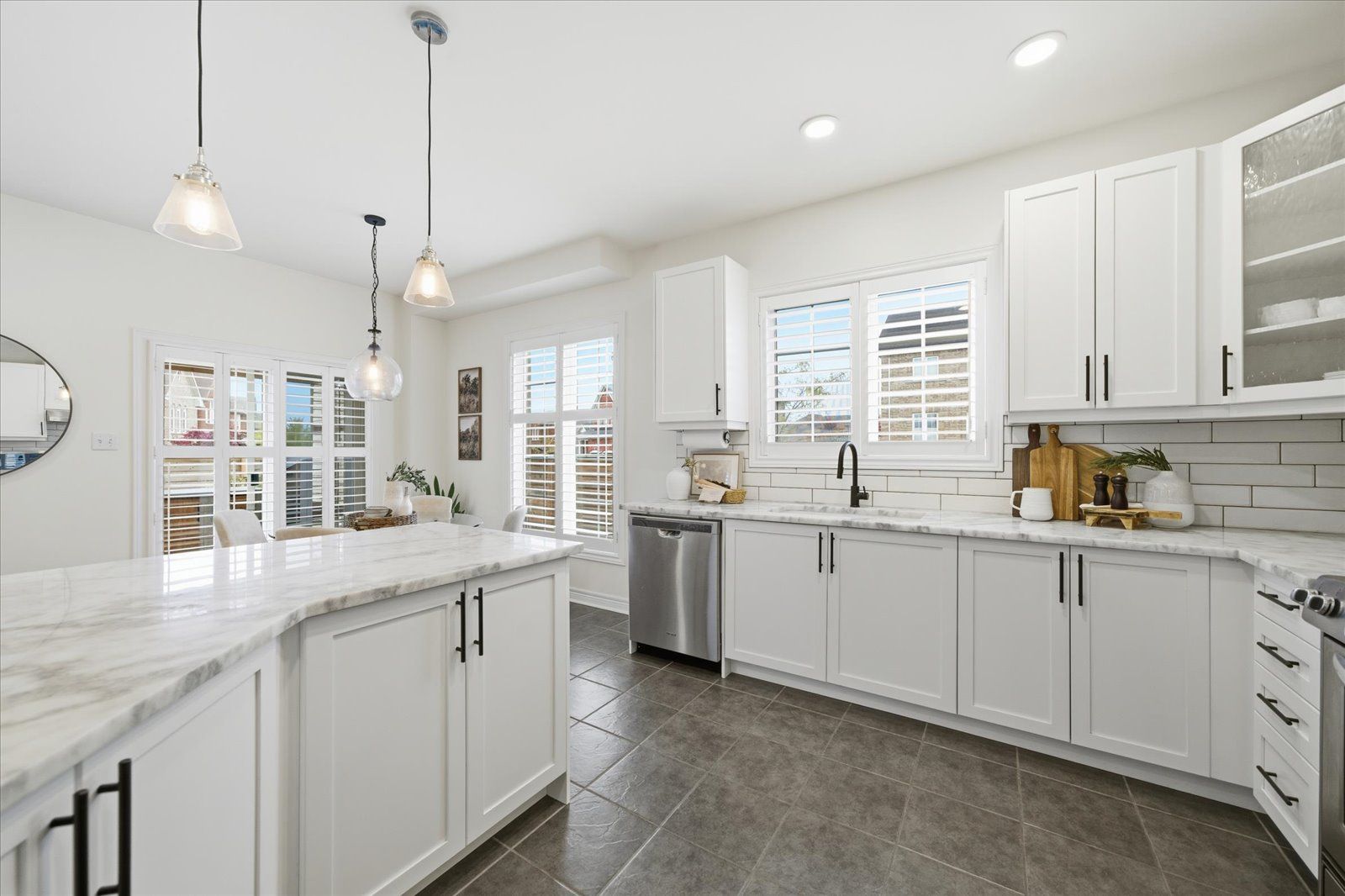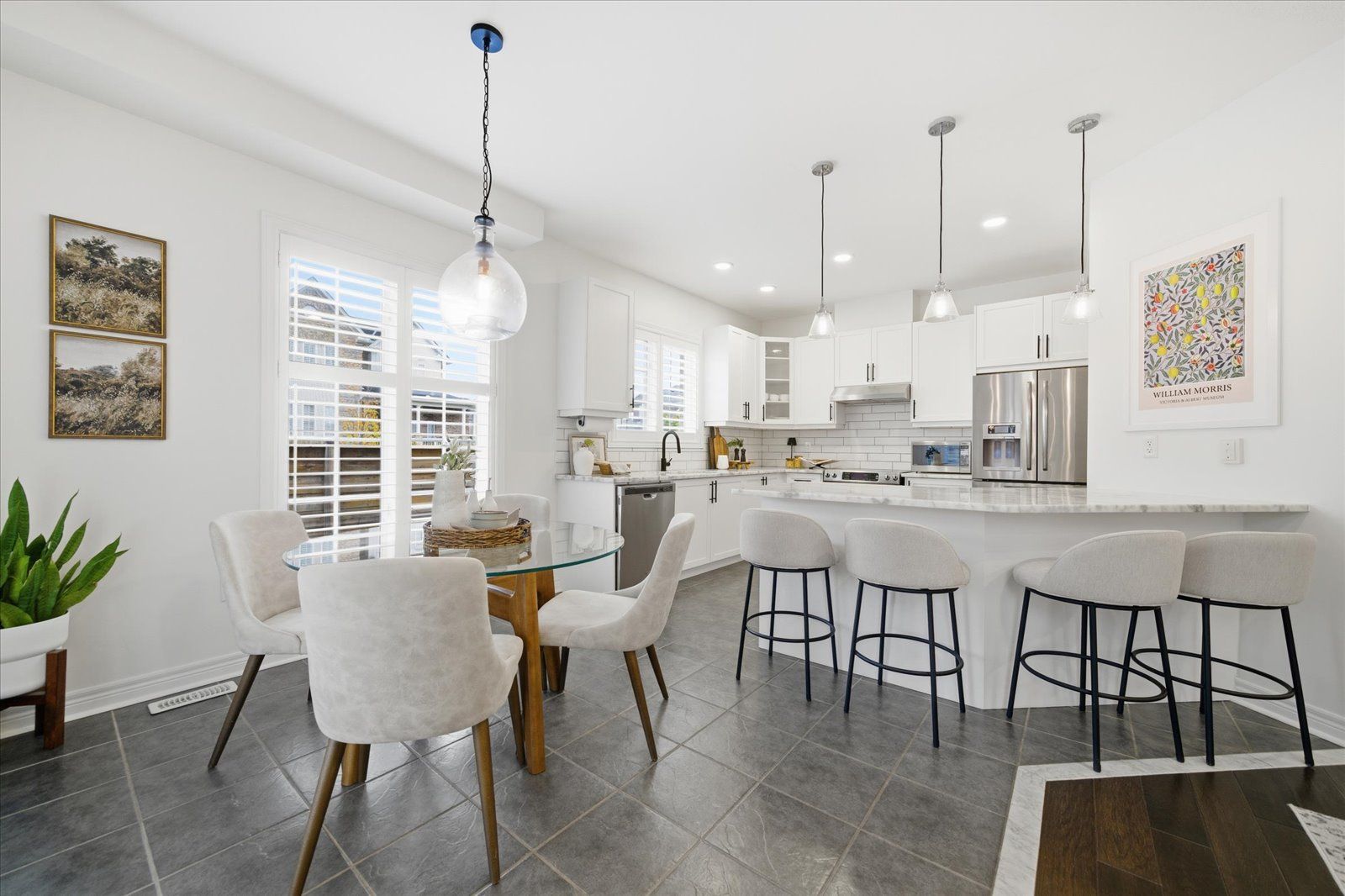 Welcome to 1954 riverton street, a beautiful corner lot home built by greycrest homes and ideally situated in one of north oshawa's best pockets. With over 3000 total sq ft, this property stands out with its elegant curb appeal, sun-filled interiors, and modern upgrades throughout. Step inside to discover an open-concept layout featuring soaring 18 ft cathedral ceilings that create a striking first impression. Hardwood floors flow seamlessly throughout the home, while 9 ft ceilings on the main level enhances the airy, spacious feel. The abundance of windows along the north side floods every room with natural light, recently upgraded with california shutters, creating a warm and inviting atmosphere. The main floor offers a perfect balance of function and style - featuring a large formal dining room ideal for family gatherings and special occasions. Complete with a cozy gas fireplace in the living room and open sightlines to the modern kitchen, making it perfect for both family time and entertaining. From the kitchen, step out to your custom-built deck, complete with built-in furniture, a fire table, and ample storage in the large shed - the perfect outdoor retreat for relaxing or hosting gatherings. Upstairs, you'll find four generously sized bedrooms, including a luxurious primary suite with a 5-piece ensuite, featuring a corner soaking tub and separate shower. The professionally finished basement offers even more living space with a modern open-concept recreation room, a sleek dry bar, and a rough-in bath ready for your personal touch. Ideal for a home theatre, games room. Located just 2 minutes away from top-rated schools and parks. Conveniently situated close to shopping, and major highways, this home combines elegance, comfort, and convenience in one perfect package.