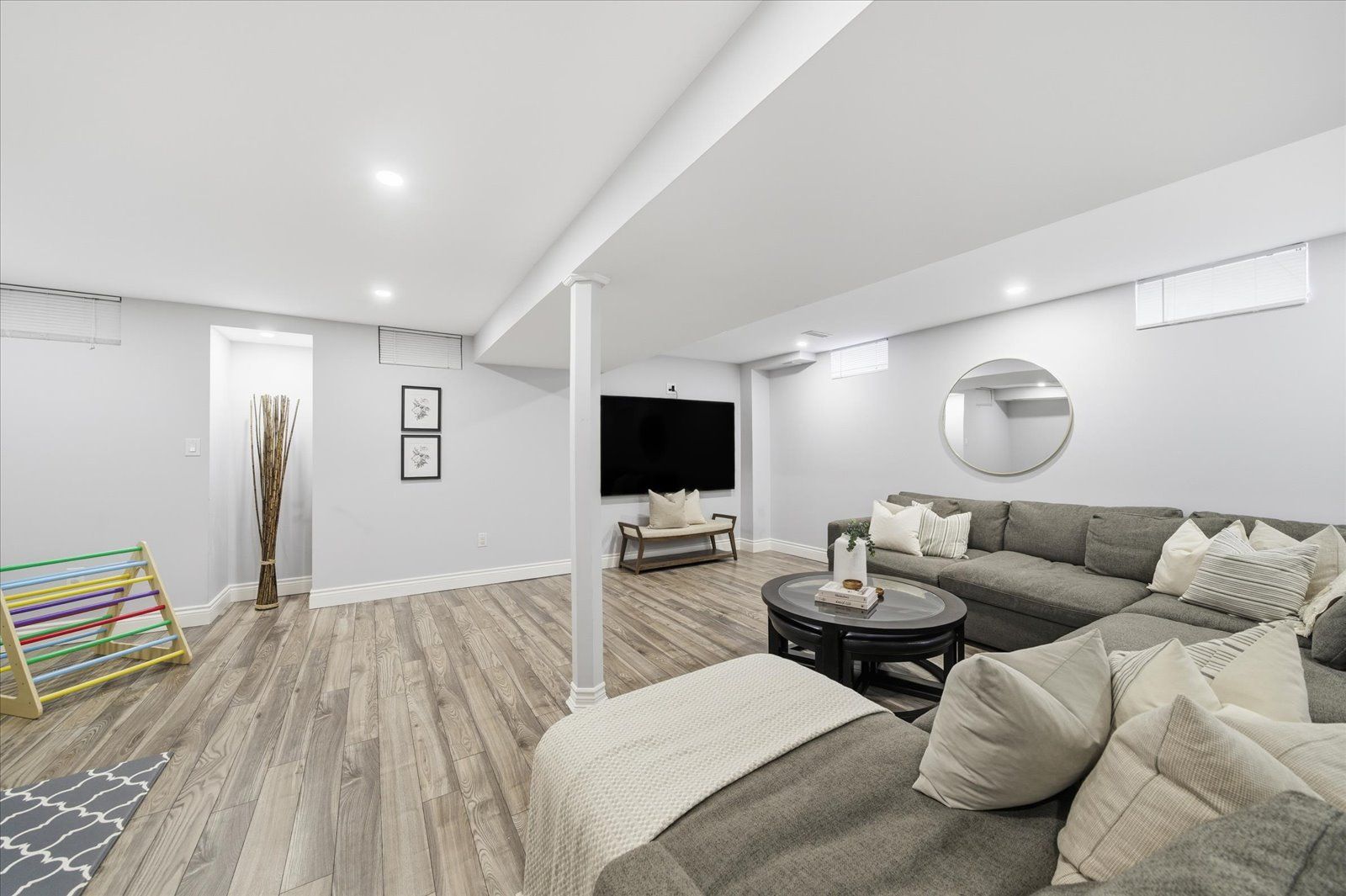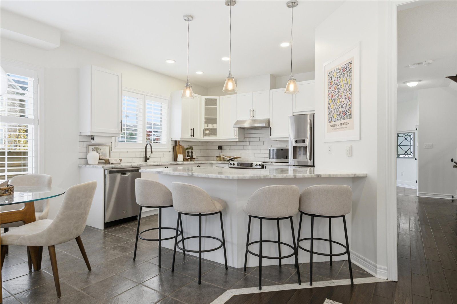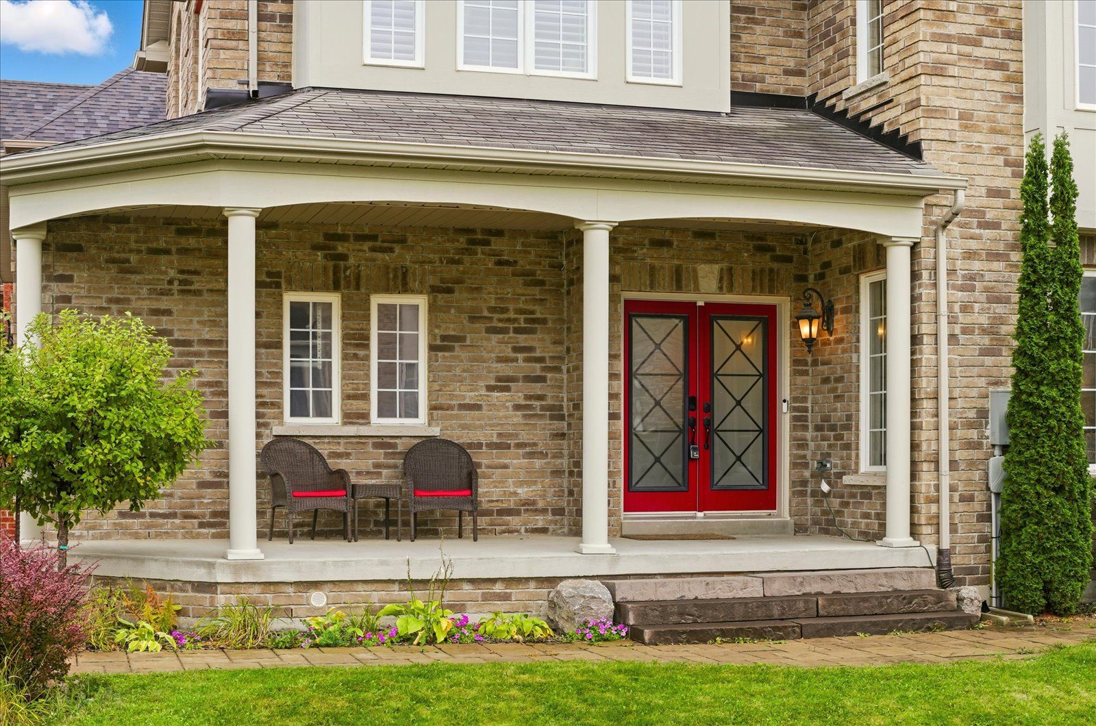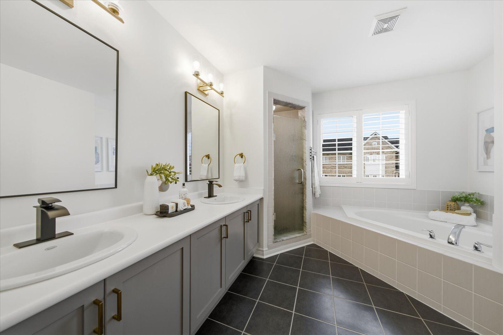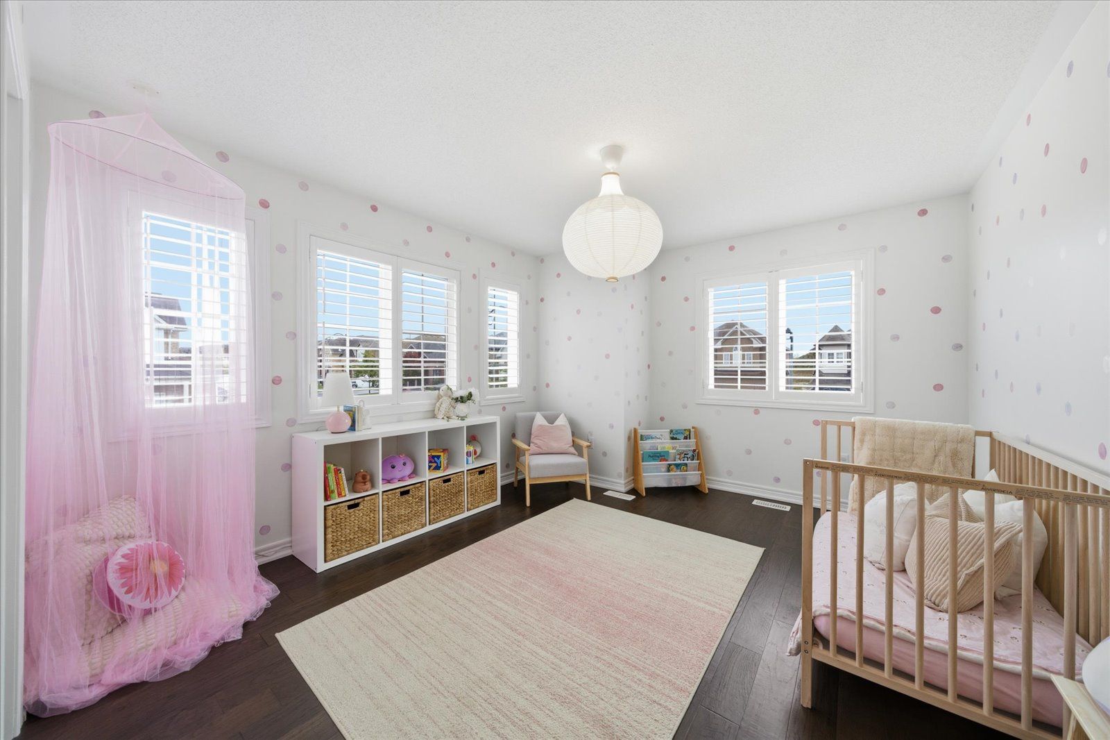 Welcome to 1954 riverton street, a beautiful corner lot home built by greycrest homes and ideally situated in one of north oshawa's best pockets. With over 3000 total sq ft, this property stands out with its elegant curb appeal, sun-filled interiors, and modern upgrades throughout. Step inside to discover an open-concept layout featuring soaring 18 ft cathedral ceilings that create a striking first impression. Hardwood floors flow seamlessly throughout the home, while 9 ft ceilings on the main level enhances the airy, spacious feel. The abundance of windows along the north side floods every room with natural light, recently upgraded with california shutters, creating a warm and inviting atmosphere. The main floor offers a perfect balance of function and style - featuring a large formal dining room ideal for family gatherings and special occasions. Complete with a cozy gas fireplace in the living room and open sightlines to the modern kitchen, making it perfect for both family time and entertaining. From the kitchen, step out to your custom-built deck, complete with built-in furniture, a fire table, and ample storage in the large shed - the perfect outdoor retreat for relaxing or hosting gatherings. Upstairs, you'll find four generously sized bedrooms, including a luxurious primary suite with a 5-piece ensuite, featuring a corner soaking tub and separate shower. The professionally finished basement offers even more living space with a modern open-concept recreation room, a sleek dry bar, and a rough-in bath ready for your personal touch. Ideal for a home theatre, games room. Located just 2 minutes away from top-rated schools and parks. Conveniently situated close to shopping, and major highways, this home combines elegance, comfort, and convenience in one perfect package.