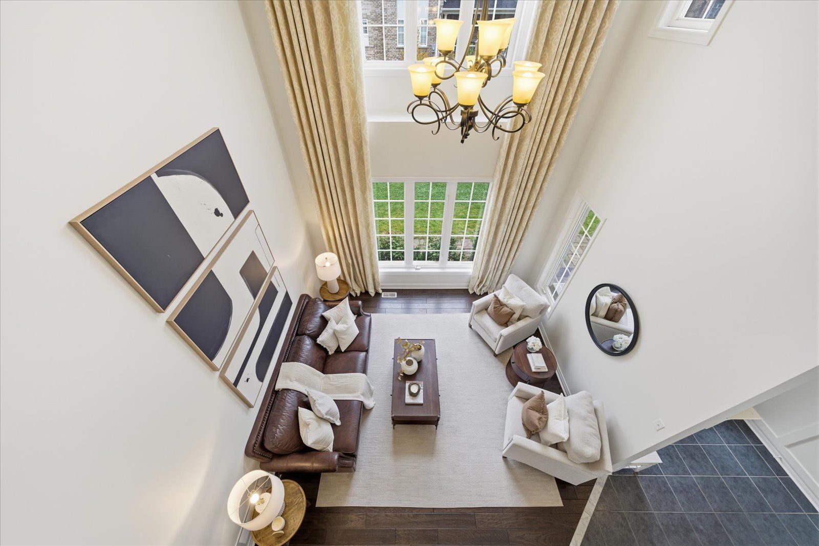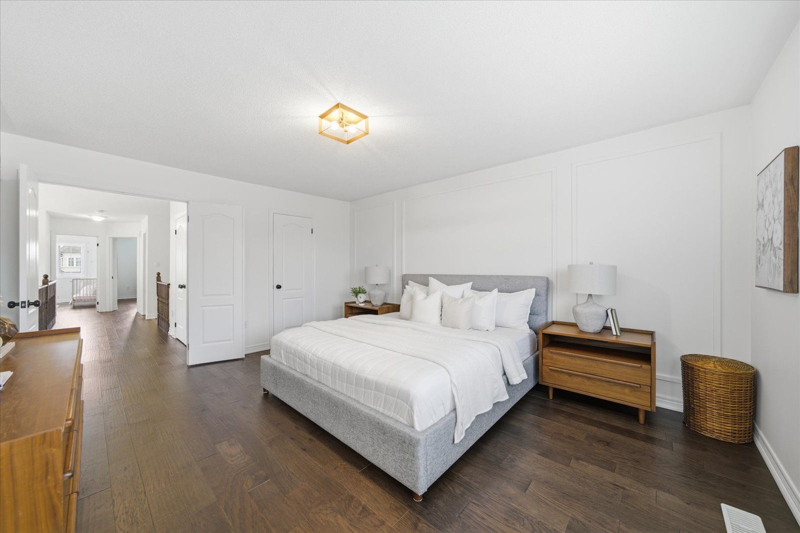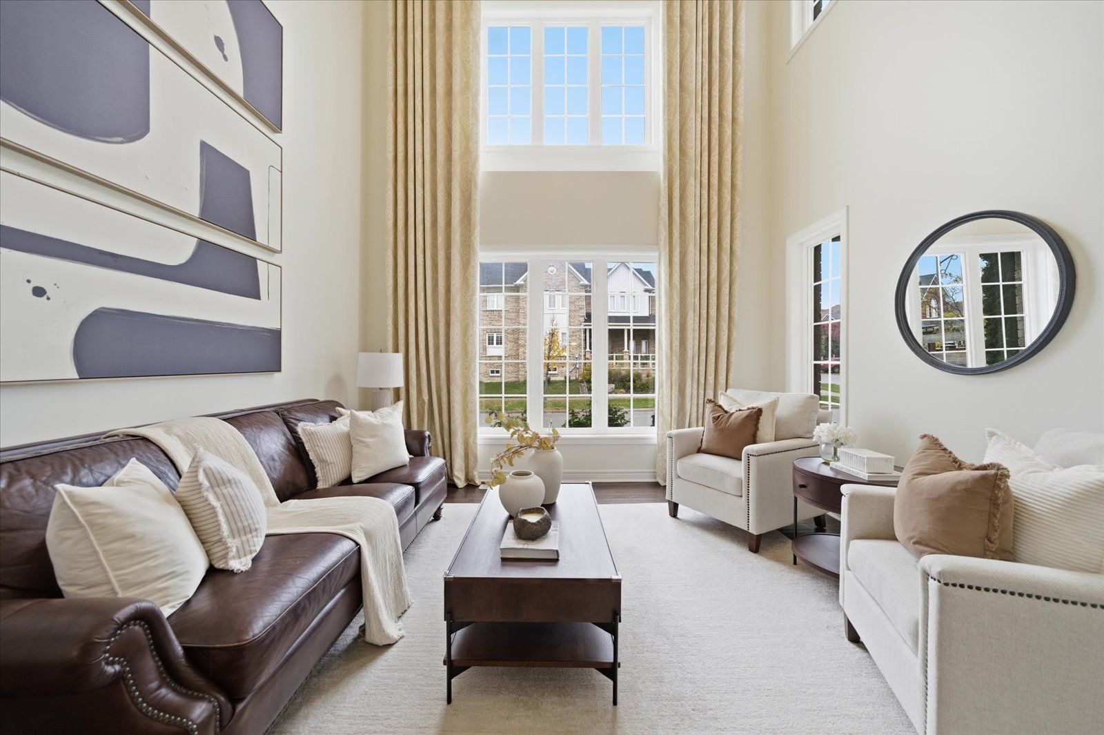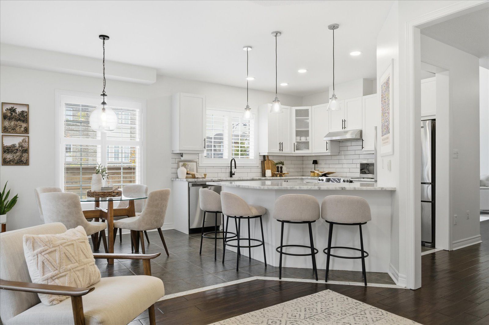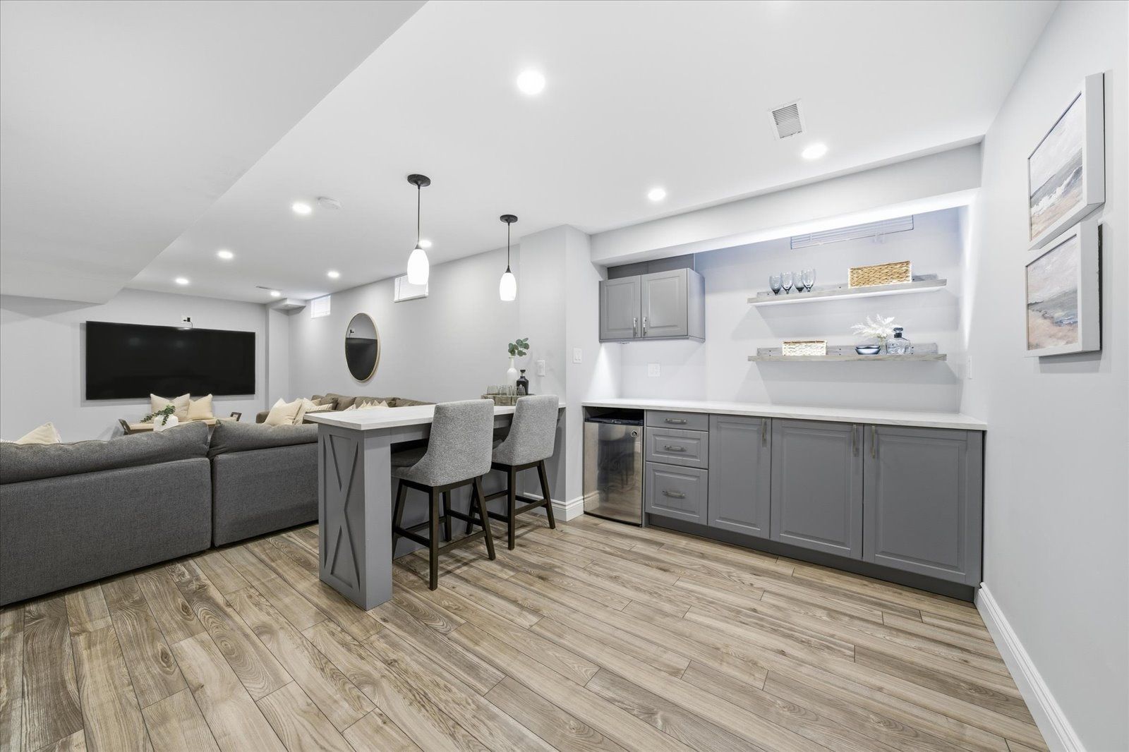 Welcome to 1954 riverton street, a beautiful corner lot home built by greycrest homes and ideally situated in one of north oshawa's best pockets. With over 3000 total sq ft, this property stands out with its elegant curb appeal, sun-filled interiors, and modern upgrades throughout. Step inside to discover an open-concept layout featuring soaring 18 ft cathedral ceilings that create a striking first impression. Hardwood floors flow seamlessly throughout the home, while 9 ft ceilings on the main level enhances the airy, spacious feel. The abundance of windows along the north side floods every room with natural light, recently upgraded with california shutters, creating a warm and inviting atmosphere. The main floor offers a perfect balance of function and style - featuring a large formal dining room ideal for family gatherings and special occasions. Complete with a cozy gas fireplace in the living room and open sightlines to the modern kitchen, making it perfect for both family time and entertaining. From the kitchen, step out to your custom-built deck, complete with built-in furniture, a fire table, and ample storage in the large shed - the perfect outdoor retreat for relaxing or hosting gatherings. Upstairs, you'll find four generously sized bedrooms, including a luxurious primary suite with a 5-piece ensuite, featuring a corner soaking tub and separate shower. The professionally finished basement offers even more living space with a modern open-concept recreation room, a sleek dry bar, and a rough-in bath ready for your personal touch. Ideal for a home theatre, games room. Located just 2 minutes away from top-rated schools and parks. Conveniently situated close to shopping, and major highways, this home combines elegance, comfort, and convenience in one perfect package.