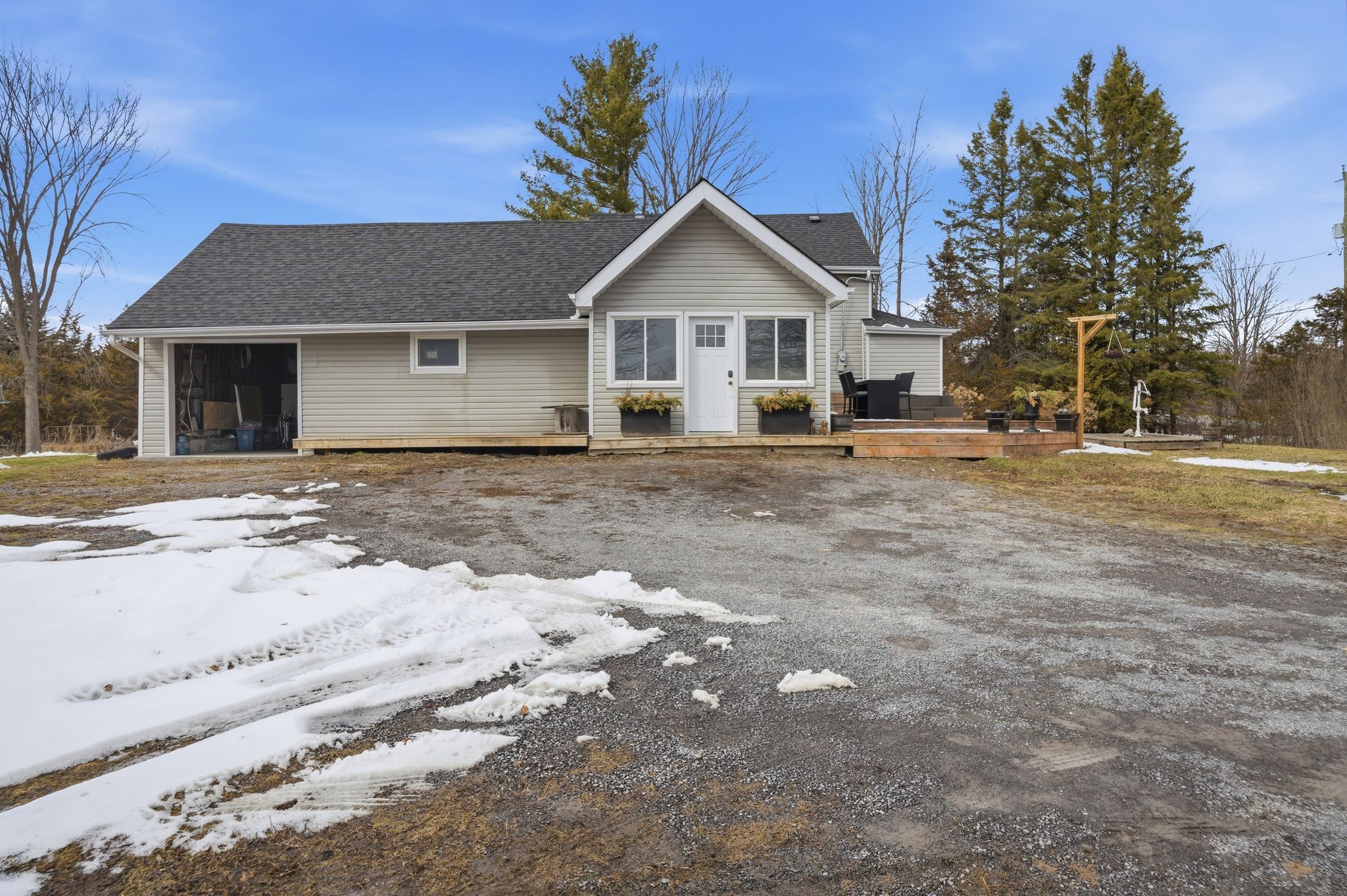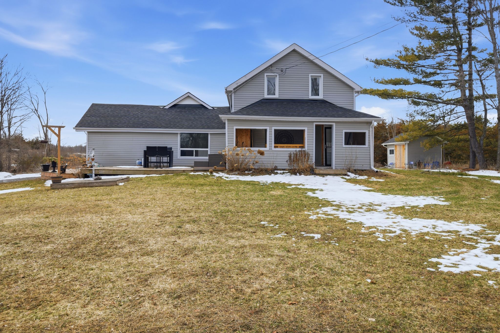 At the crossroads of opportunity & potential lies endless possibilities @ 1957 read road. Nestled in from the paved municipal road on 1. 3 picturesque acres resides this 1. 5 storey home, surrounded by stunning rural views and open space to roam. New front door to the window lined mudroom with two closets & trending octagon patterned linoleum flooring + tongue & groove pine ceiling feature provides a functional entry. Step in to the updated kitchen with clean white cabinetry and complimenting butcher block countertops. This bright space also offers an eat-in option if desired. The hardwood flooring continues into the living area. Main floor bedroom here plus spacious 3 piece bathroom with relaxing freestanding soaking tub. Up the stairs is home to the primary suite with generously sized bedroom area, bonus en-suite with glass and tile step in shower, updated vanity, porcelain flooring & great wall storage. The perks continue into the massive walk-in closet with window & custom shelving. This provides an ideal nursery option as well, if needed. Many exterior offerings include the enclosed front porch. Watch the sunrise on the newer east facing deck or the sun set beyond the backyard fire pit area. The attached single garage & connecting 260 sq ft area to home is currently mid renovation & welcomes you to finish to suit your need, taste & vision. The majority of vinyl siding is complete & remainder is included in this sale to assist with your exterior finishing touches. Located within minutes to st. Mary's elementary school & 10 minutes to shannonville road with direct access to highway 401, while tucked away in your own peaceful slice of beautiful tyendinaga township. Join us for an open house, saturday march 28th, 1:30-2:30pm.