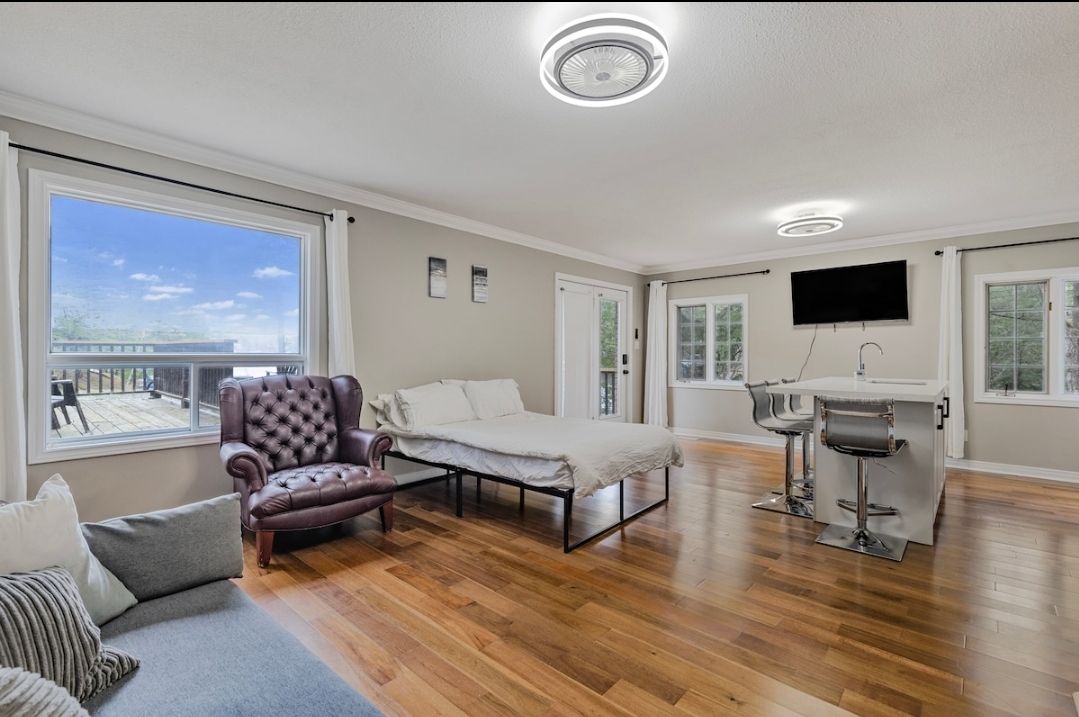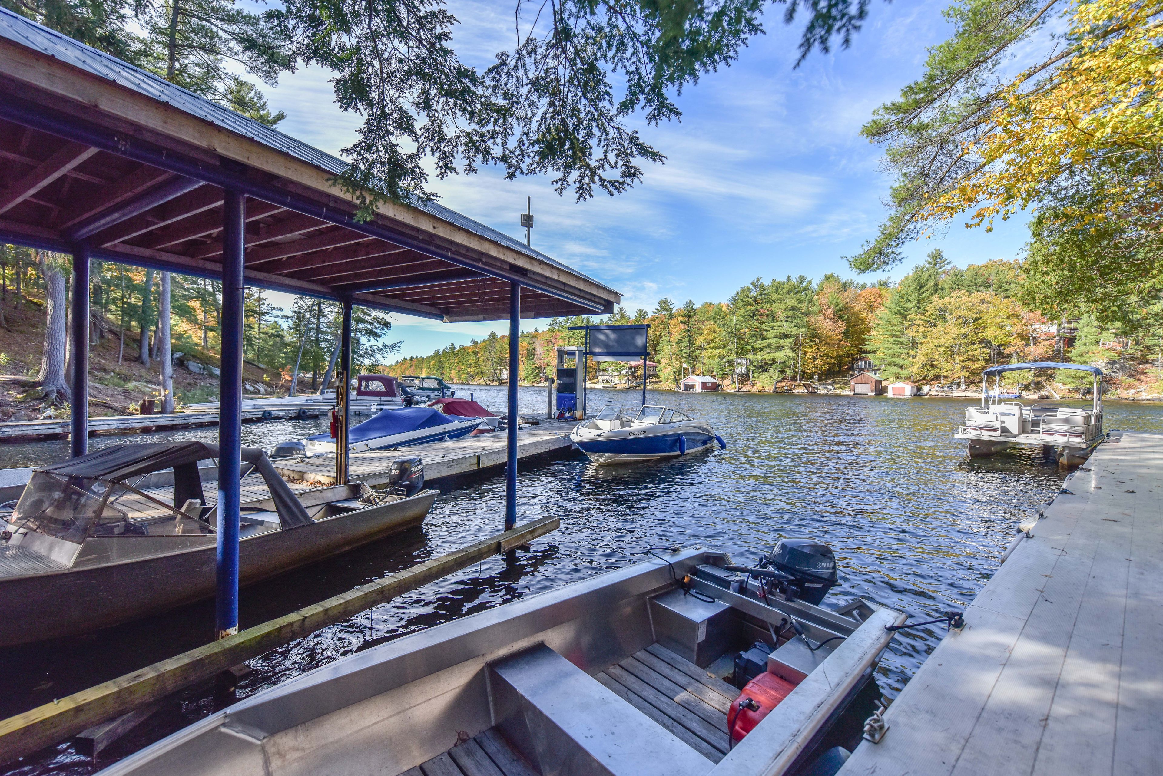 One of ontario's prettiest marina and resort facilities. First marina to the muskokas from the trent-severn waterway. This exceptional turnkey opportunity is located approximately 90 minutes north of toronto. The marina features two waterfront cottages (plus an in-law suite) and two cabins, all renovated with high-end finishes and configured into five waterfront rental suites. The property boats close to 1,000 feet of shoreline, a swim dock, and beautiful natural surroundings with scenic water views. C-8 zoning allows for a wide range of permitted uses, including hotel accommodations, urban residential development, restaurant operations, and more-providing excellent felexibility and future development potenial. Amenities include rv sites, fuel service, and 87 open slips. Two storage and repair buildings (approximately 40 x 60 ft) are primiarily used for maintenance and winter boat storage, accommodating about 25 boats indoors and 25 outdoors. Steel and aluminium docks are equipped with newly installed security cameras and wi-fi throughout the park and dock areas. Additional inffrastructure includes a newer above-ground fuel tank and a concrete boat launch. Set on over 6 acres of pristine wilderness, the property also features a sauna and a four-season outdoor washroom facility with two showers, four stalls, and four vanities. The cabins and cottages have been updated with newer furnishings, appliances, and decor. The facility offers barge service, rental boats and water taxi operations.