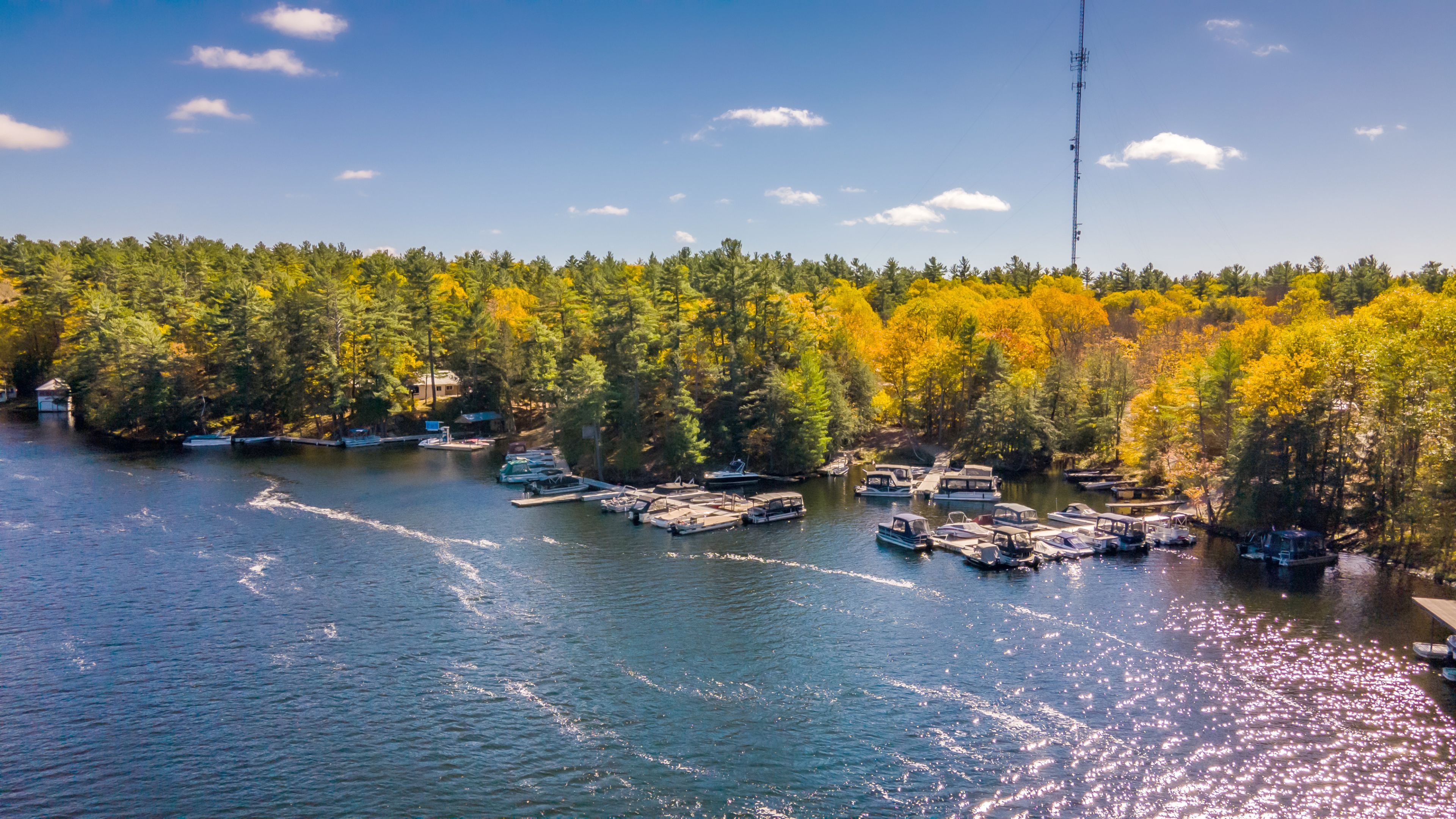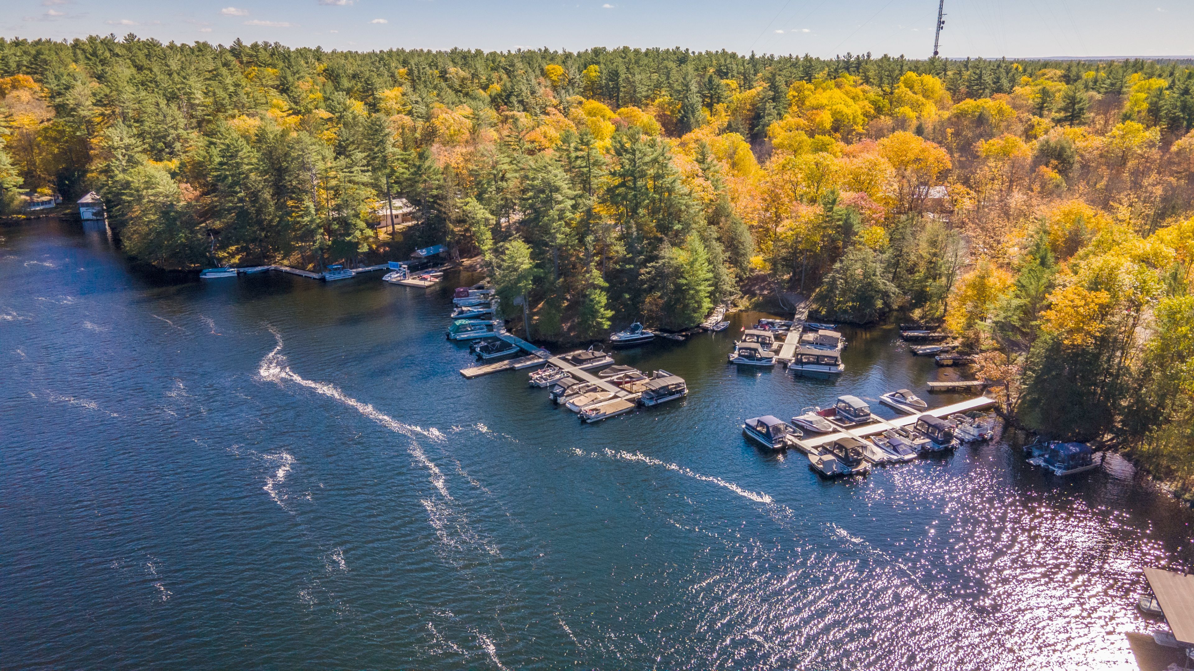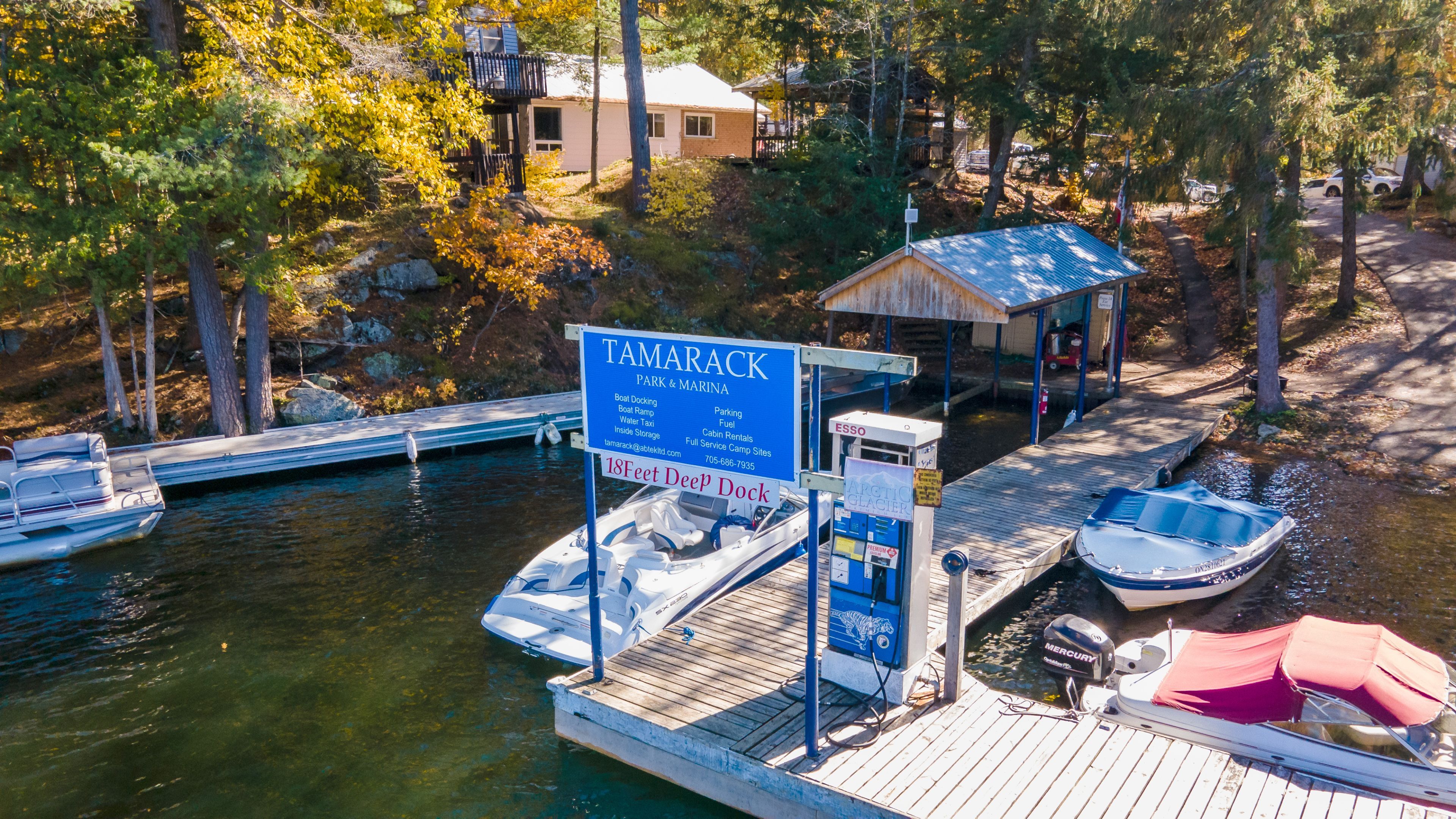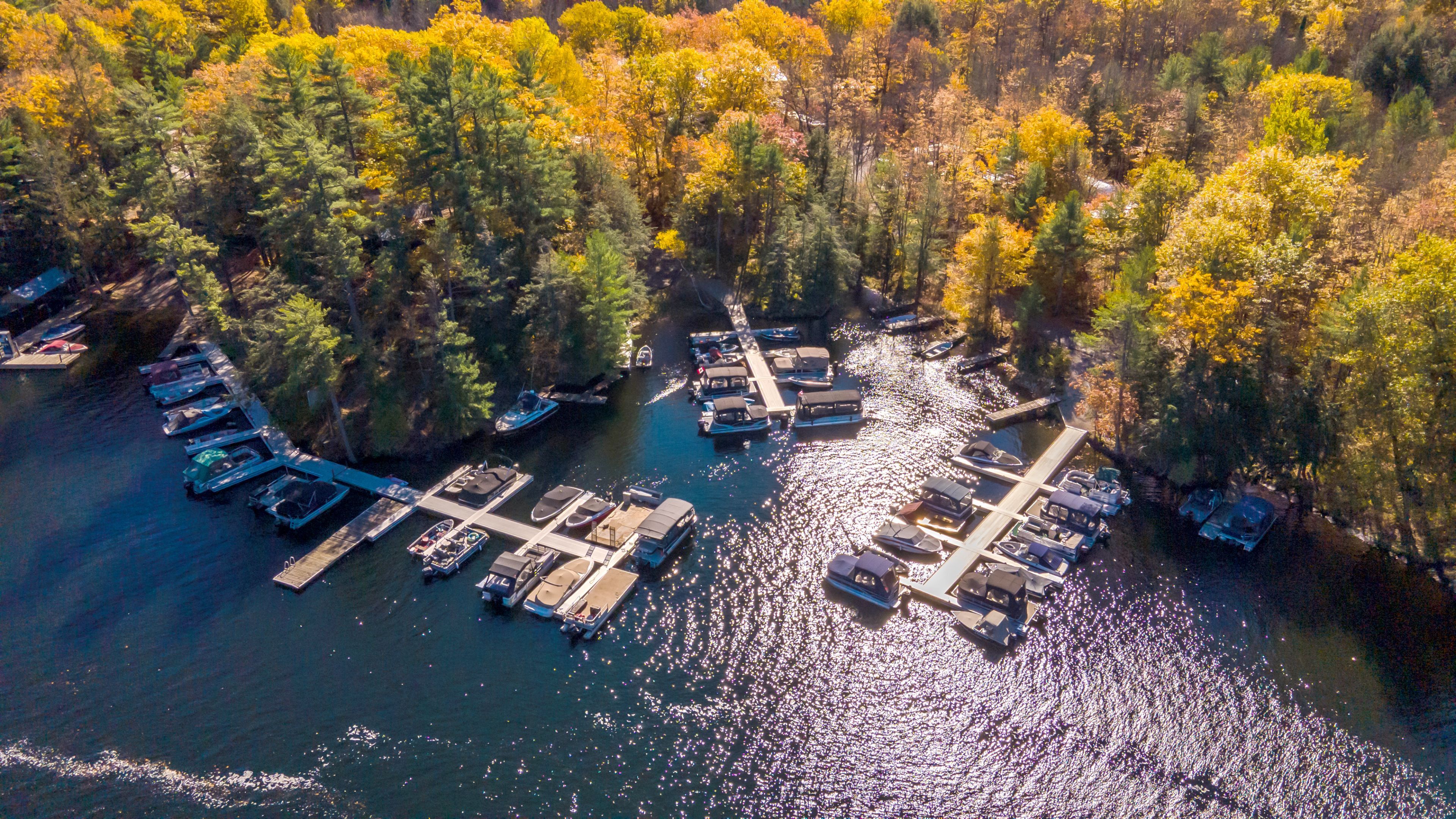 • Amenities include RV sites, fuel service, and numerous boat slips for convenience.