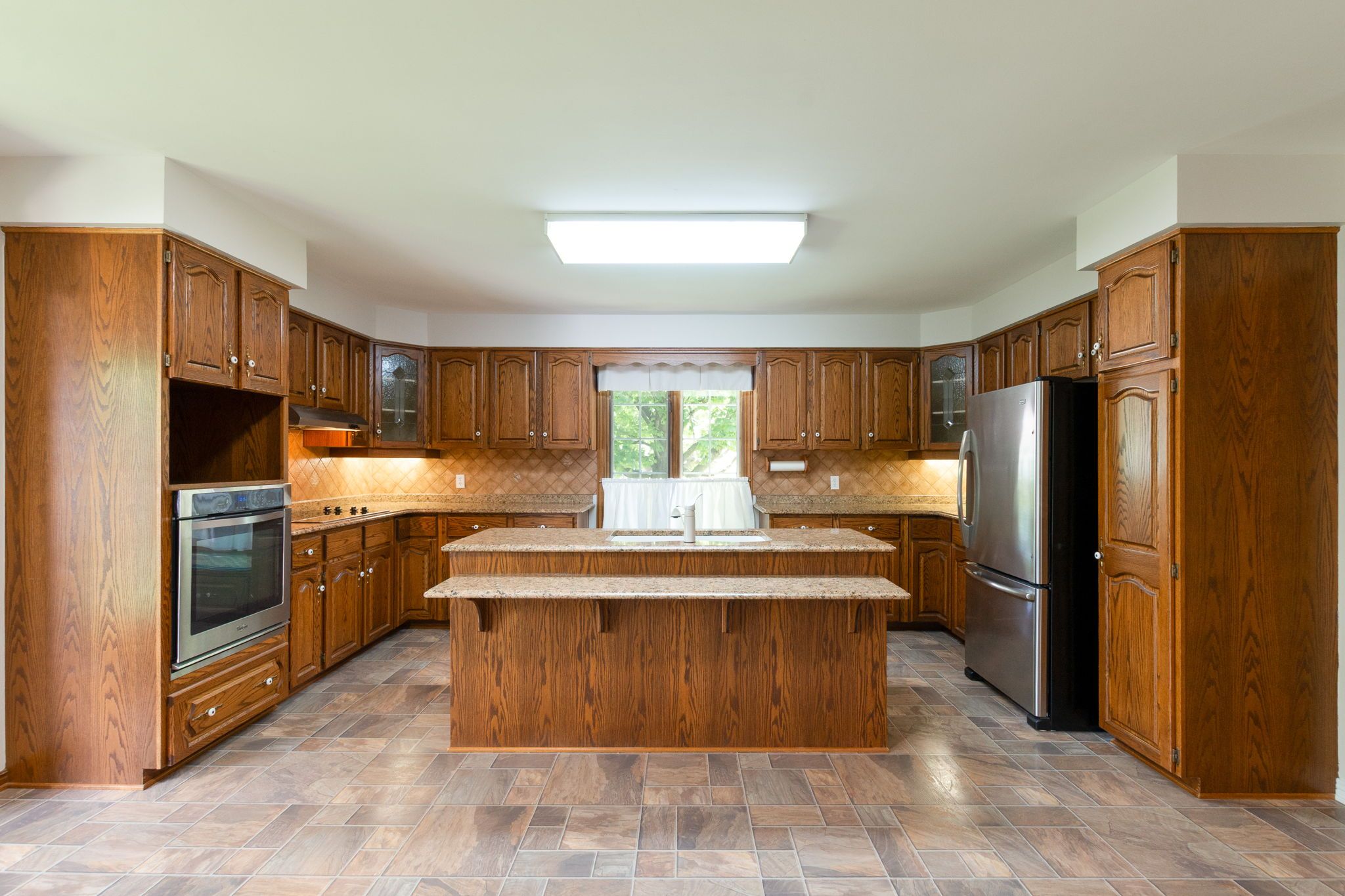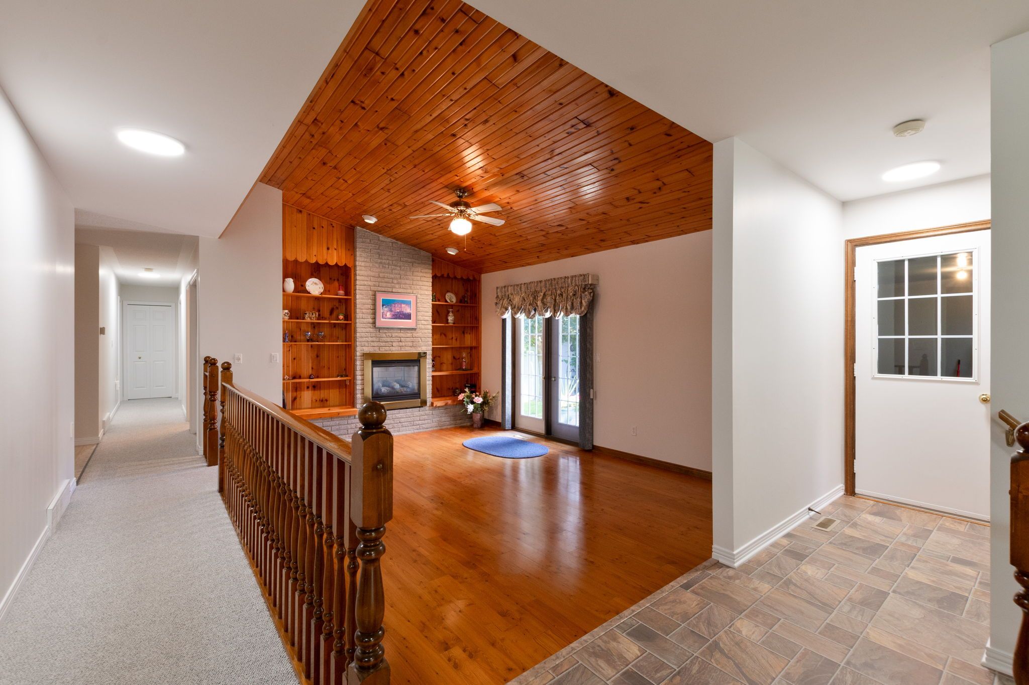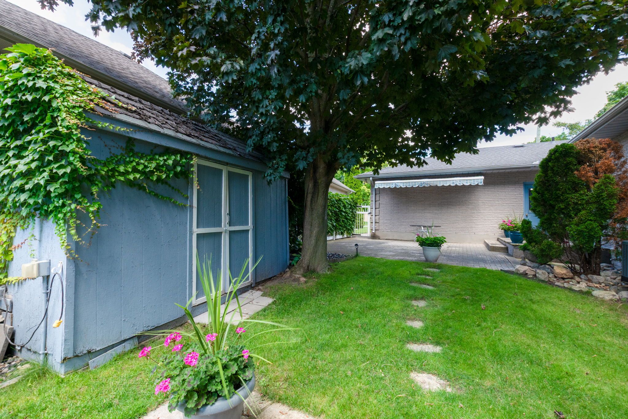 Welcome to 196 hull road, strathroy. Charming brick ranch on corner lot with room to grow! A spacious and beautifully maintained solid brick ranch located on a premium corner lot in a desirable strathroy neighbourhood. Offering 1,922 sq. Ft. Of main floor living and a fully finished lower level, this home blends classic charm with comfortable modern touches. Built in 1989 and sitting on a generous lot, this property provides ample room for families, entertainersor anyone looking for a roomy one-floor lifestyle. The main level features a large kitchen w granite countertops, solid oak cabinetry, and durable laminate flooring. A formal dining room with french doors opens into a bright and inviting family room boasting engineered hardwood, a cozy gas fireplace, and cathedral ceilings ideal for relaxing or entertaining. The main bath was beautifully remodelled in 2021 and includes a double-sink vanity & a tub/shower combo. The spacious primary bedroom features double closets and carpeting, while the second bedroom offers ample space and comfort. A third room on the main floor, currently used as a living room, could easily function as a third bedroom. A convenient 2-piece bath, laundry room, and back closet complete the main level. The expansive lower level offers a large family/rec room with a bar area, perfect for a pool table or shuffleboard. Two additional bedrooms with large windows and laminate flooring, a 3-piece bathroom, and generous storage space round out the basement level. Outside, enjoy your fenced backyard oasis featuring a 20 x 20 patio, water fountain, cedar trees, awning, and a storage shed. A full sprinkler system and sandpoint add convenience to outdoor maintenance. Additional features include: 2-car garage with epoxy floor, 4-car interlocking brick driveway, central vac, alarm system and 100-amp breaker panel. This meticulously cared-for home is move-in ready with incredible potential. Don't miss your chance to own this rare gem in a prime location.
