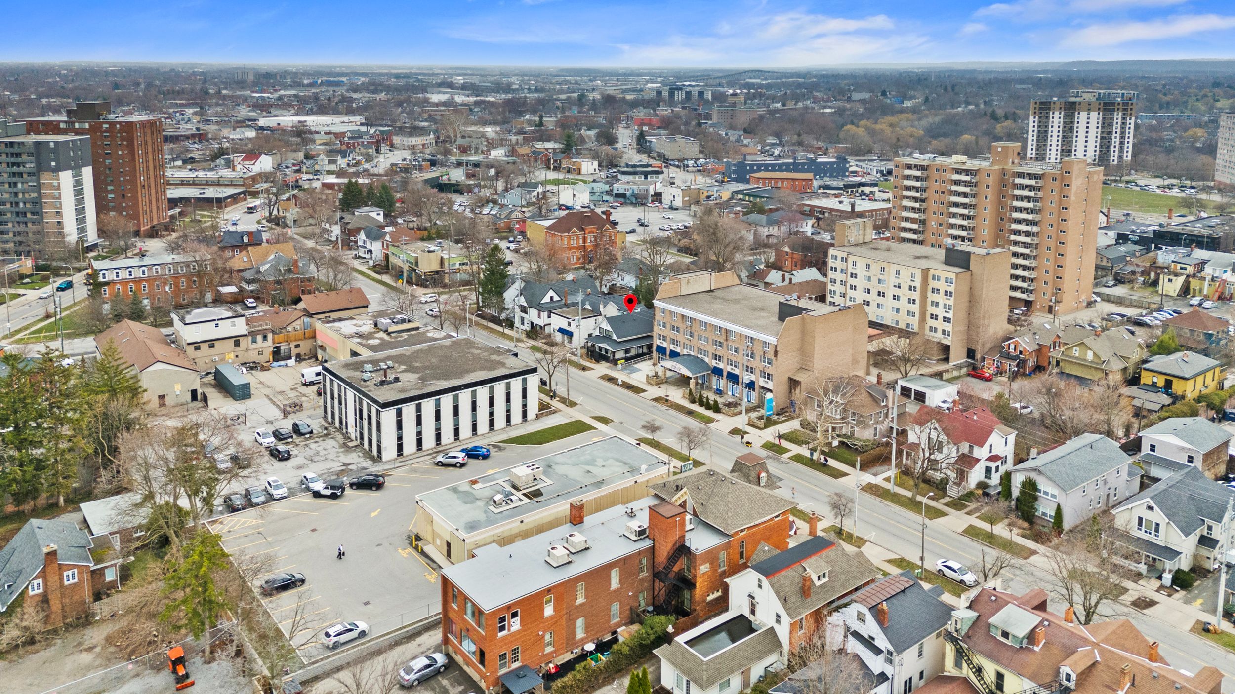 Prime opportunity to acquire a downtown property offering a modern, turn-key mixed-use building with exceptional street exposure, rare private on-site parking, and outstanding long-term development potential. Ideally suited for investors or owner-operators, this versatile asset combines strong commercial and residential components with flexible m2 zoning, supporting a wide range of uses including commercial, residential, or mixed-use development. The property features a welcoming wrap-around porch that enhances curb appeal, while the interior offers a functional, adaptable layout suitable for a variety of professional uses. Multiple exterior entrances provide excellent flexibility for single or multi-tenant configurations, offering exceptional accessibility and future adaptability. Offering approximately 2,235 sq. Ft. Of finished above-grade space plus an additional 800 sq. Ft. In the basement, this property presents an excellent opportunity to customize to your needs. The main floor features a spacious open-concept co-working office, two private offices, a boardroom-style office, and an inviting front foyer complete with a coffee station and a convenient 2-piece washroom. The upper level includes an oversized executive office, three additional private offices, and a well-appointed 3-piece bathroom. Positioned on a high-traffic downtown corridor surrounded by established businesses, restaurants, cafes, and local amenities, the property benefits from consistent exposure and strong foot traffic. Just steps from the meridian centre, firstontario performing arts centre, transit hub, go station, and with quick access to highway 406 and the qew, the location offers unmatched connectivity across the region. Whether expanding an investment portfolio or securing a strategic location for a growing business, this property delivers exceptional visibility, versatility, and future development potential in one of the city's most desirable downtown settings.
